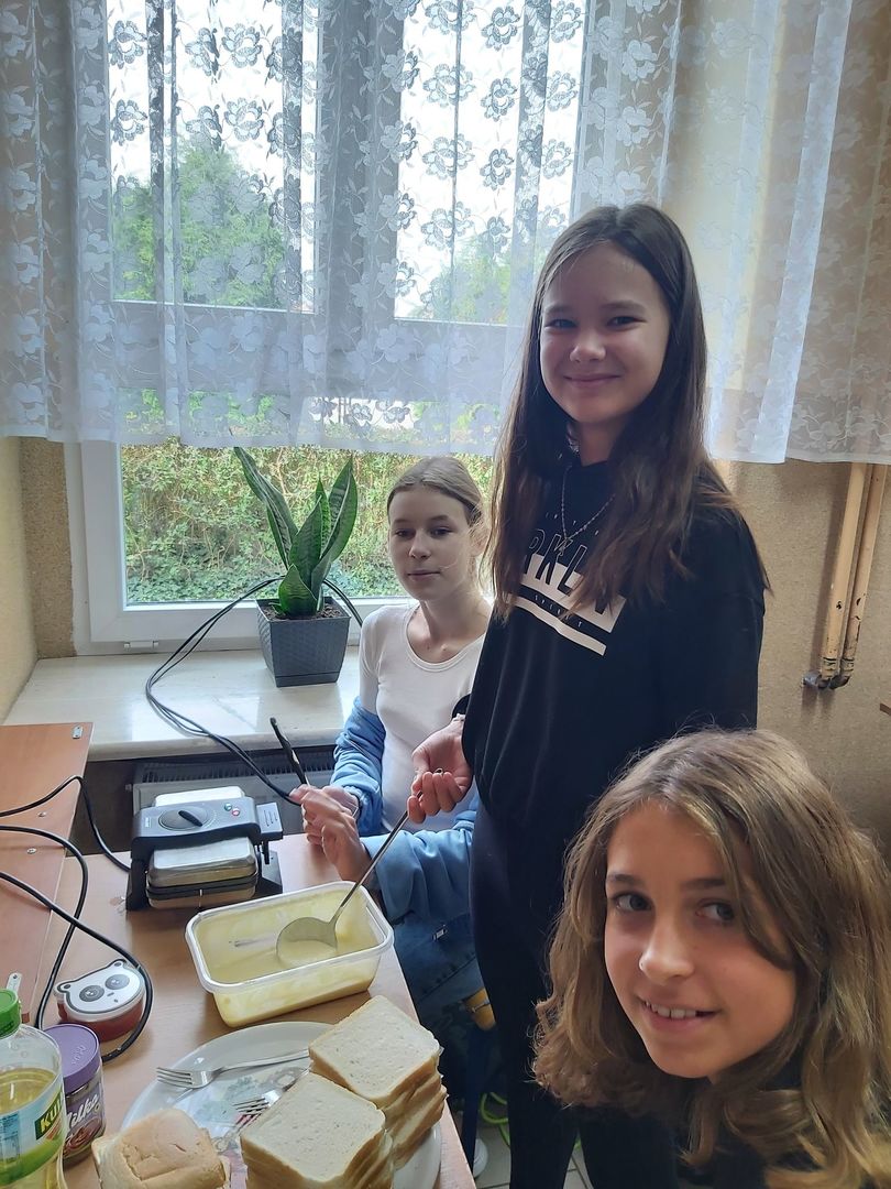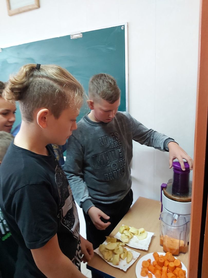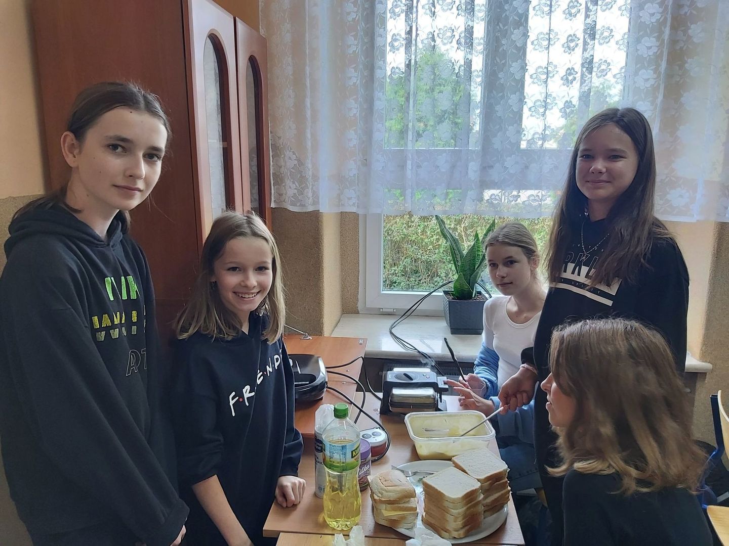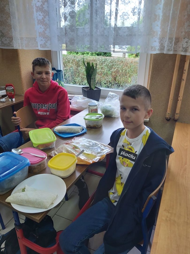 W ramach zajęć rozwijających zainteresowania uczniowie klasy VI pokazali swoje zdolności kulinarne. Celem zajęć było rozwijanie umiejętności kulinarnych, kształtowanie umiejętności przygotowania posiłków z zachowaniem zasad higieny, umiejętność pracy w grupie, kształtowanie umiejętności posługiwania się różnego rodzaju sprzętu kuchennego z zachowaniem zasad bezpieczeństwa oraz umiejętność gospodarowania czasem. Dzieci przygotowały pyszne gofry, tortille, tosty, sałatki owocowe, szaszłyki owocowe oraz świeżo wyciskane soki. Na zakończenie zajęć odbyła się wspólna degustacja oraz rozmowy przy wspólnym stole.