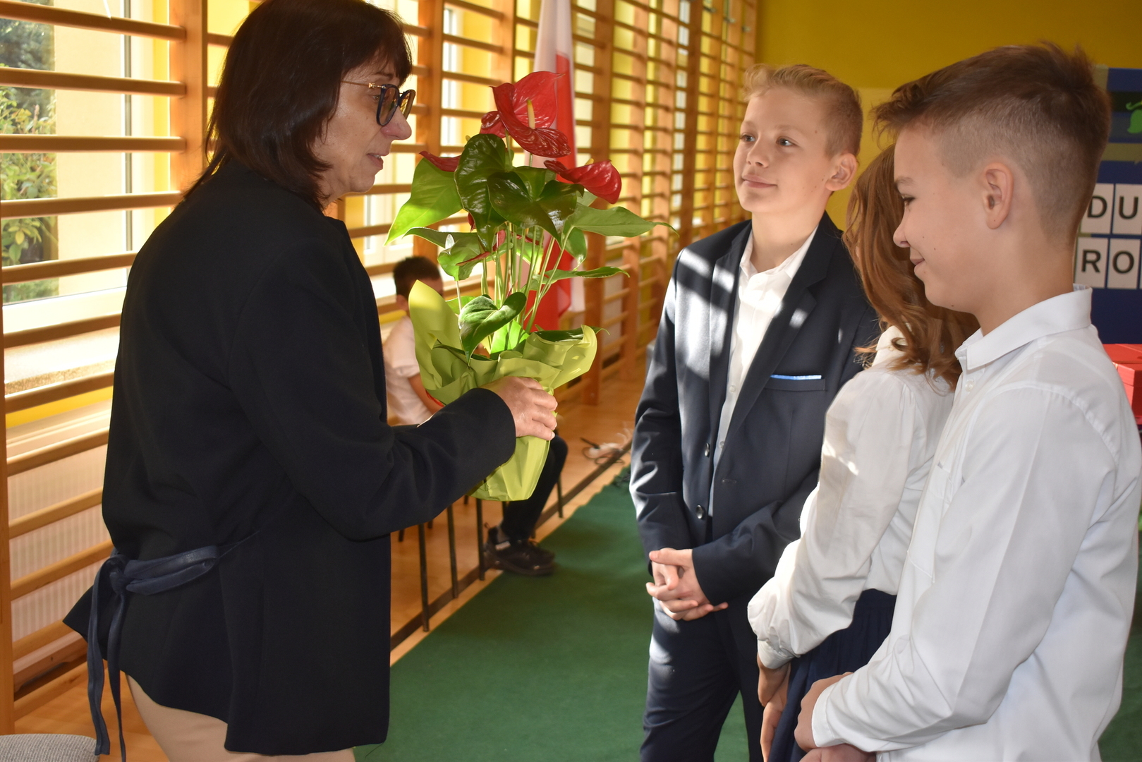 Pani Dyrektor Alina Rączka przekazała serdeczne podziękowania nauczycielom, a także pracownikom szkoły w imieniu własnym, a także Burmistrza MiGM Koźmin Wlkp. Życzenia napłynęły również z Kuratorium Oświaty oraz z Ministerstwa Edukacji i Nauki.