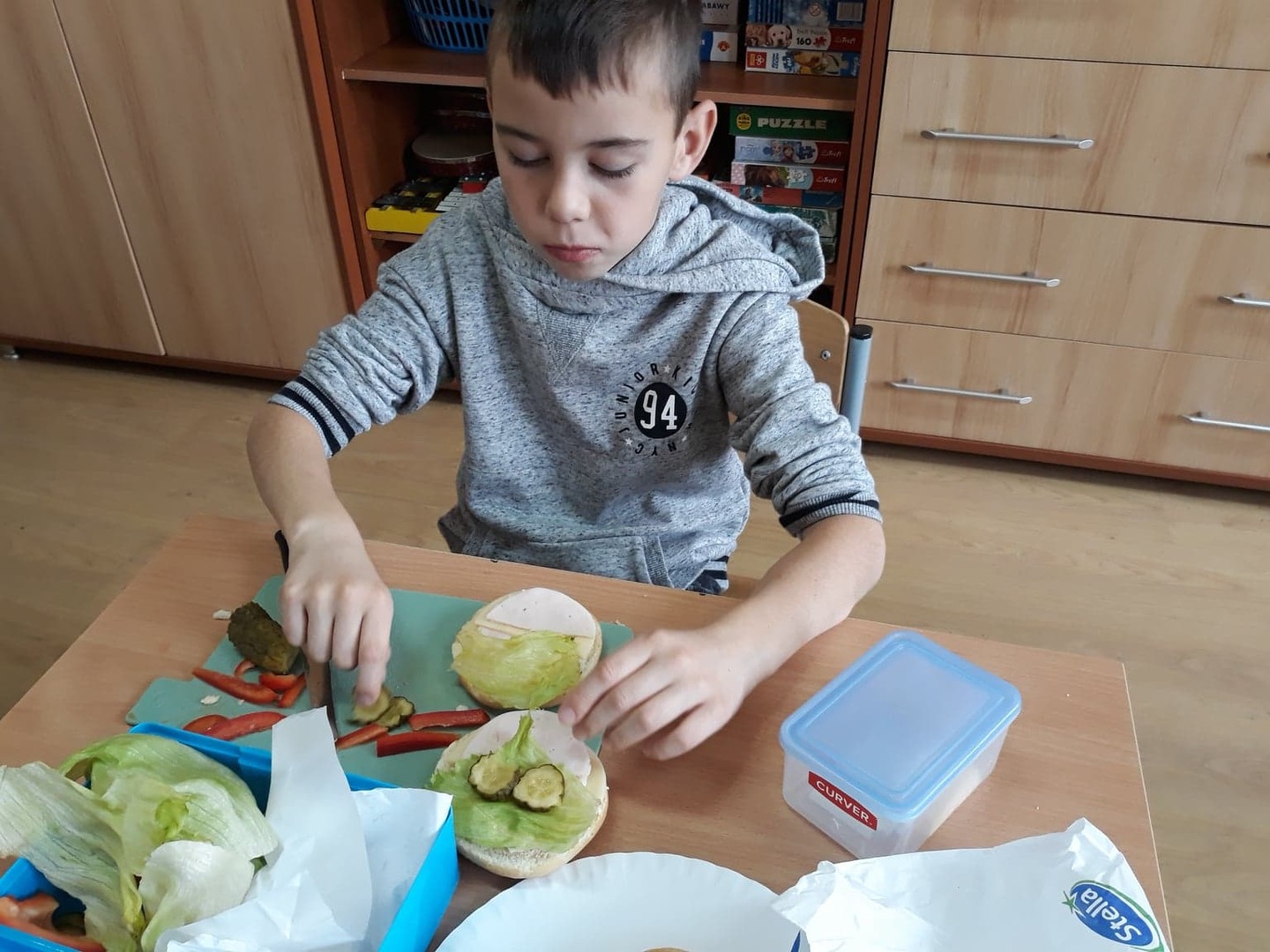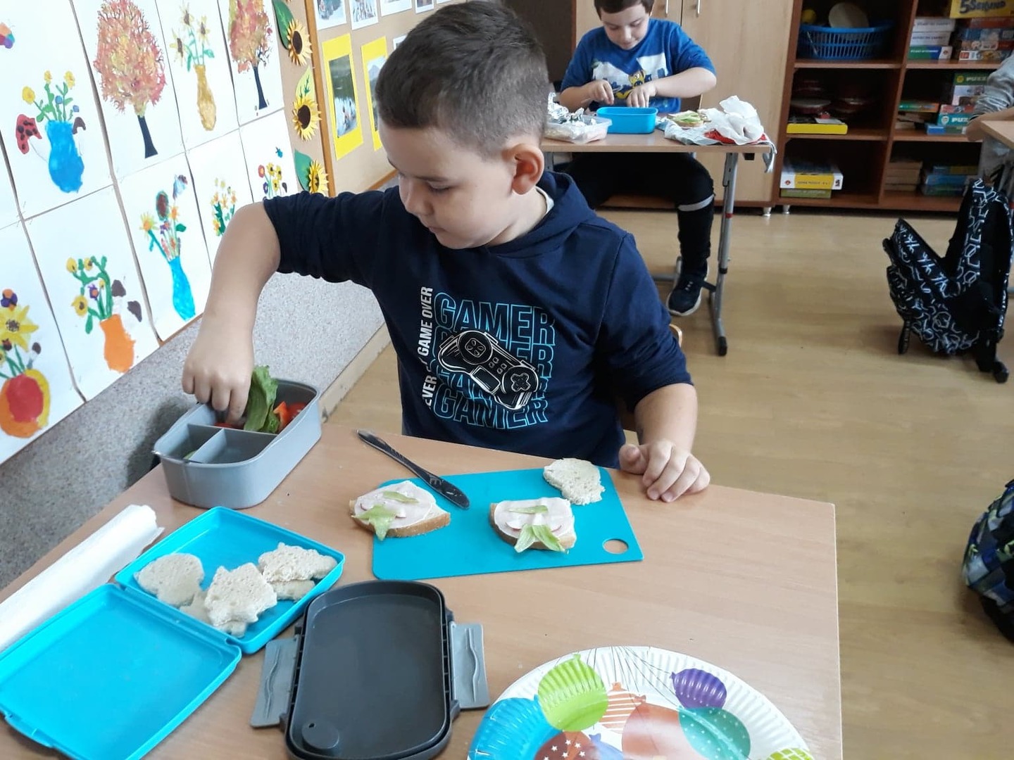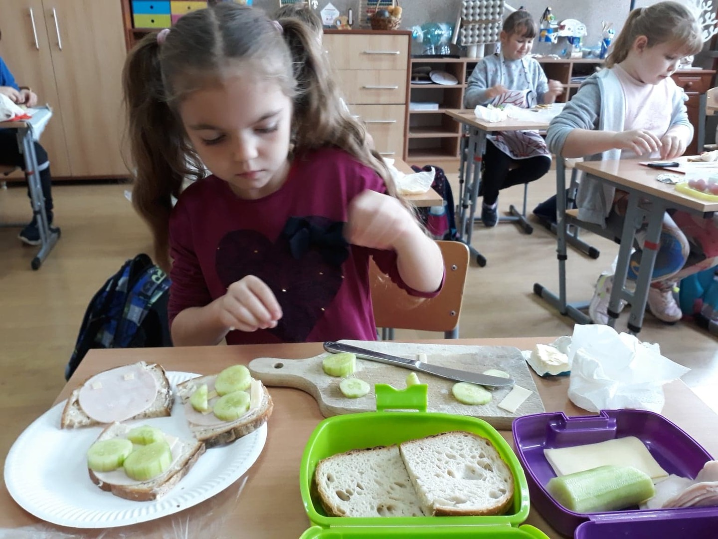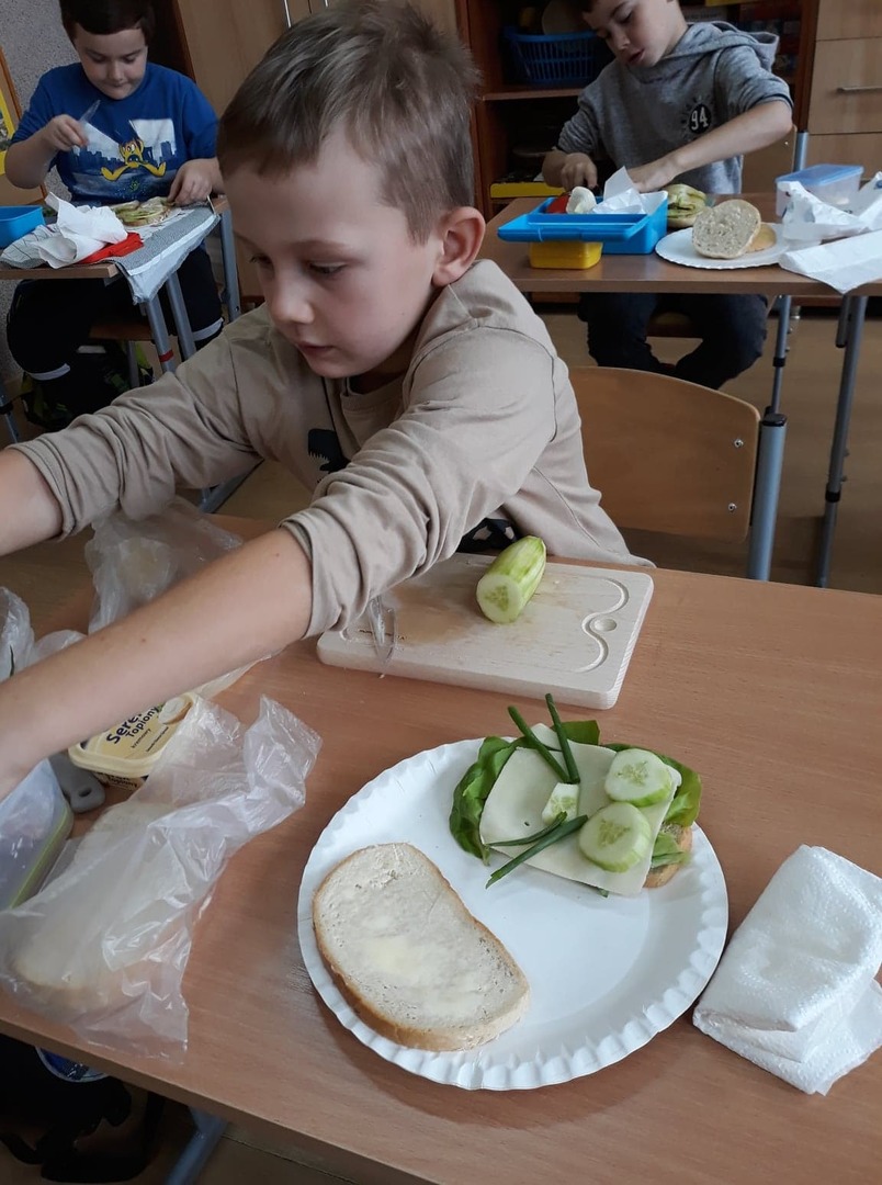 Dnia 4 października podczas zajęć rozwijających klasa II przygotowywała pyszne kanapki na śniadanie. Z przyniesionych produktów, wśród których dominowały warzywa, uczniowie tworzyli prawdziwe dzieła sztuki. Własnoręcznie przygotowane kanapki zostały szybko i w całości zjedzone podczas przerwy śniadaniowej. Nie zabrakło komentarzy, że było to najsmaczniejsze śniadanie w życiu. Nic tak nie cieszy i nie dowartościowuje, jak własna praca! Obejrzyjcie fotorelację z pracy i degustacji.
