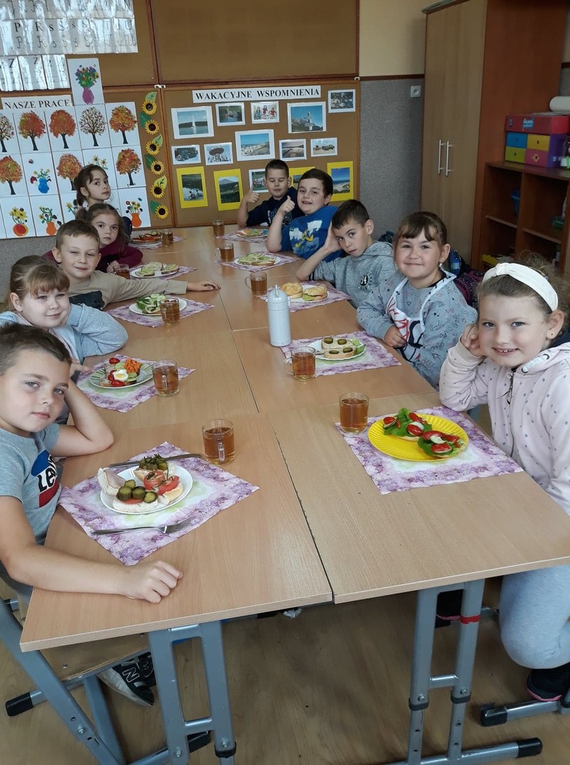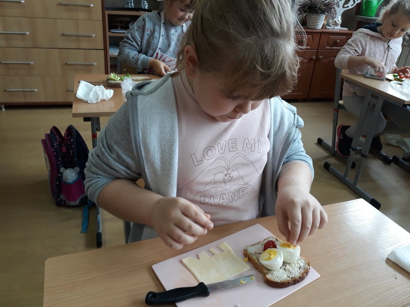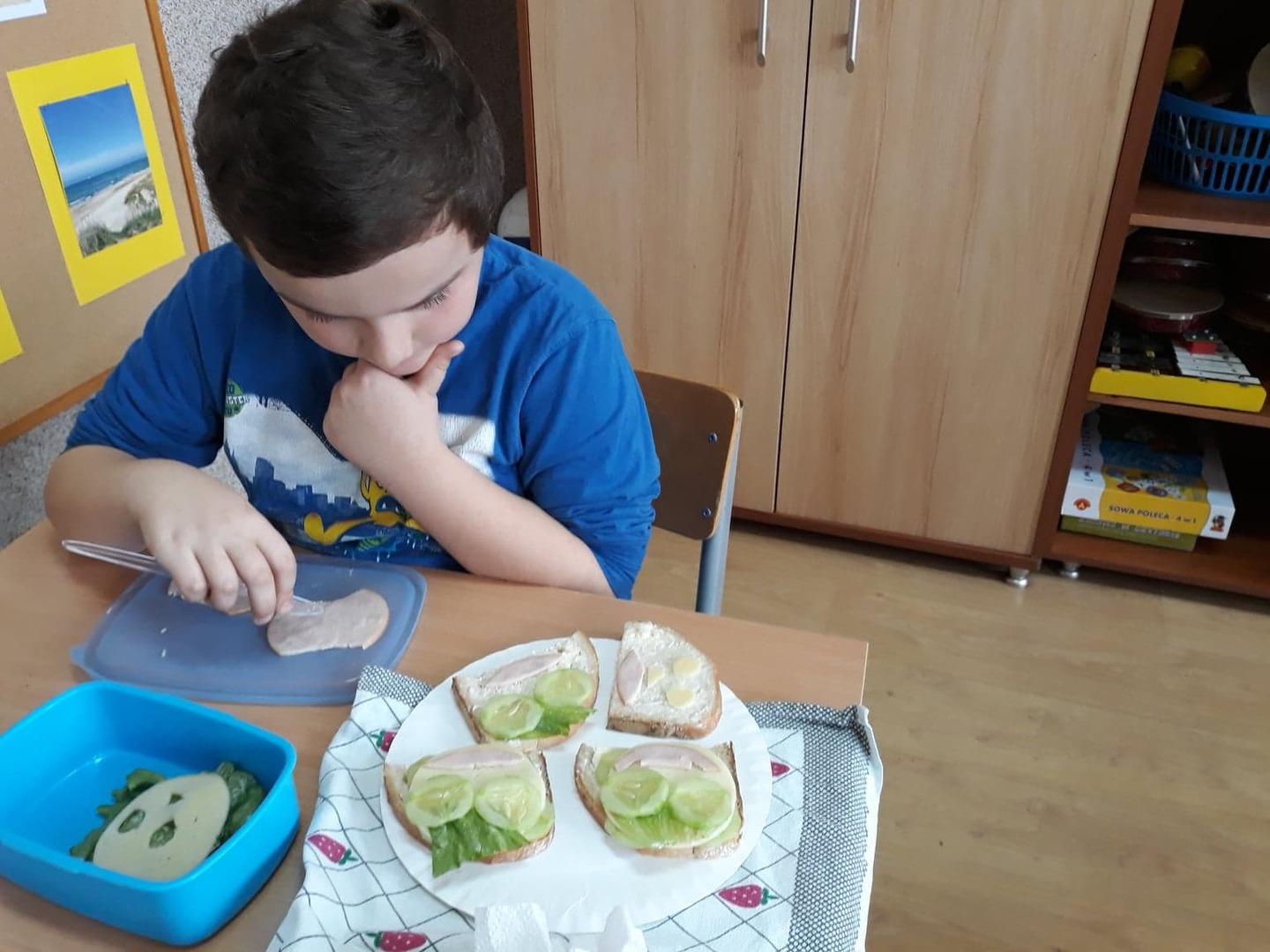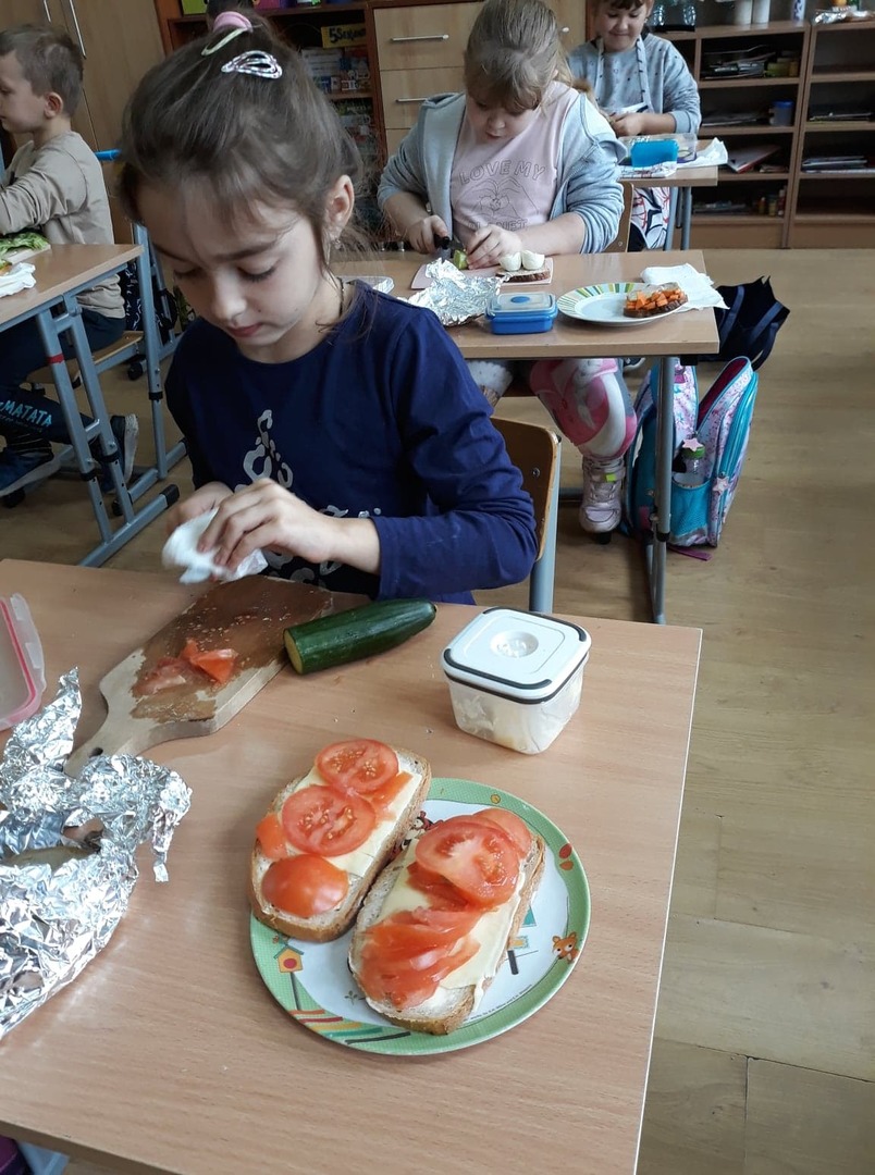 Dnia 4 października podczas zajęć rozwijających klasa II przygotowywała pyszne kanapki na śniadanie. Z przyniesionych produktów, wśród których dominowały warzywa, uczniowie tworzyli prawdziwe dzieła sztuki. Własnoręcznie przygotowane kanapki zostały szybko i w całości zjedzone podczas przerwy śniadaniowej. Nie zabrakło komentarzy, że było to najsmaczniejsze śniadanie w życiu. Nic tak nie cieszy i nie dowartościowuje, jak własna praca! Obejrzyjcie fotorelację z pracy i degustacji.