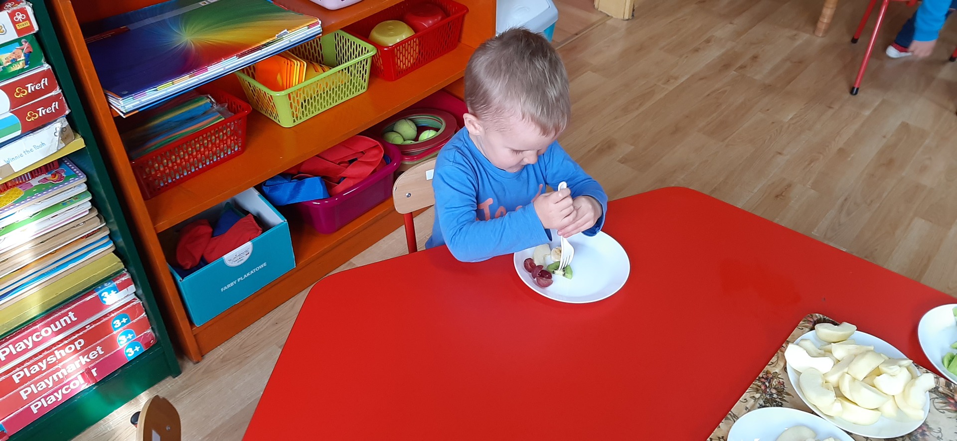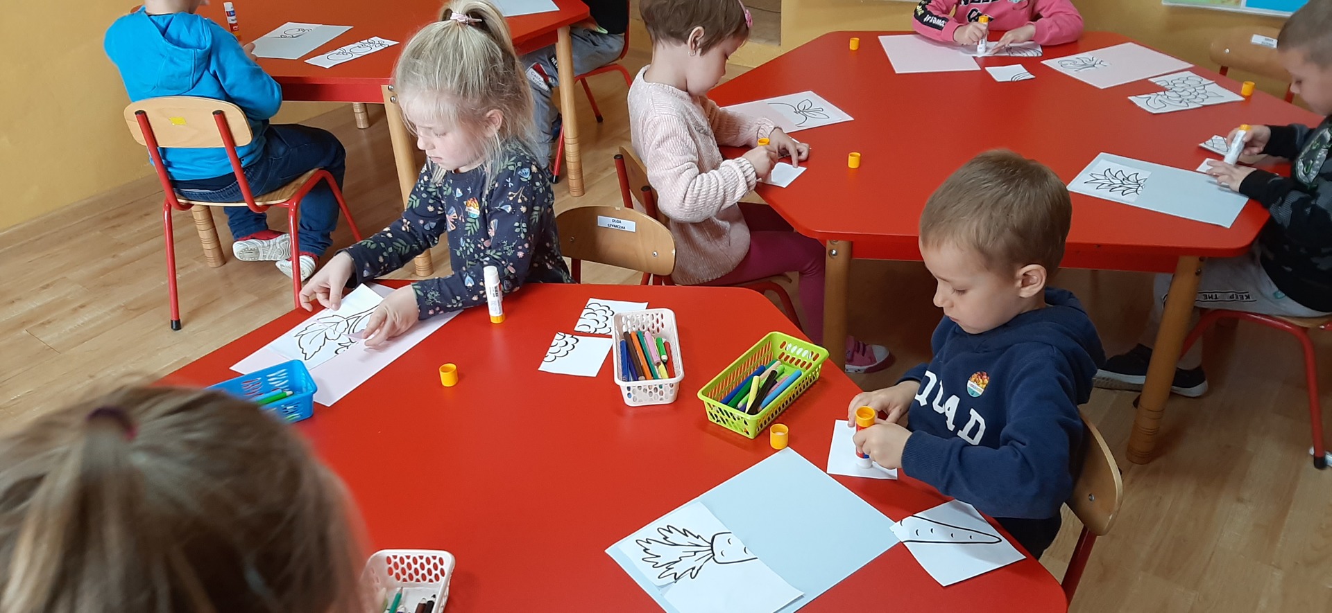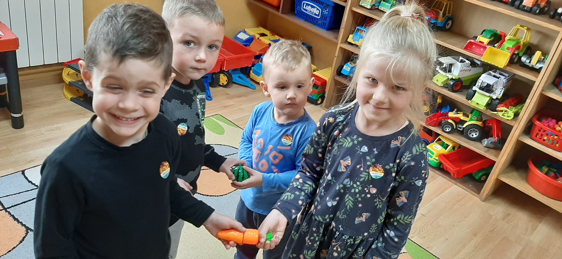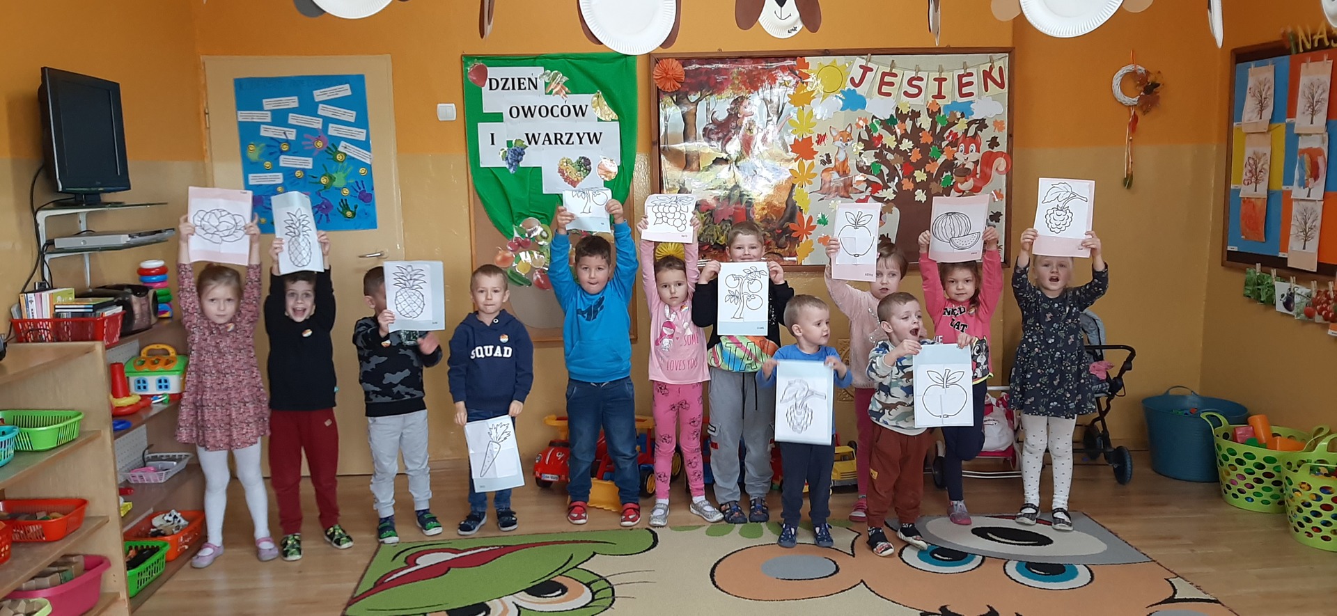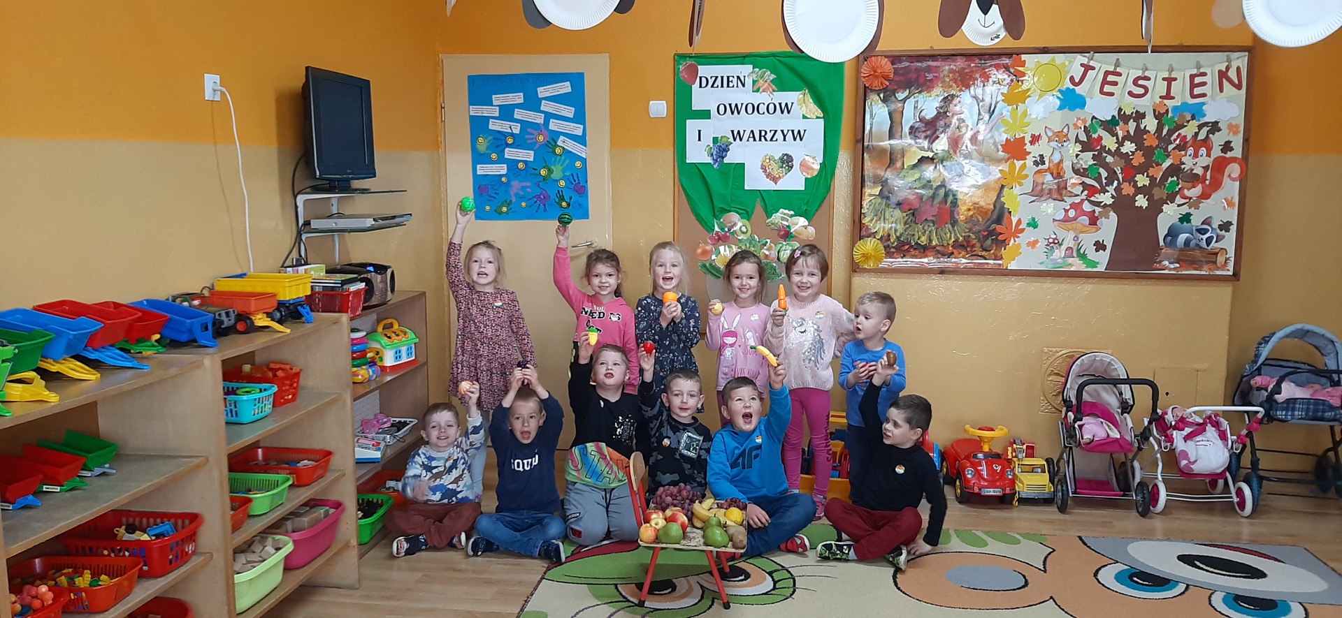 Promocja zdrowia oraz kształtowanie nawyków prozdrowotnych to jedno z ważniejszych zadań przedszkola. Dlatego też w dniu 21 października zorganizowany został w naszym przedszkolu „DZIEŃ OWOCÓW I WARZYW”. Dzieci dowiedziały się jak ważne jest spożywanie owoców i warzyw w codziennej diecie. Przedszkolaki rozpoznawały dotykiem, i zapachem owoce i warzywa. Odbyła się również degustacja witaminowych pyszności. Były zabawy edukacyjne oraz muzyczno- ruchowe przy piosenkach o tematyce owoców i warzyw. Dzieci wykonały również prace plastyczne. Było pysznie, zdrowo, kolorowo