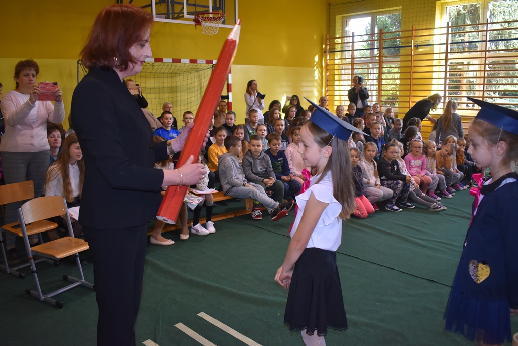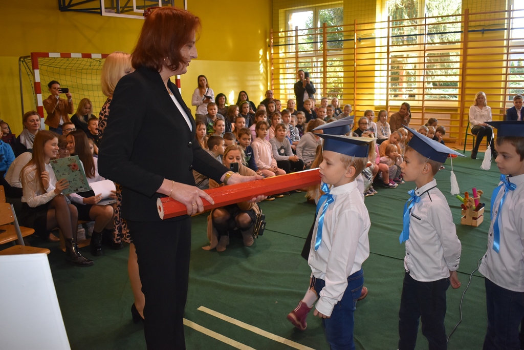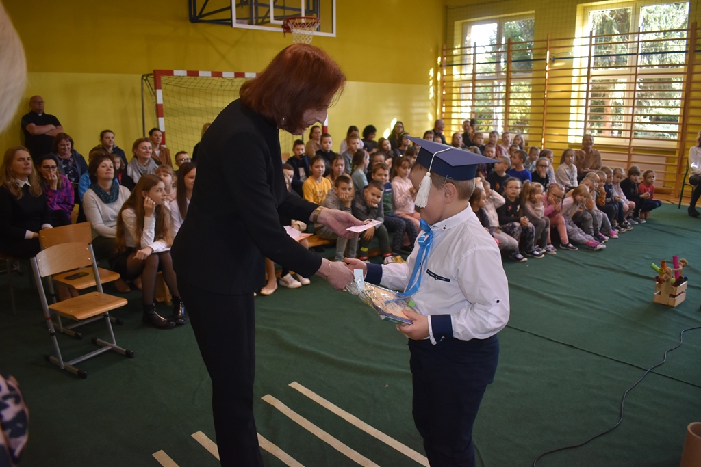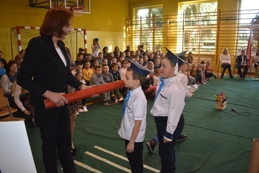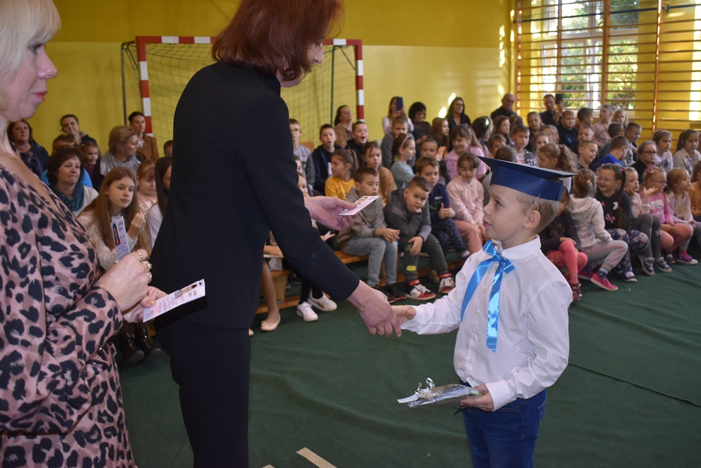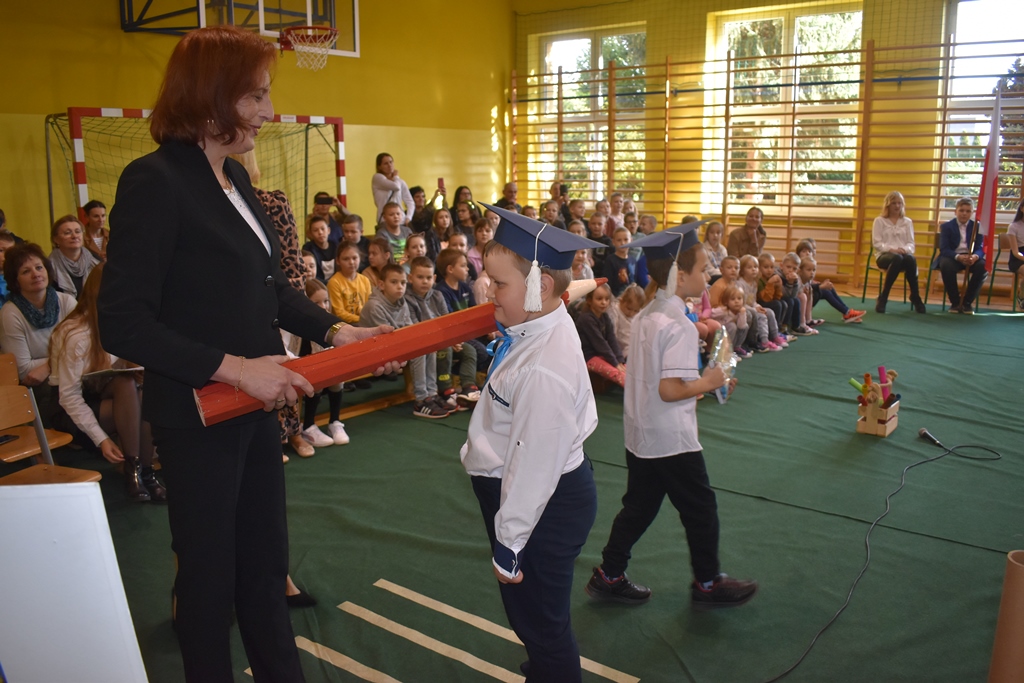 Bardzo ważnym momentem w życiu każdego młodego człowieka jest ślubowanie i pasowanie na ucznia. Mimo, że pierwszakami są już od 1 września to uroczyste i oficjalne włączenie do społeczności uczniowskiej Szkoły Podstawowej w Mokronosie nastąpiło w dniu 3 listopada br. W tym roku szkolnym ślubowanie składało 15 uczniów - 8 dziewczynek i 7 chłopców. Zanim pierwszaki zostały przyjęte do grona uczniów przygotowały wspólnie z wychowawczynią panią Beatą Klause część artystyczną uroczystości : wiersze, piosenki i tańce. Kolejno zdobywali punkty - kolorowe kredki od starszych koleżanek na znak, że są już gotowi by zostać uczniami. Występ dzieci spotkał się z bardzo ciepłym przyjęciem. Artyści po każdym występie byli nagradzani gromkimi brawami. Następnie pierwszoklasistów czekało uroczyste ślubowanie i tradycyjnie pasowanie na ucznia symboliczną kredką, którego dokonała Pani Dyrektor Alina Rączka w obecności rodziców, nauczycieli oraz koleżanek i kolegów. Uroczystość dostarczyła dzieciom, ich rodzicom i gościom wielu miłych przeżyć i wrażeń. Po części oficjalnej dzieci zostały zaproszone na słodki poczęstunek przygotowany przez rodziców.