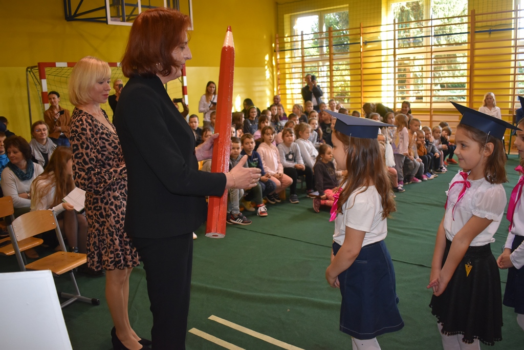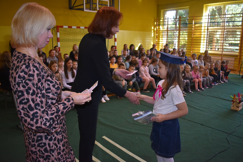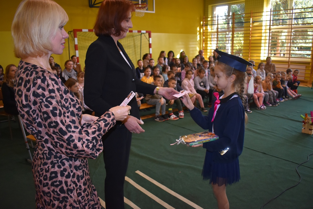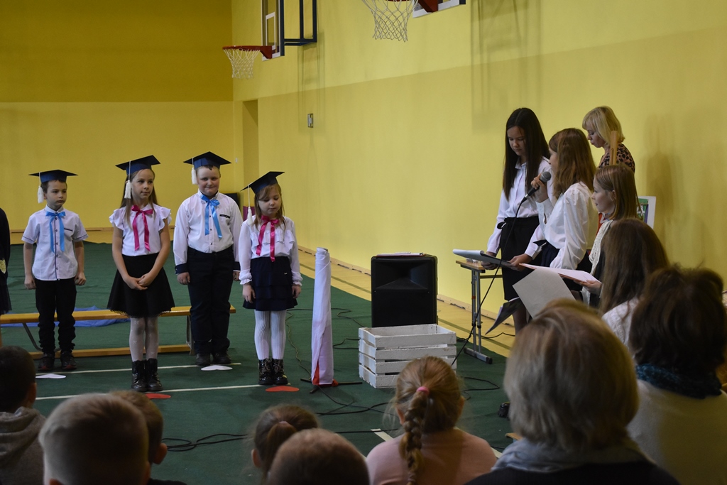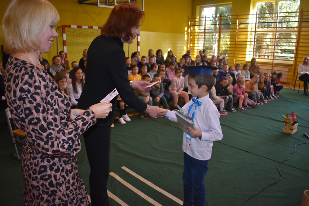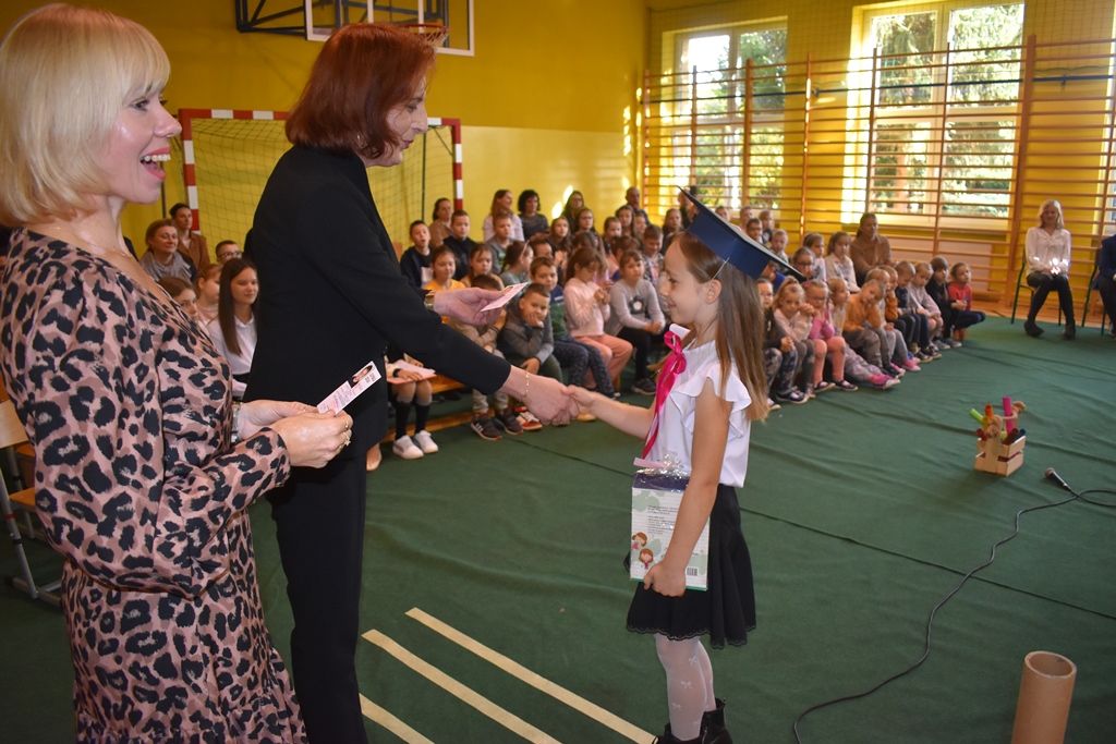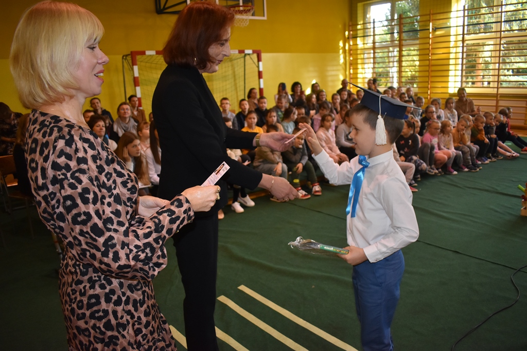Bardzo ważnym momentem w życiu każdego młodego człowieka jest ślubowanie i pasowanie na ucznia. Mimo, że pierwszakami są już od 1 września to uroczyste i oficjalne włączenie do społeczności uczniowskiej Szkoły Podstawowej w Mokronosie nastąpiło w dniu 3 listopada br. W tym roku szkolnym ślubowanie składało 15 uczniów - 8 dziewczynek i 7 chłopców. Zanim pierwszaki zostały przyjęte do grona uczniów przygotowały wspólnie z wychowawczynią panią Beatą Klause część artystyczną uroczystości : wiersze, piosenki i tańce. Kolejno zdobywali punkty - kolorowe kredki od starszych koleżanek na znak, że są już gotowi by zostać uczniami. Występ dzieci spotkał się z bardzo ciepłym przyjęciem. Artyści po każdym występie byli nagradzani gromkimi brawami. Następnie pierwszoklasistów czekało uroczyste ślubowanie i tradycyjnie pasowanie na ucznia symboliczną kredką, którego dokonała Pani Dyrektor Alina Rączka w obecności rodziców, nauczycieli oraz koleżanek i kolegów. Uroczystość dostarczyła dzieciom, ich rodzicom i gościom wielu miłych przeżyć i wrażeń. Po części oficjalnej dzieci zostały zaproszone na słodki poczęstunek przygotowany przez rodziców.