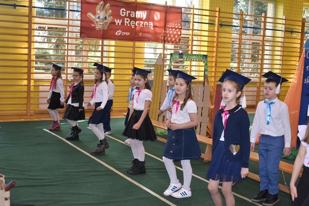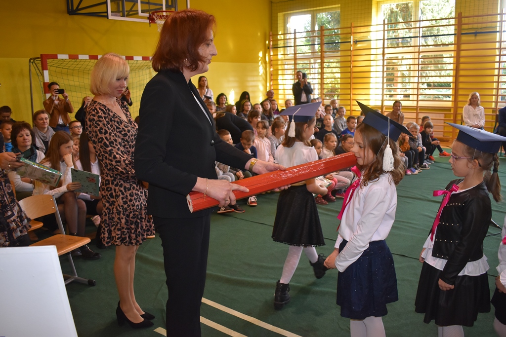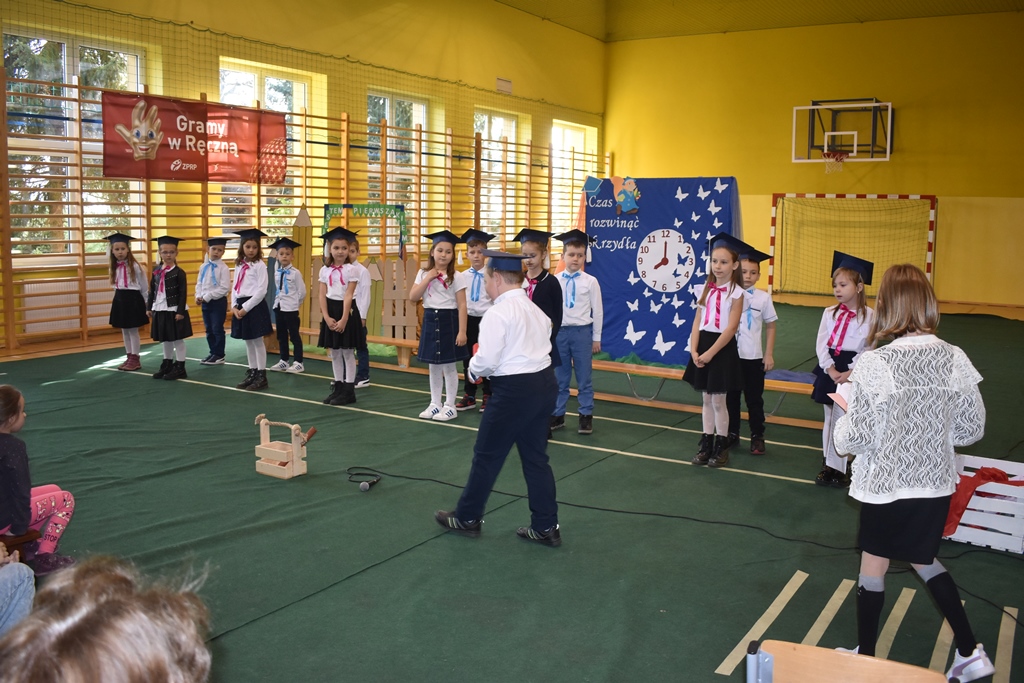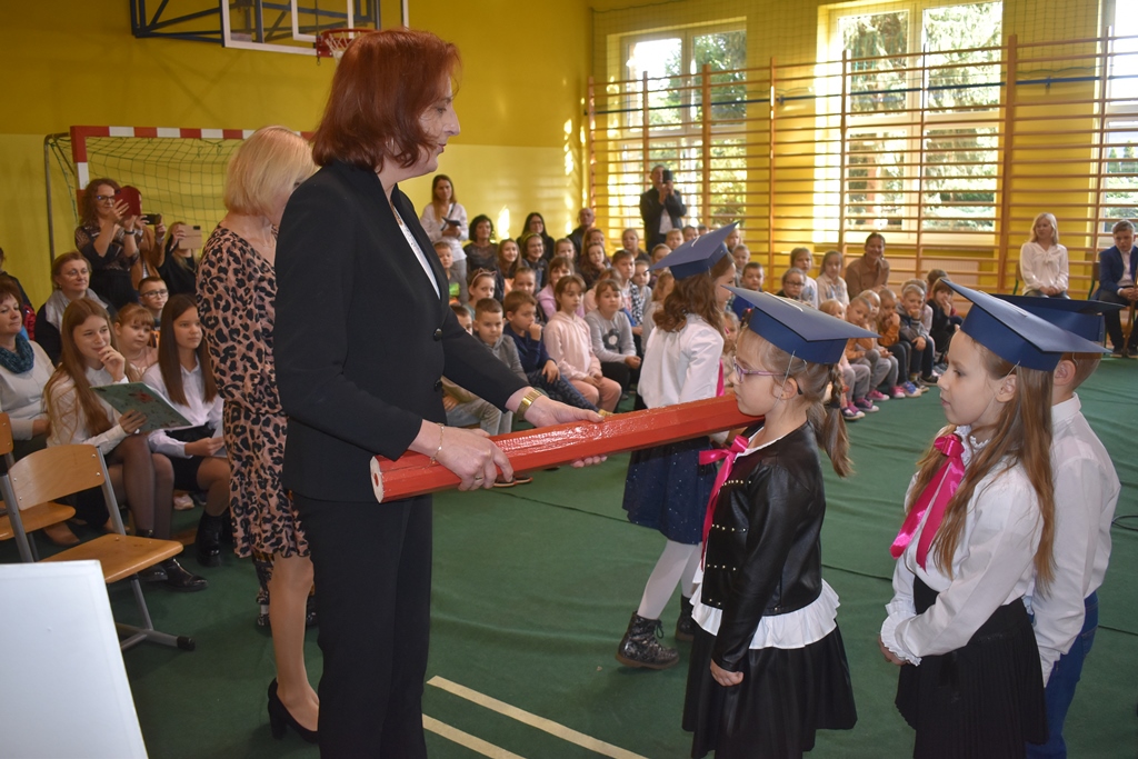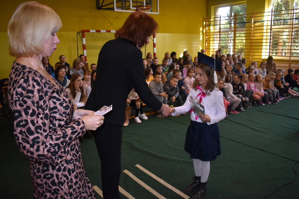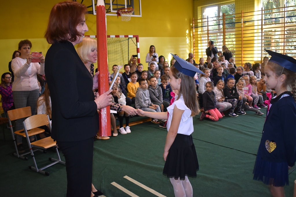 Bardzo ważnym momentem w życiu każdego młodego człowieka jest ślubowanie i pasowanie na ucznia. Mimo, że pierwszakami są już od 1 września to uroczyste i oficjalne włączenie do społeczności uczniowskiej Szkoły Podstawowej w Mokronosie nastąpiło w dniu 3 listopada br. W tym roku szkolnym ślubowanie składało 15 uczniów - 8 dziewczynek i 7 chłopców. Zanim pierwszaki zostały przyjęte do grona uczniów przygotowały wspólnie z wychowawczynią panią Beatą Klause część artystyczną uroczystości : wiersze, piosenki i tańce. Kolejno zdobywali punkty - kolorowe kredki od starszych koleżanek na znak, że są już gotowi by zostać uczniami. Występ dzieci spotkał się z bardzo ciepłym przyjęciem. Artyści po każdym występie byli nagradzani gromkimi brawami. Następnie pierwszoklasistów czekało uroczyste ślubowanie i tradycyjnie pasowanie na ucznia symboliczną kredką, którego dokonała Pani Dyrektor Alina Rączka w obecności rodziców, nauczycieli oraz koleżanek i kolegów. Uroczystość dostarczyła dzieciom, ich rodzicom i gościom wielu miłych przeżyć i wrażeń. Po części oficjalnej dzieci zostały zaproszone na słodki poczęstunek przygotowany przez rodziców.