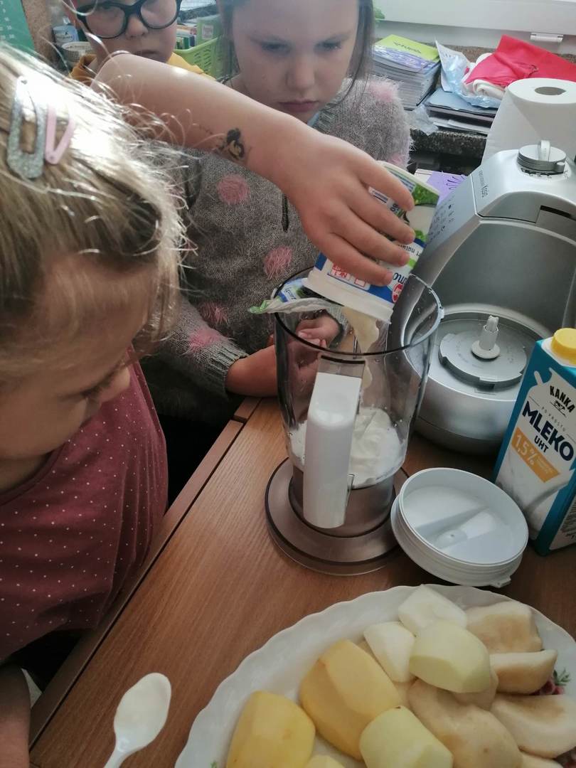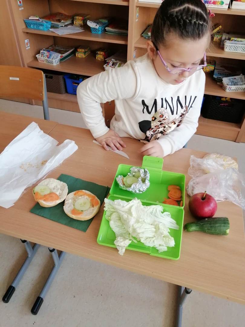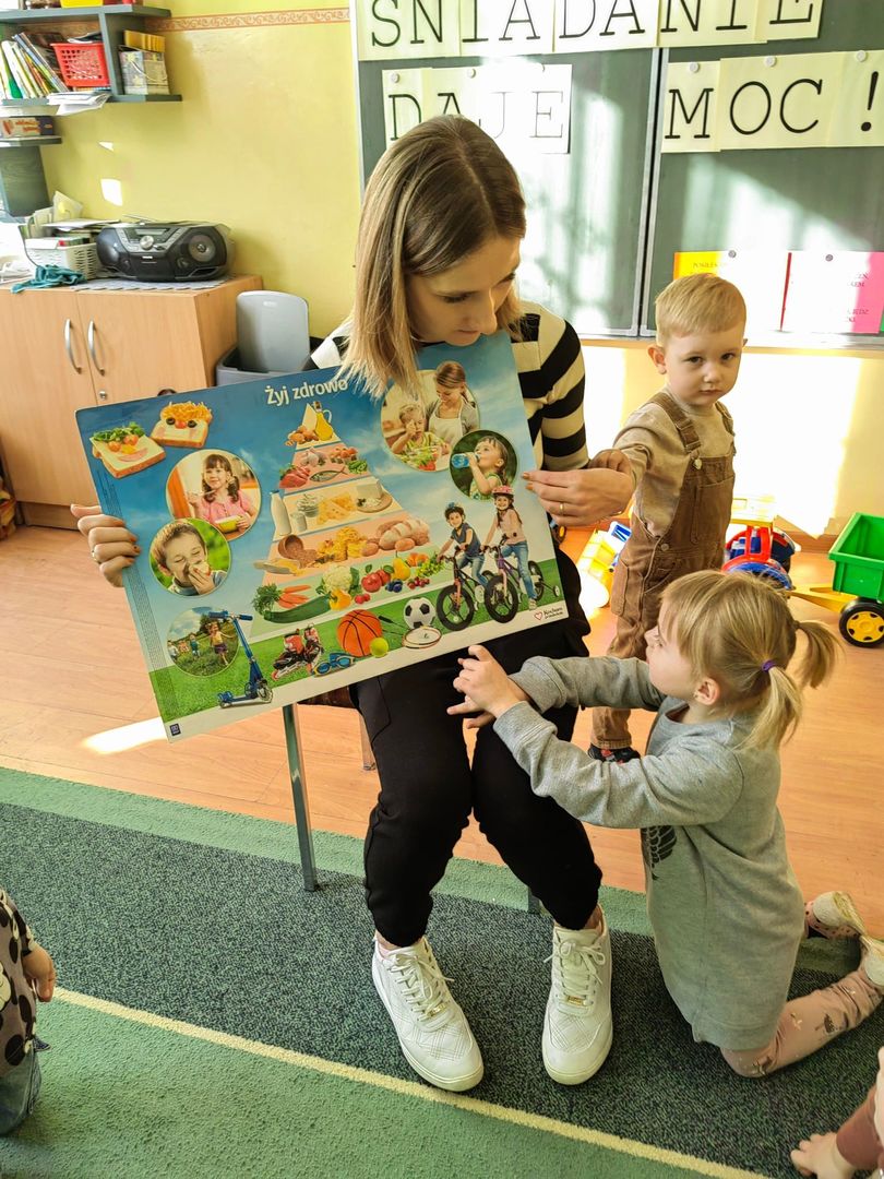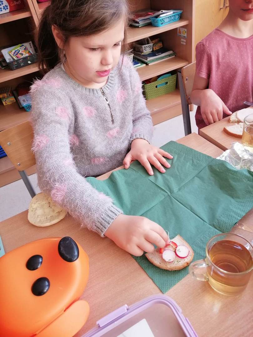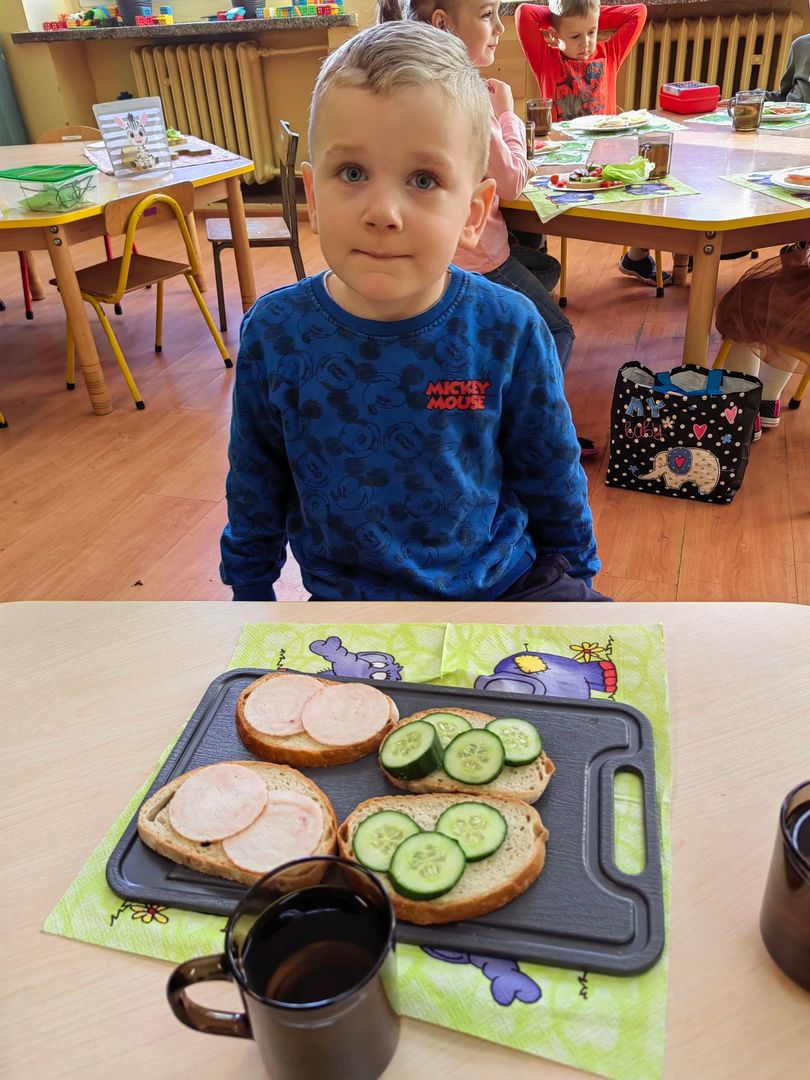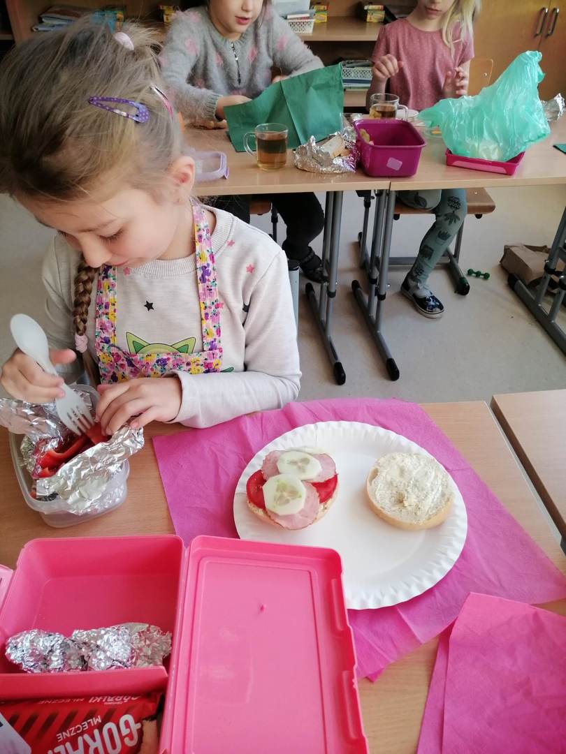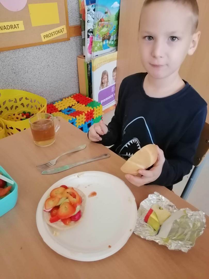 Dziś dzieci z oddziału przedszkolnego 4-5 latki od samego rana świętowały Dzień Zdrowego Śniadania. Samodzielnie przygotowały pyszne i zdrowe kanapki. Miłą niespodzianką okazały się zajęcia, które przeprowadziła p. Lidia Staniek, technolog żywności i żywienia człowieka. Przekazała dzieciom wiele ciekawych wskazówek oraz rad jak zdrowo się odżywiać i na czym powinna być oparta dieta każdego człowieka. Zwróciła również uwagę na wszystkie niezdrowe produkty, które wpływają niekorzystnie na organizm człowieka. Cała grupa wspólnie stworzyła plakat dzieląc produkty na zdrowe oraz niezdrowe. Końcowym elementem spotkania było przygotowanie owocowych soków. Sprawiło to dzieciom wiele radości, wykazały się pomocna dłonią w produkcji napojów. Najlepszym momentem była ich degustacja. Pyszne, bogate w witaminy, kolorowe soki zniknęły w mgnieniu oka.
