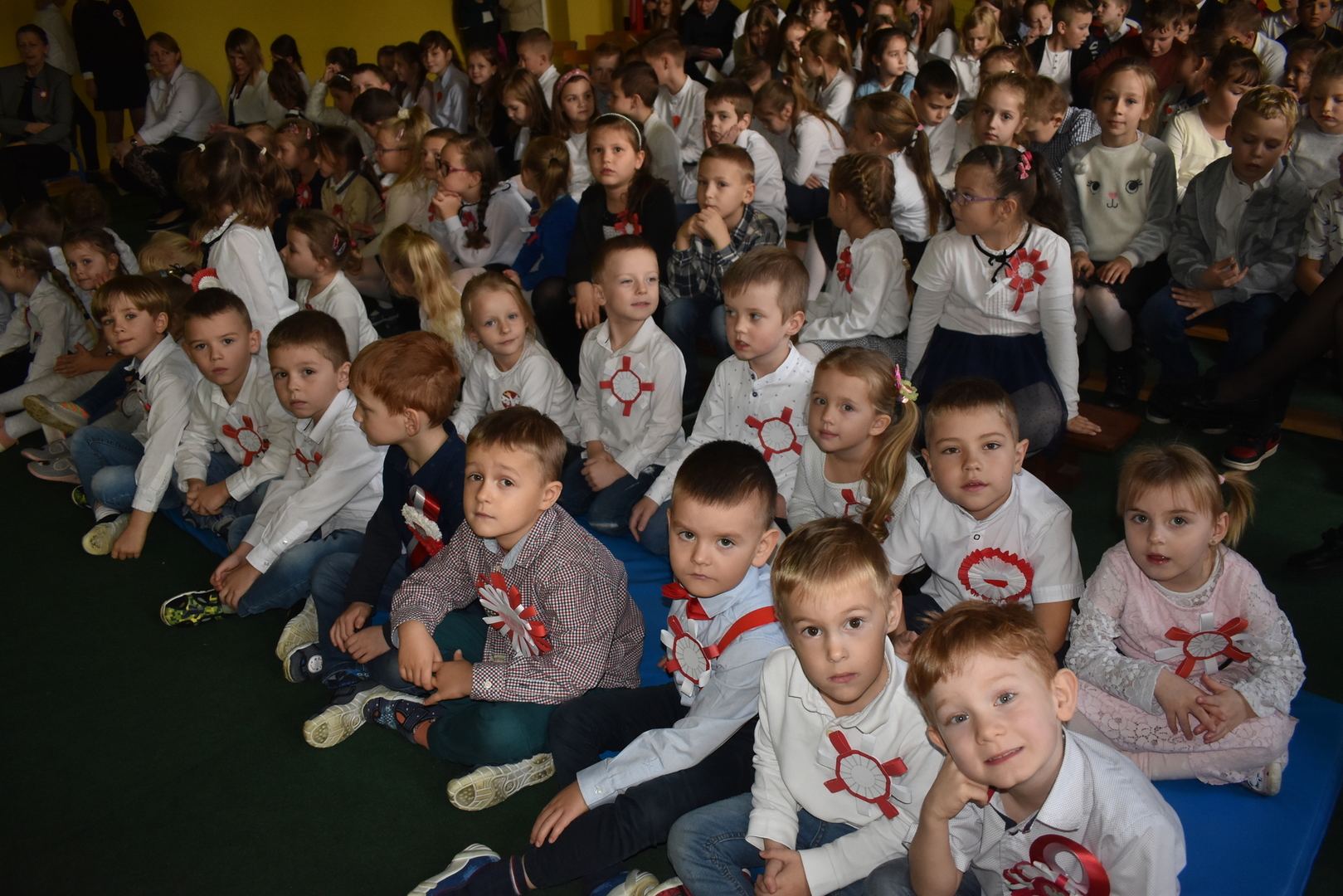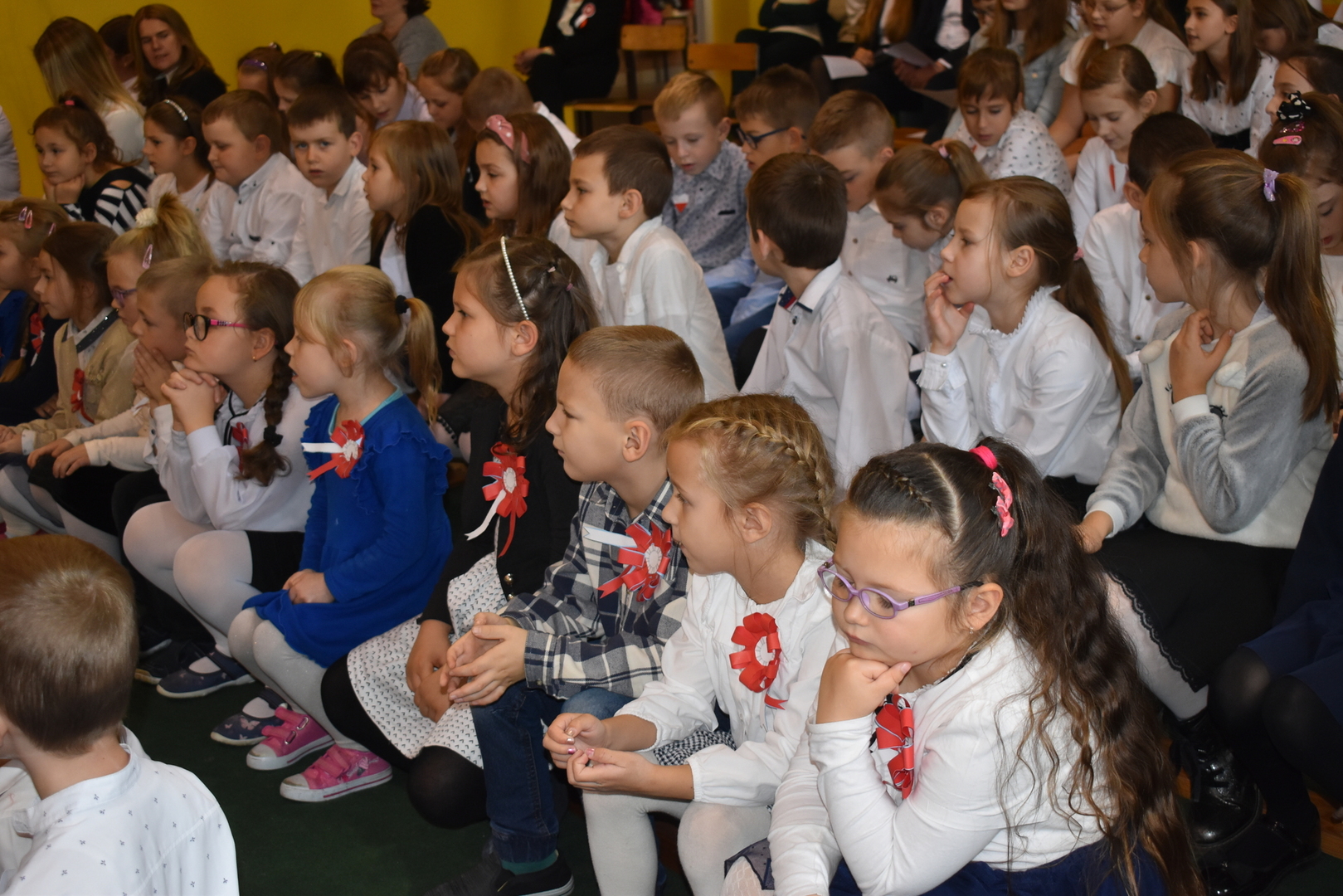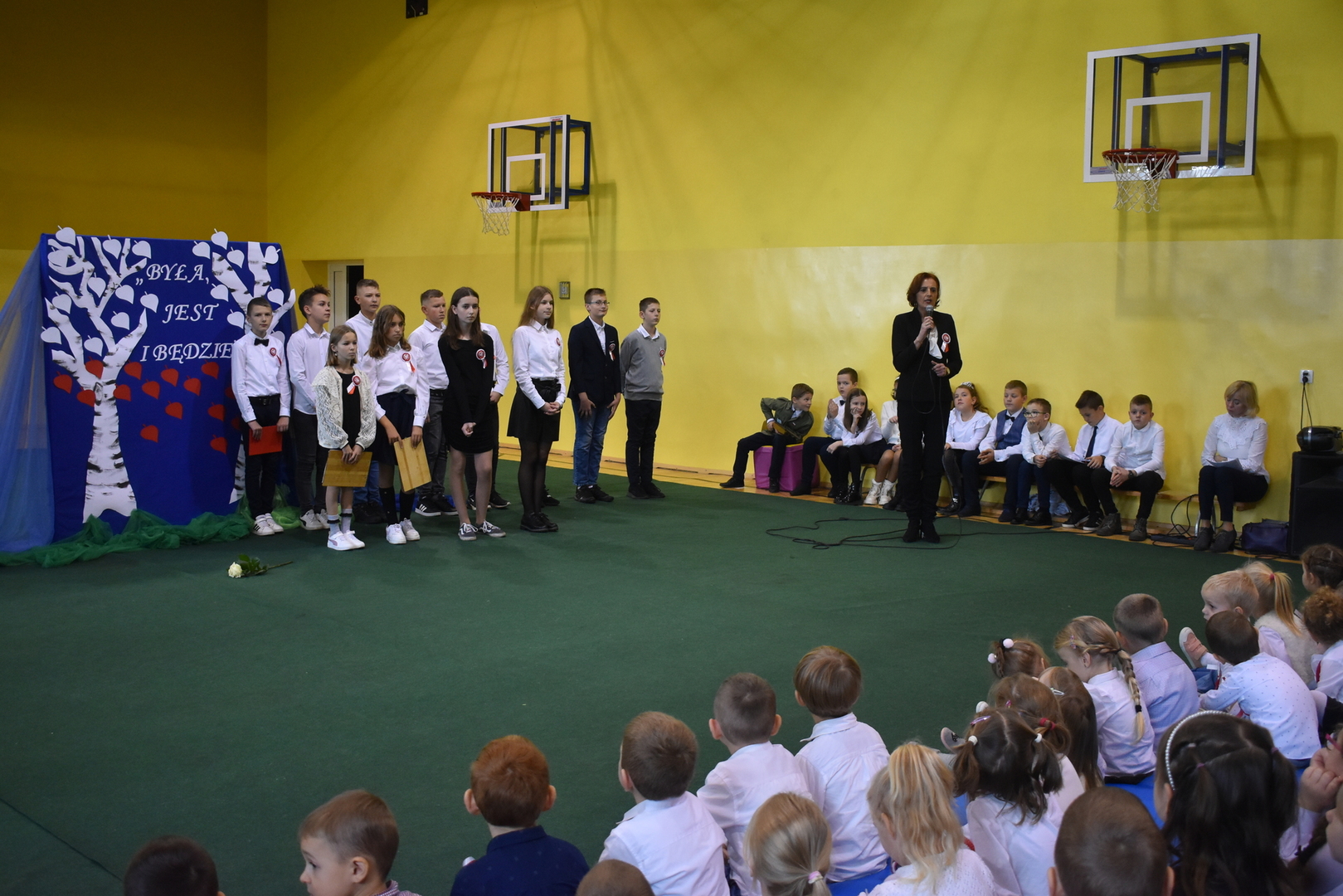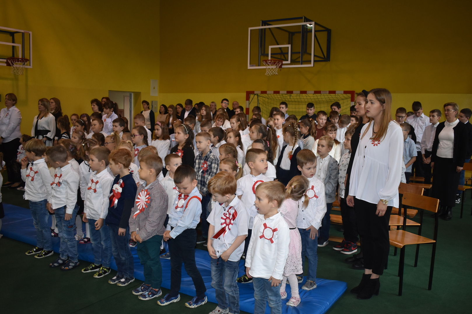 Jutro obchodzimy 104. rocznicę tego ważnego dla wszystkich Polaków wydarzenia. Uczniowie z klasy IV i VI, pod okiem pani. H.Poniatowskiej i B.Klause, przygotowali przepiękny montaż słowno - muzyczny, wspaniałą lekcję historii. Wszyscy uczniowie, wspólnie i dumnie stanęli do odśwpiewania hymnu państwowego. Każdy z nas był odświetnie ubrany, a z lewej strony przypięty miał biało-czerwony kotylion.