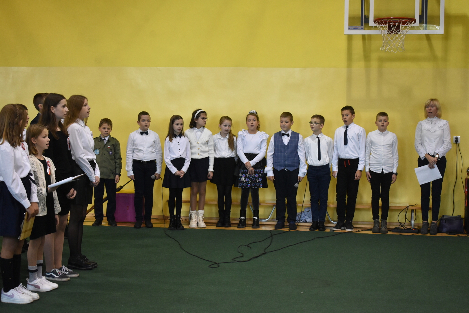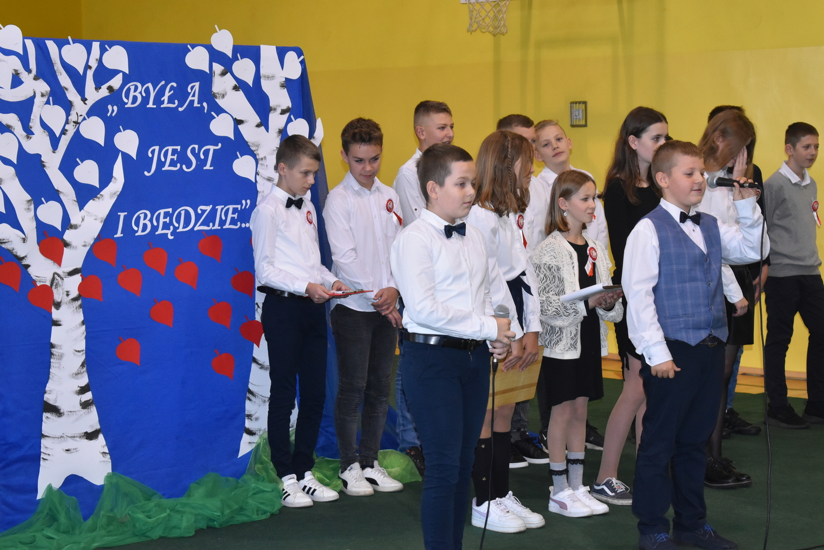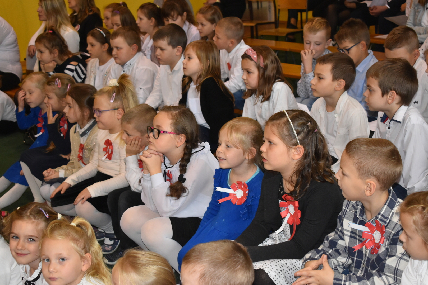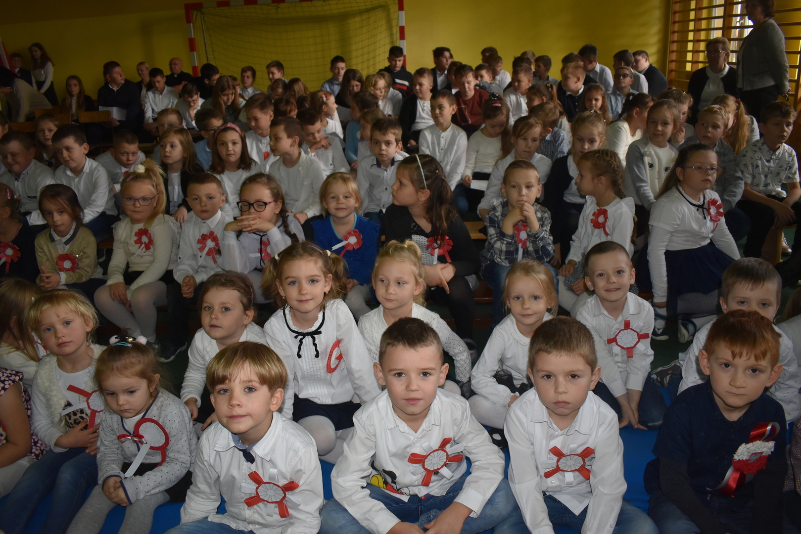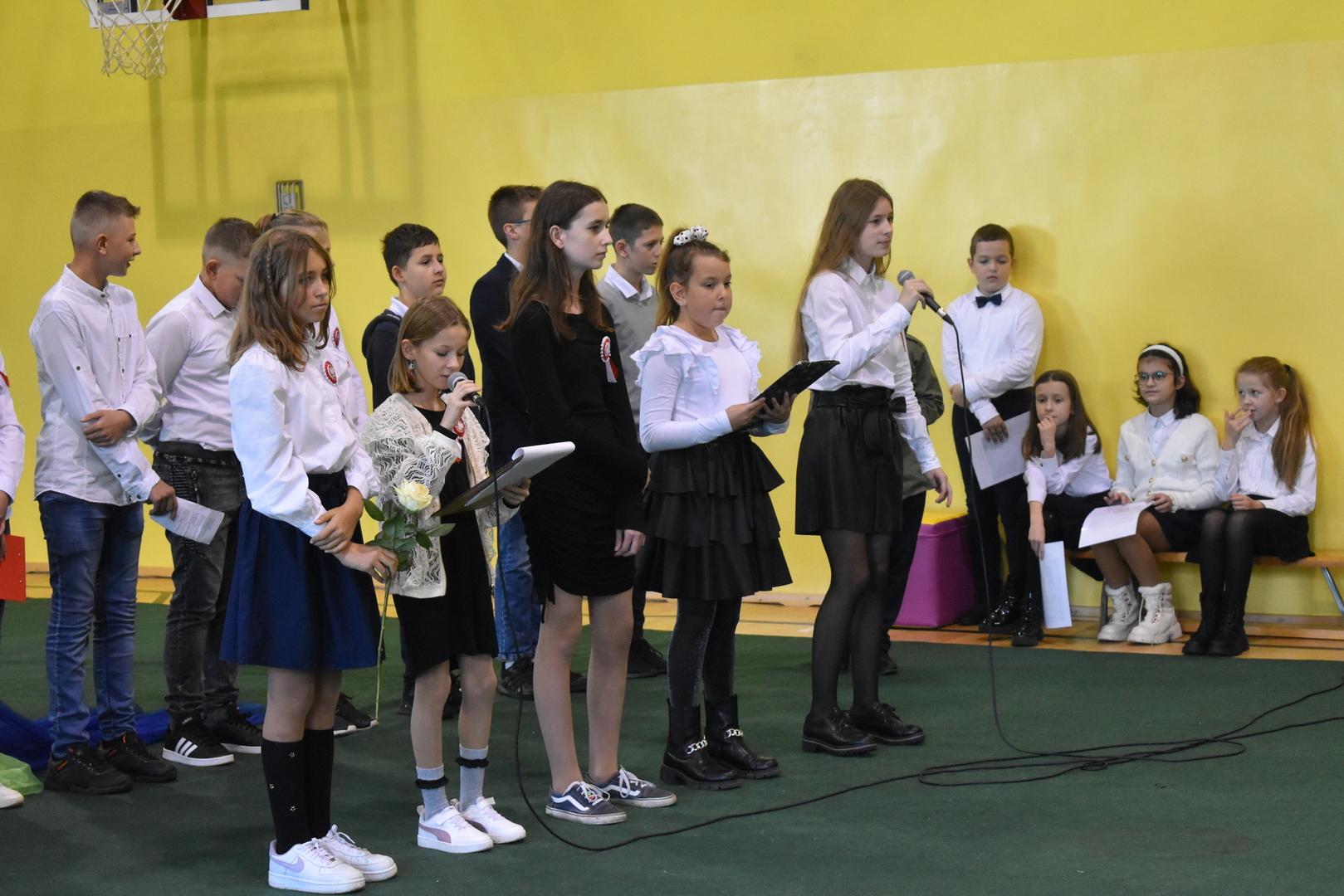 Jutro obchodzimy 104. rocznicę tego ważnego dla wszystkich Polaków wydarzenia. Uczniowie z klasy IV i VI, pod okiem pani. H.Poniatowskiej i B.Klause, przygotowali przepiękny montaż słowno - muzyczny, wspaniałą lekcję historii. Wszyscy uczniowie, wspólnie i dumnie stanęli do odśwpiewania hymnu państwowego. Każdy z nas był odświetnie ubrany, a z lewej strony przypięty miał biało-czerwony kotylion.