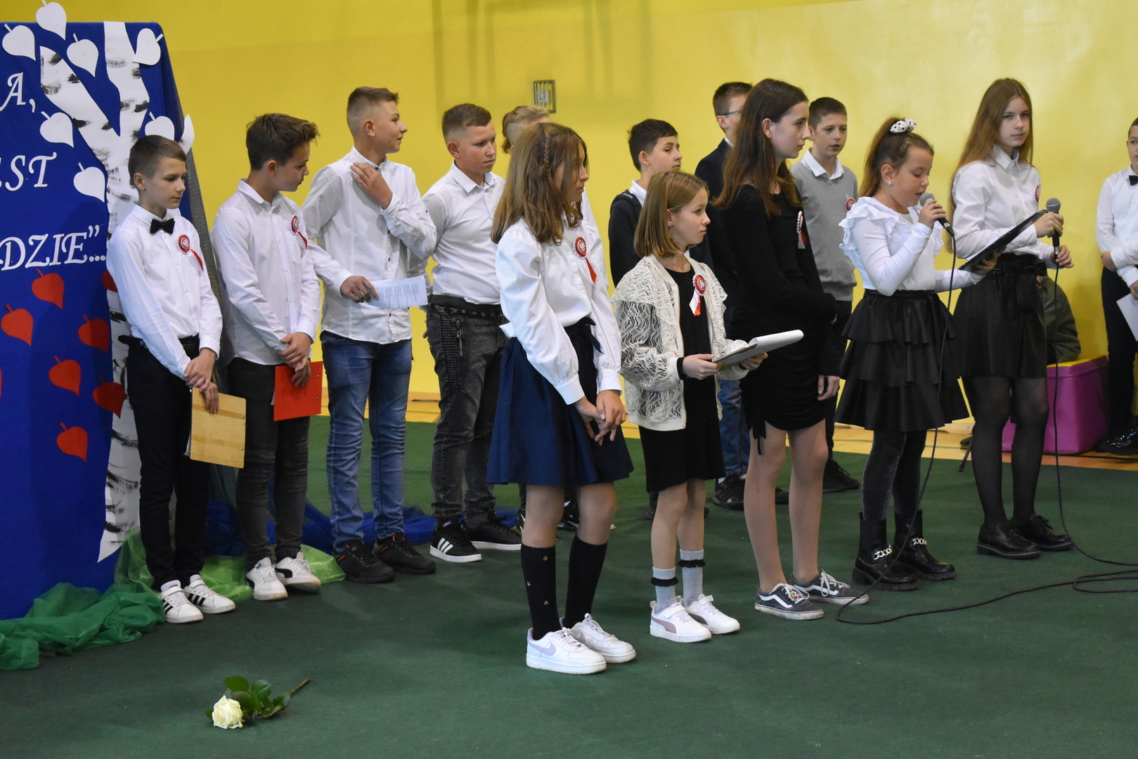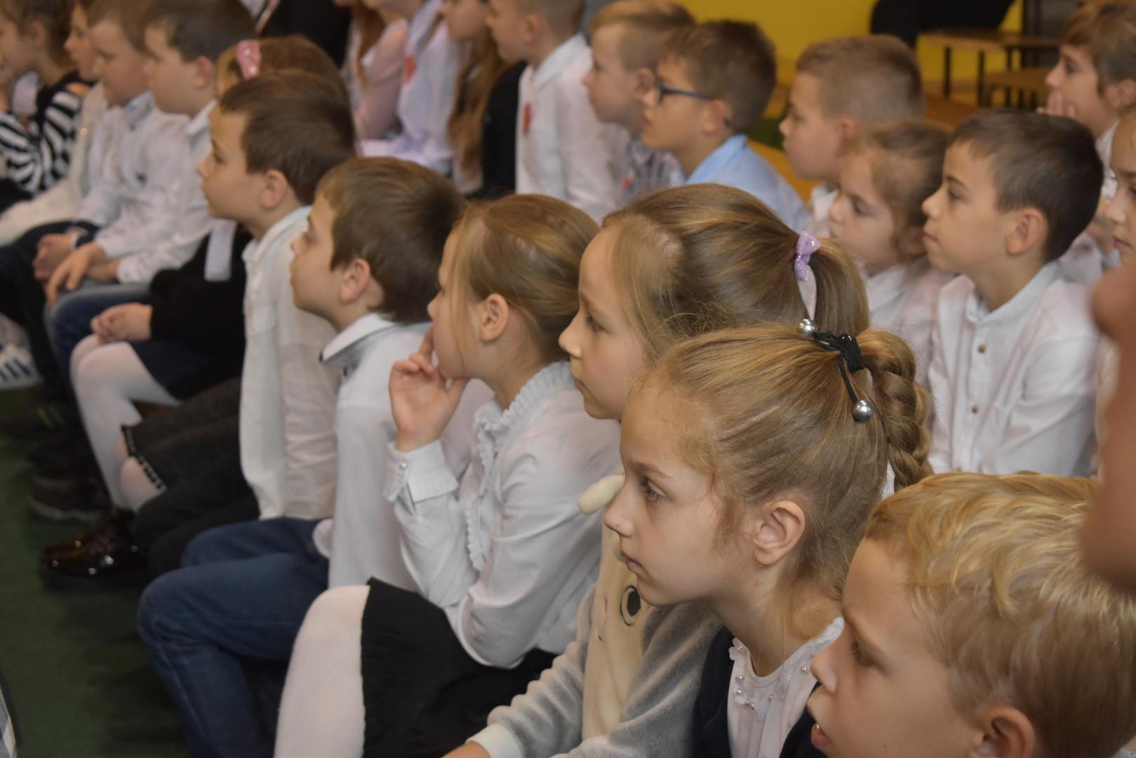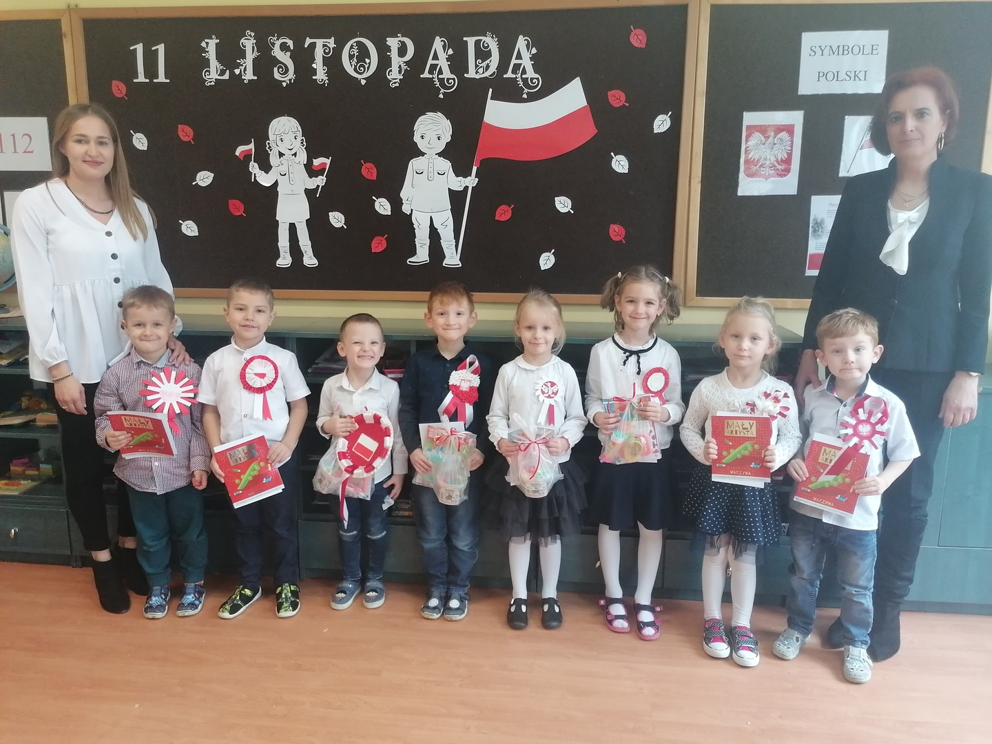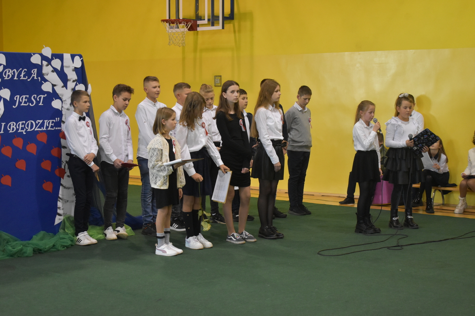 Jutro obchodzimy 104. rocznicę tego ważnego dla wszystkich Polaków wydarzenia. Uczniowie z klasy IV i VI, pod okiem pani. H.Poniatowskiej i B.Klause, przygotowali przepiękny montaż słowno - muzyczny, wspaniałą lekcję historii. Wszyscy uczniowie, wspólnie i dumnie stanęli do odśwpiewania hymnu państwowego. Każdy z nas był odświetnie ubrany, a z lewej strony przypięty miał biało-czerwony kotylion.