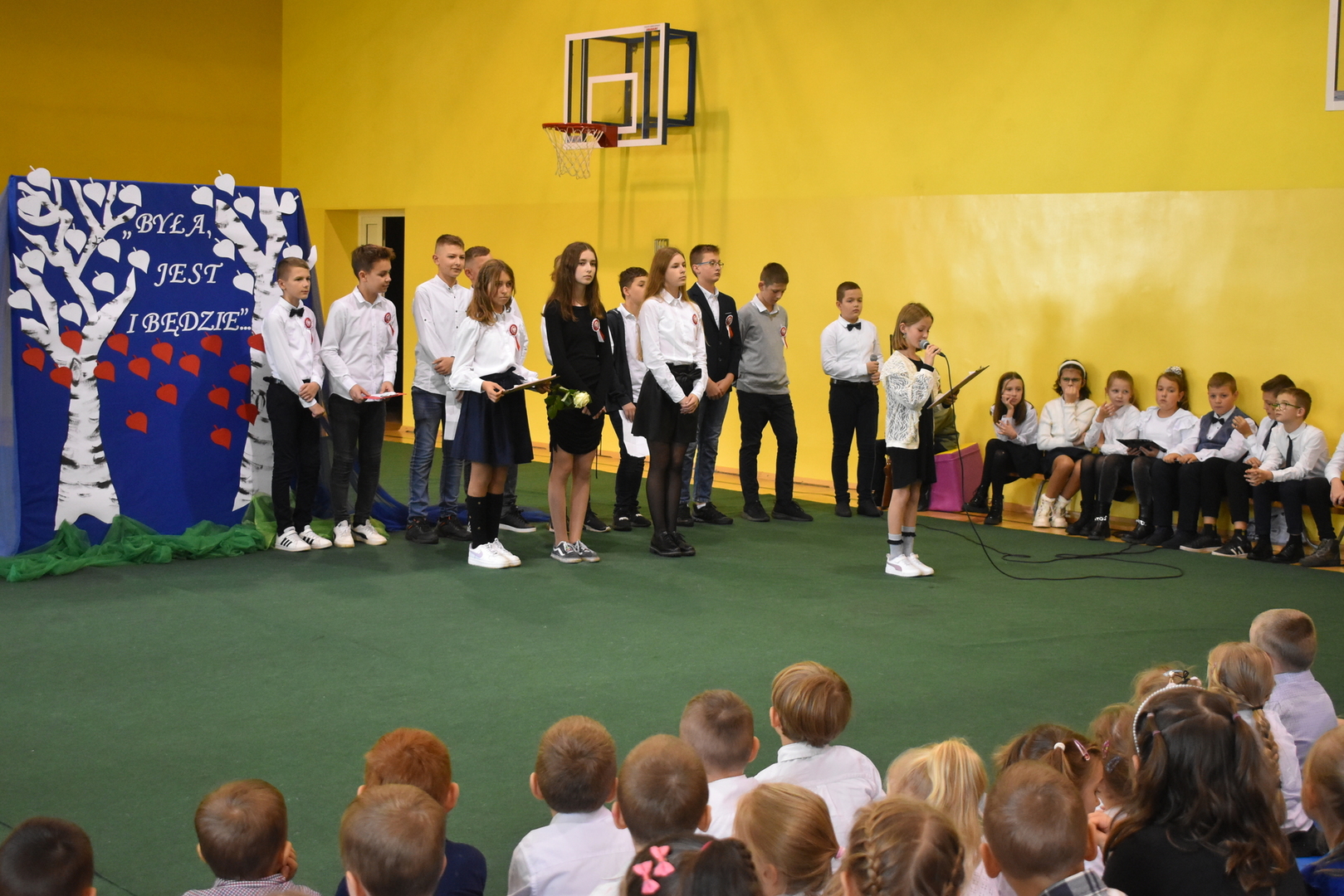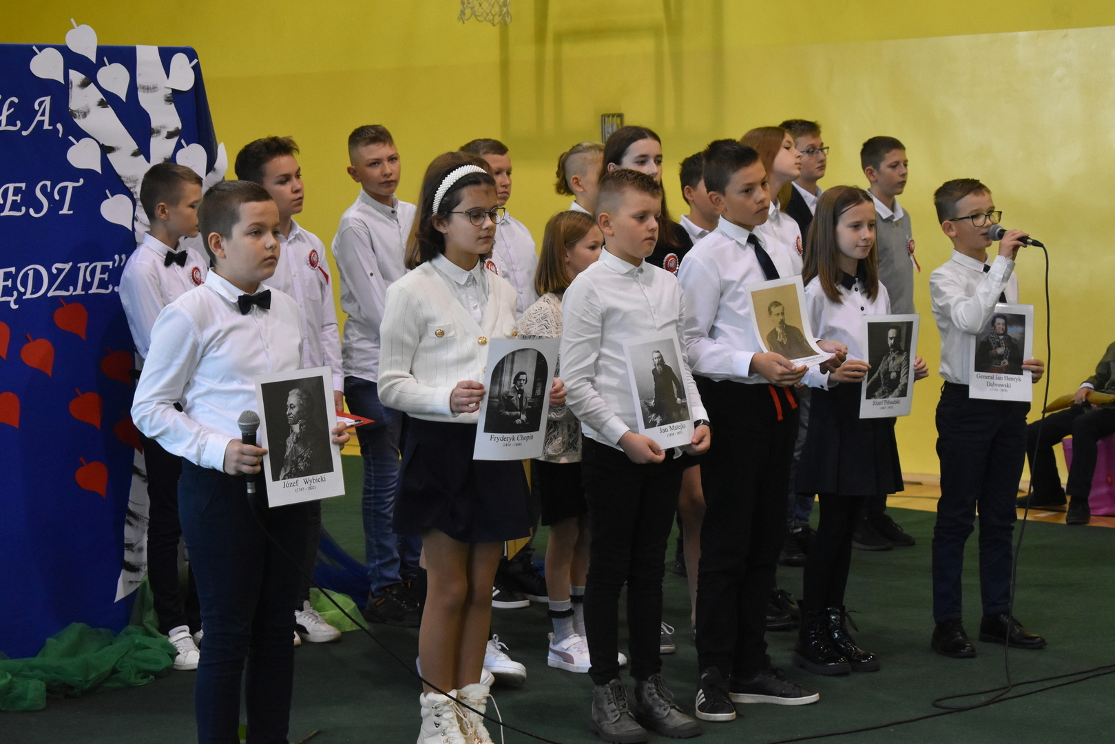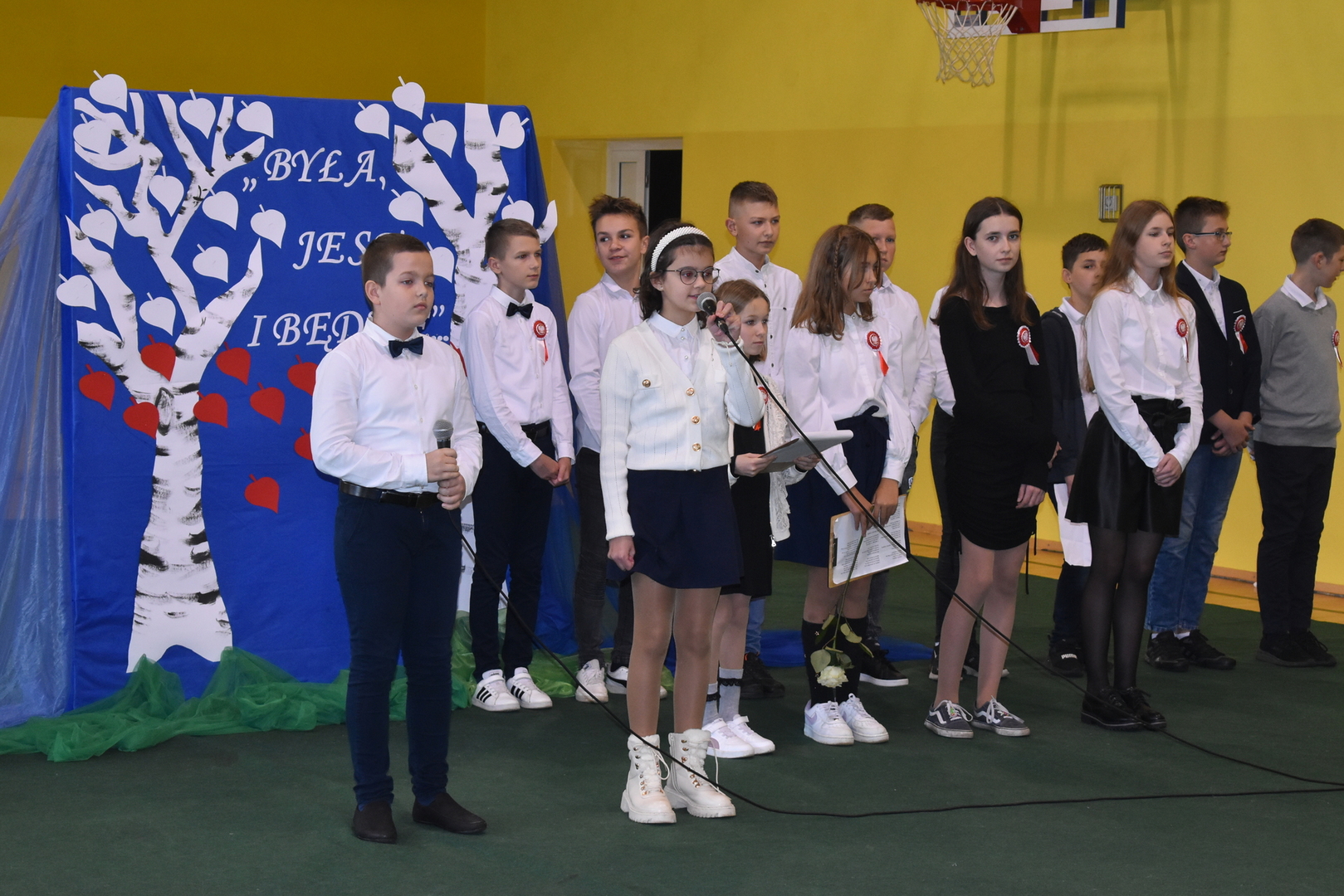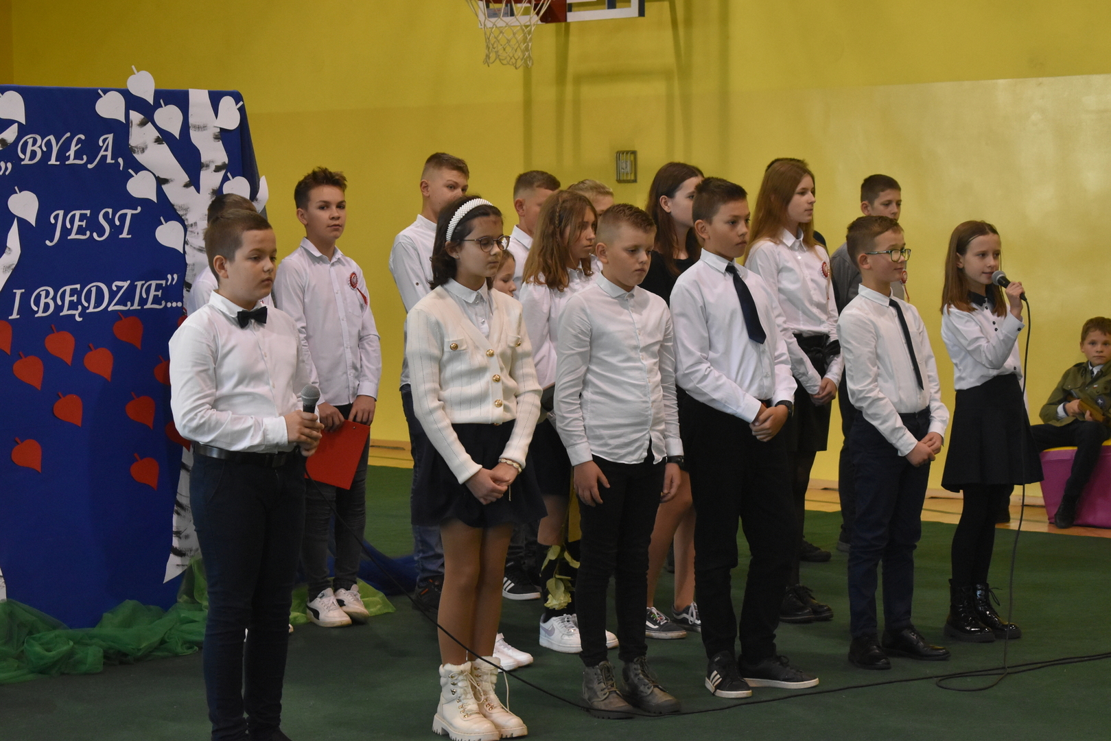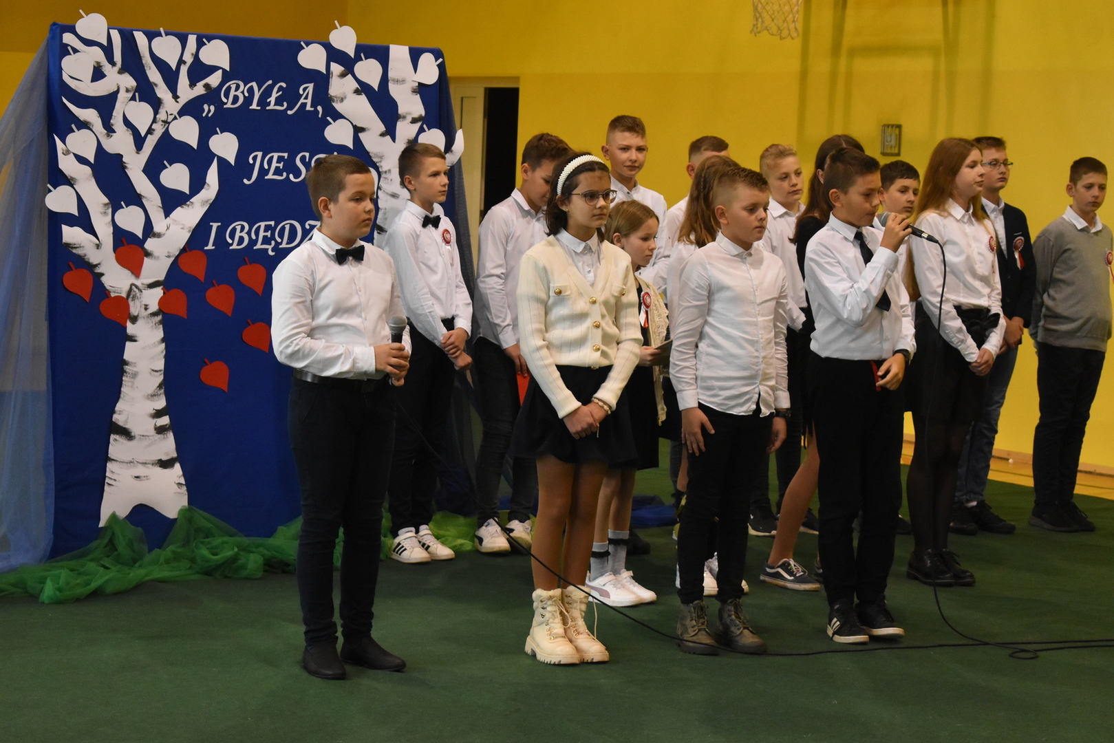 Jutro obchodzimy 104. rocznicę tego ważnego dla wszystkich Polaków wydarzenia. Uczniowie z klasy IV i VI, pod okiem pani. H.Poniatowskiej i B.Klause, przygotowali przepiękny montaż słowno - muzyczny, wspaniałą lekcję historii. Wszyscy uczniowie, wspólnie i dumnie stanęli do odśwpiewania hymnu państwowego. Każdy z nas był odświetnie ubrany, a z lewej strony przypięty miał biało-czerwony kotylion.
