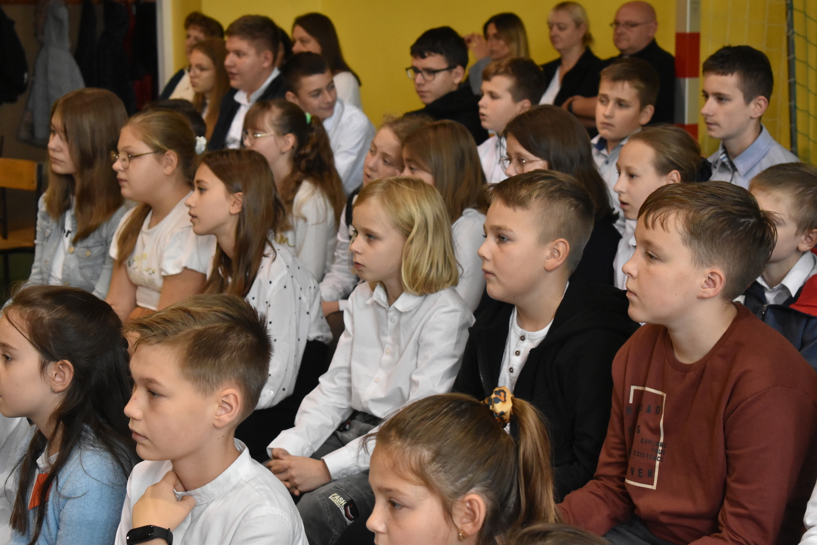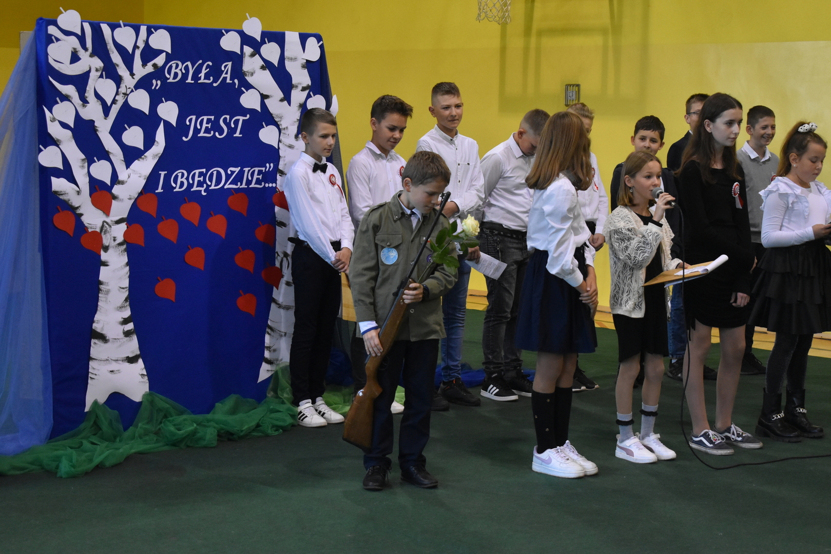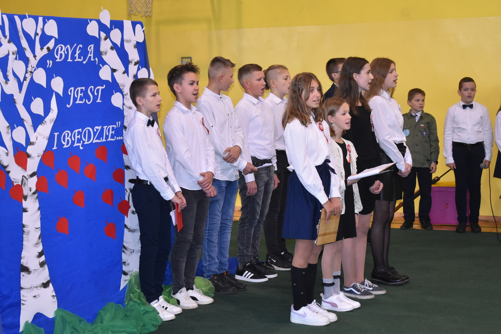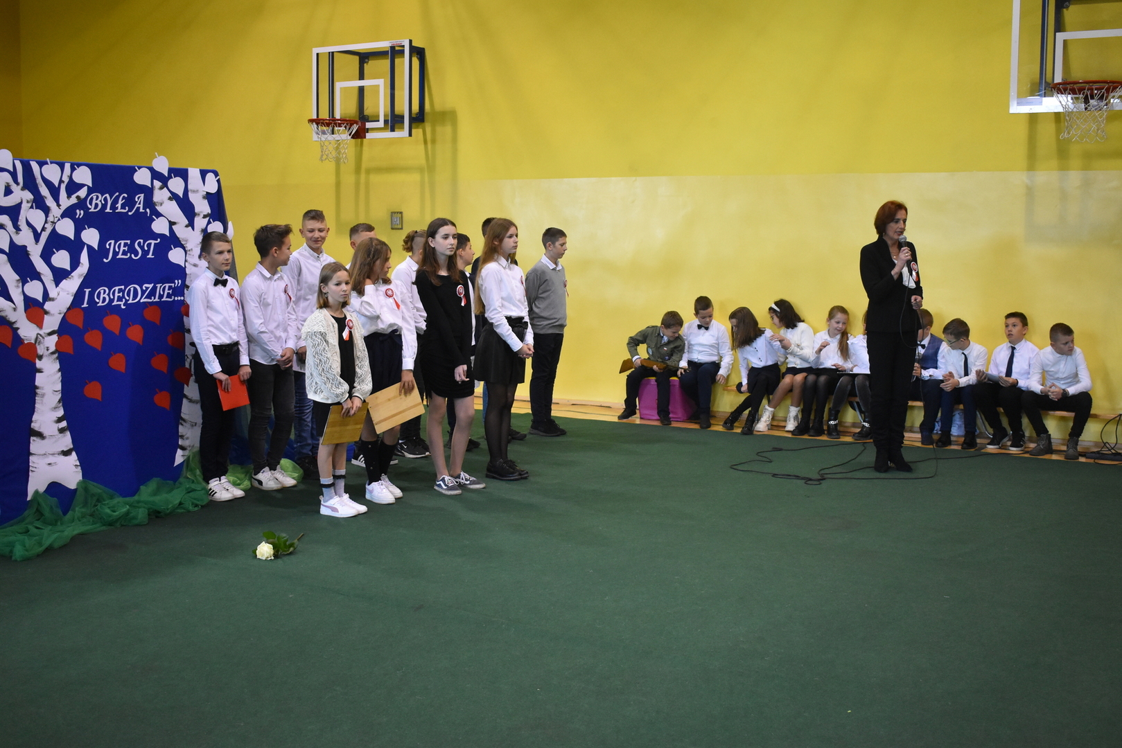 Jutro obchodzimy 104. rocznicę tego ważnego dla wszystkich Polaków wydarzenia. Uczniowie z klasy IV i VI, pod okiem pani. H.Poniatowskiej i B.Klause, przygotowali przepiękny montaż słowno - muzyczny, wspaniałą lekcję historii. Wszyscy uczniowie, wspólnie i dumnie stanęli do odśwpiewania hymnu państwowego. Każdy z nas był odświetnie ubrany, a z lewej strony przypięty miał biało-czerwony kotylion.