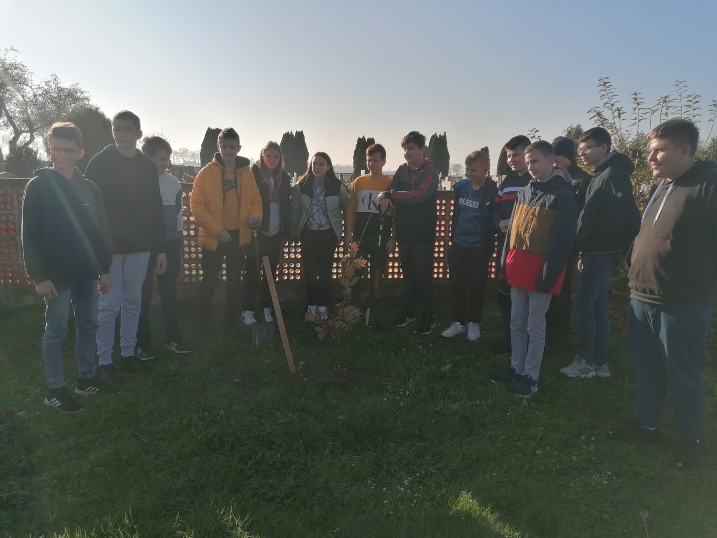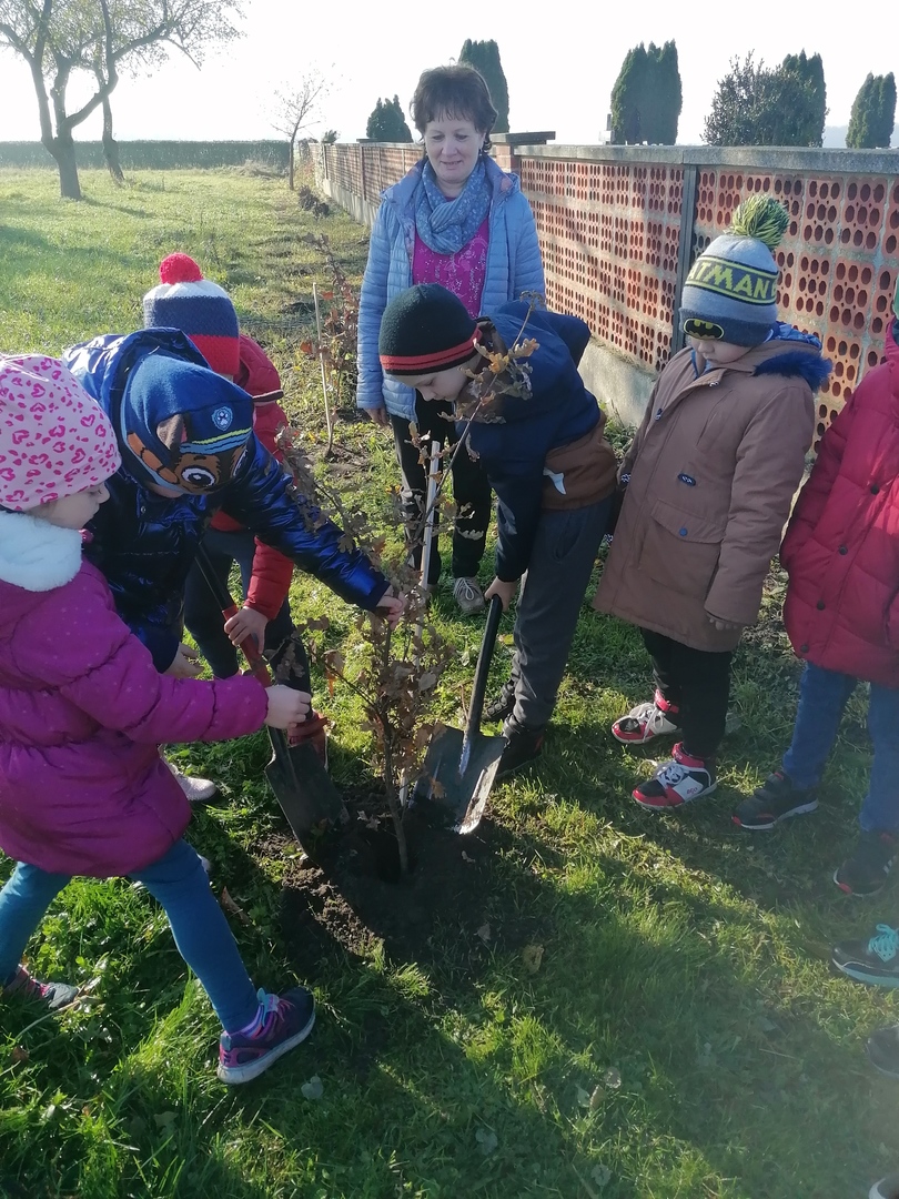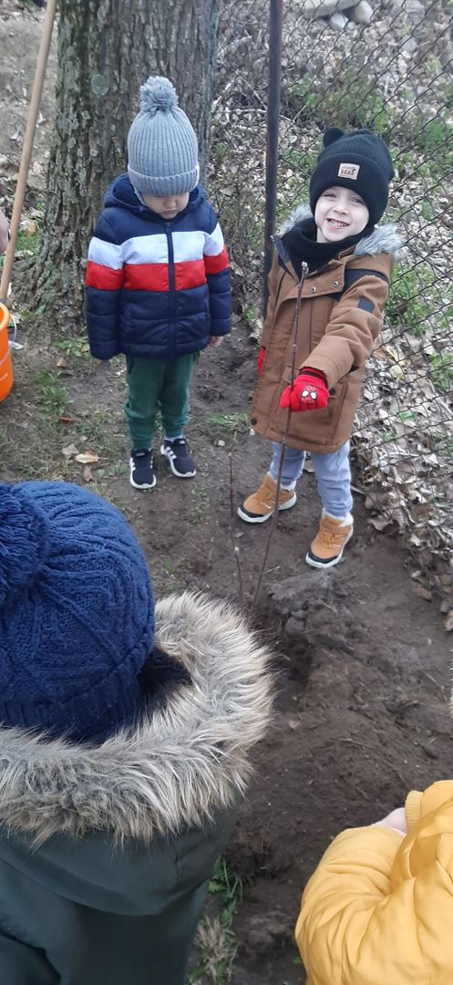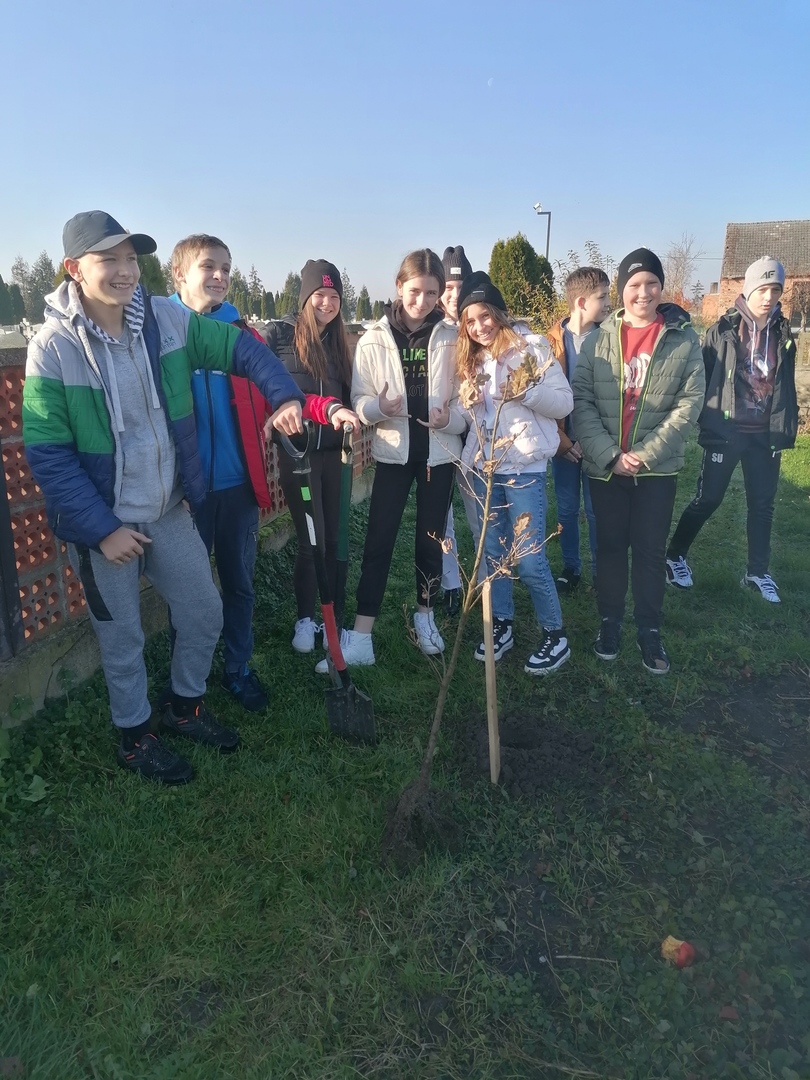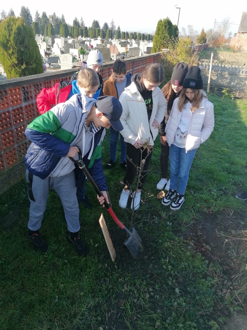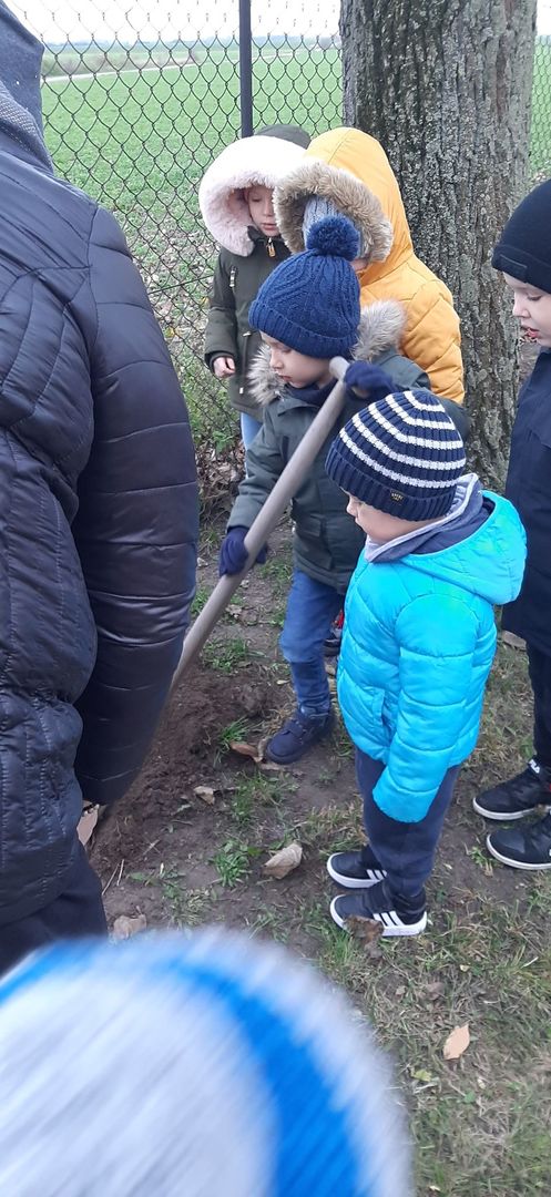 W ramach programu edukacji ekologicznej w naszej szkole w dniu 15 listopada br., w piękne, słoneczne przedpołudnie uczniowie posadzili drzewa na terenie ogrodu szkolnego. Każda klasa otrzymała symboliczną sadzonkę dębu, natomiast dzieci z oddziałów przedszkolnych otrzymały sadzonkę jarzębiny. Podczas całego pobytu w szkole będą pielęgnować i obserwować wzrost drzew. Po wielu latach, jako dorośli ludzie będą mogli zobaczyć co zrobili jako uczniowie tej szkoły. Niech posadzone drzewa będą symbolem upływającego czasu i na zawsze pozostaną ostoją przyrody wokół naszej szkoły.