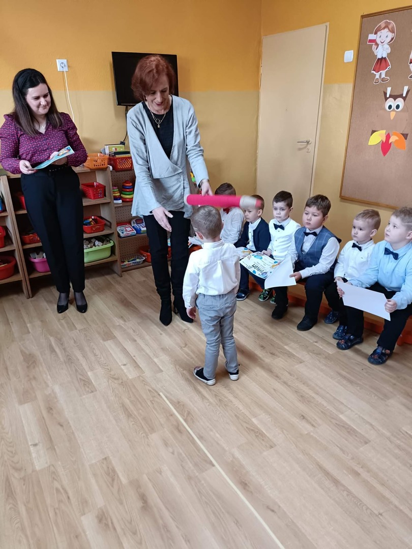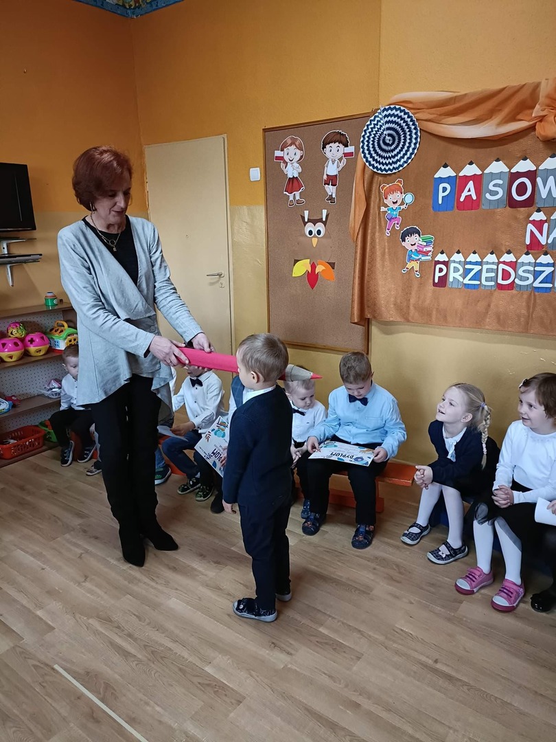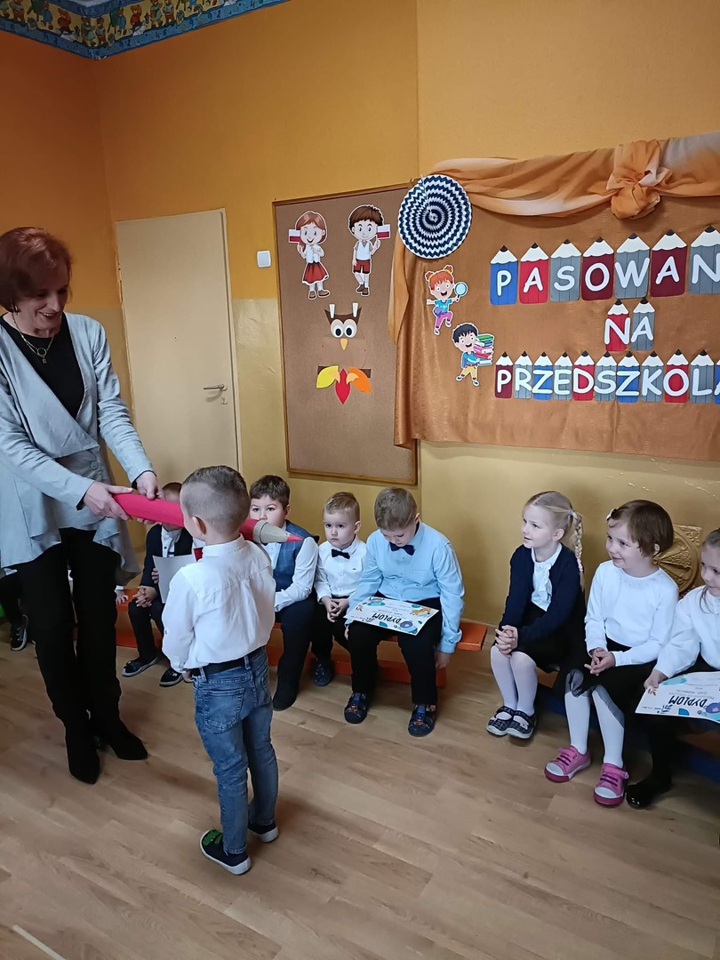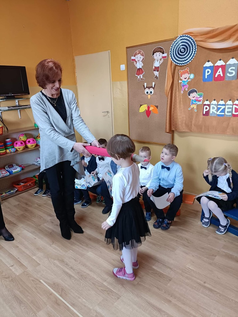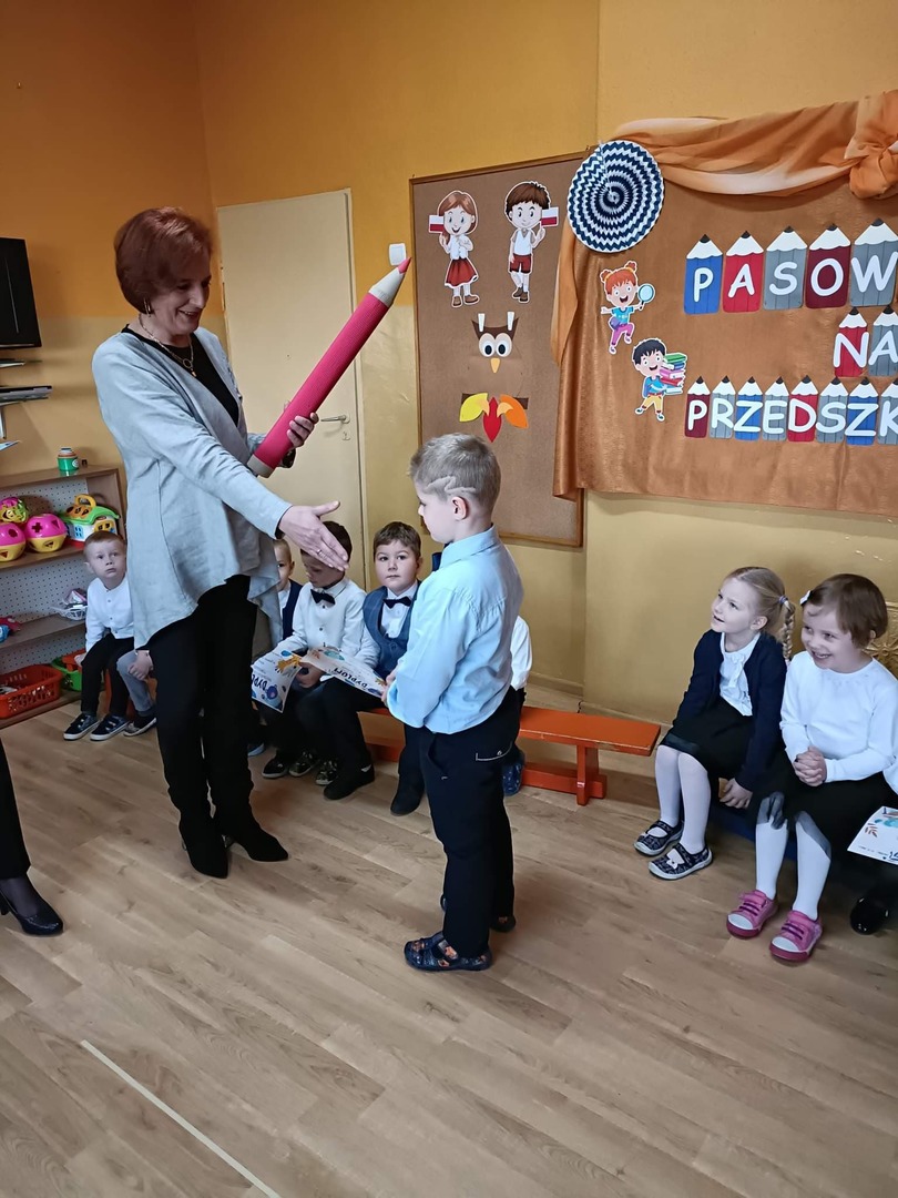 Uroczystość pasowania na przedszkolaka i starszaka to bardzo ważna chwila - zarówno dla dzieci, wychowawcy oraz rodziców. Dzień 15 listopada pozostanie na długo w pamięci Przedszkolaków z Wrotkowa. Uroczystość rozpoczęła się od krótkiej części artystycznej, w której dzieci zaprezentowały swoje umiejętności recytatorskie oraz taneczno-wokalne. Były piosenki, wierszyki i tańce. Nie zabrakło również uroczystego ślubowania, po którym nastąpiło pasowanie przez panią Dyrektor z pomocą ,,zaczarowanej” kredki. Na pamiątkę tej ważnej chwili każde dziecko otrzymało dyplom oraz upominki. Dzieci obiecały przestrzegać wszystkich punktów ślubowania, że będą zgodnie się bawić w przedszkolu, przychodzić każdego dnia z uśmiechem, słuchać pani i pomagać kolegom, być dzielnym przedszkolakiem. Trzymamy ich za słowo.
