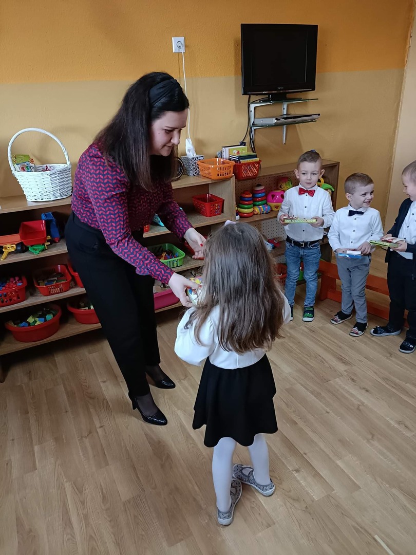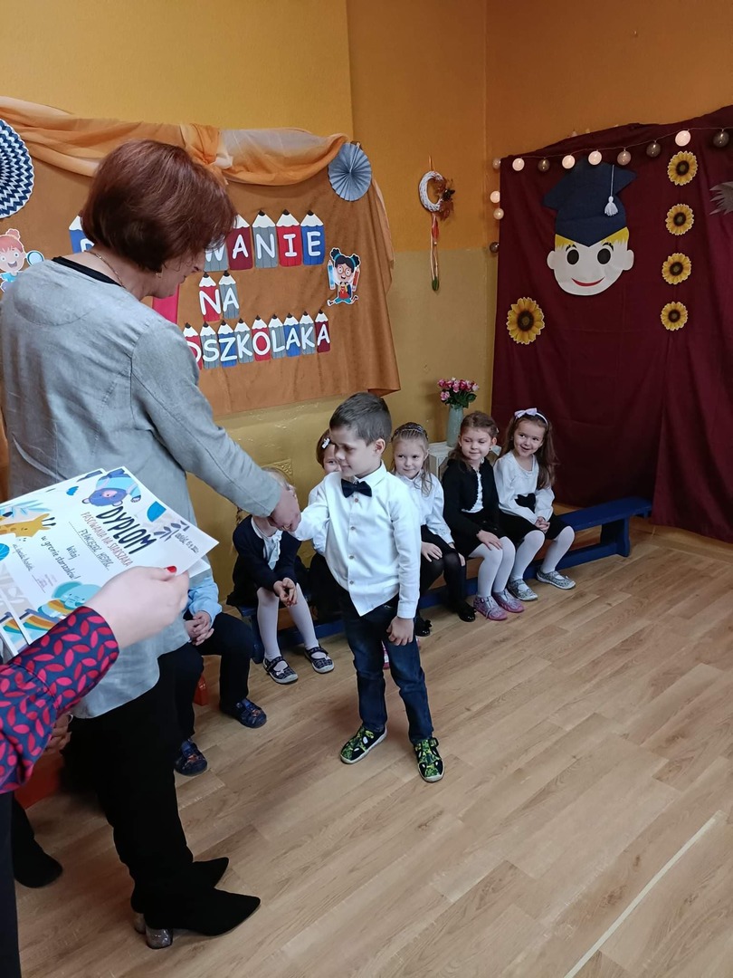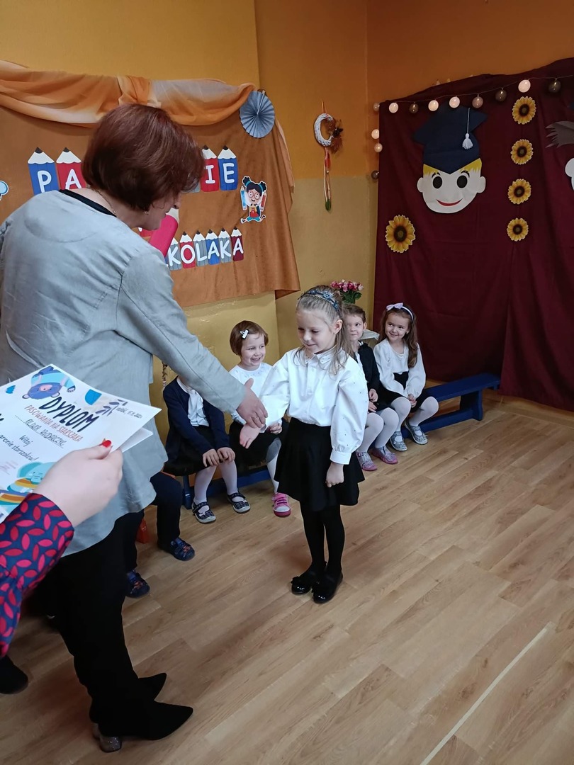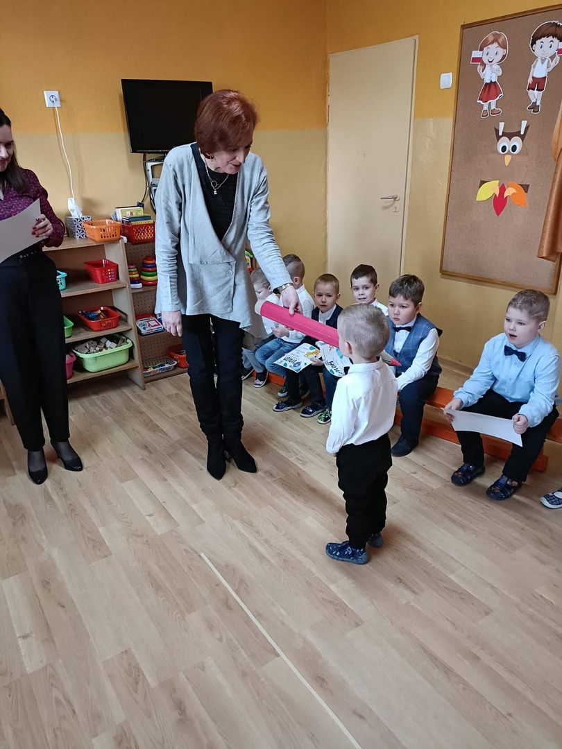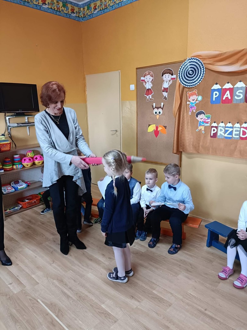 Uroczystość pasowania na przedszkolaka i starszaka to bardzo ważna chwila - zarówno dla dzieci, wychowawcy oraz rodziców. Dzień 15 listopada pozostanie na długo w pamięci Przedszkolaków z Wrotkowa. Uroczystość rozpoczęła się od krótkiej części artystycznej, w której dzieci zaprezentowały swoje umiejętności recytatorskie oraz taneczno-wokalne. Były piosenki, wierszyki i tańce. Nie zabrakło również uroczystego ślubowania, po którym nastąpiło pasowanie przez panią Dyrektor z pomocą ,,zaczarowanej” kredki. Na pamiątkę tej ważnej chwili każde dziecko otrzymało dyplom oraz upominki. Dzieci obiecały przestrzegać wszystkich punktów ślubowania, że będą zgodnie się bawić w przedszkolu, przychodzić każdego dnia z uśmiechem, słuchać pani i pomagać kolegom, być dzielnym przedszkolakiem. Trzymamy ich za słowo.