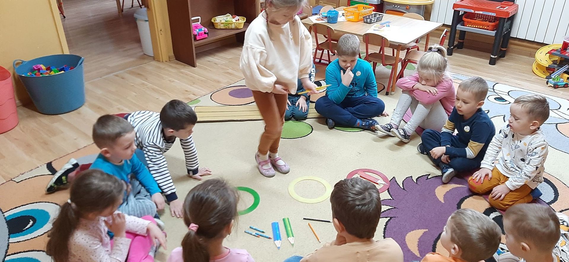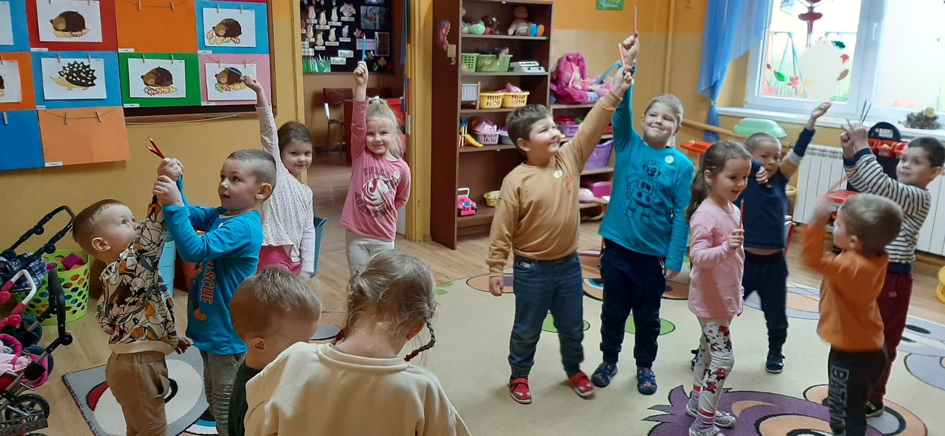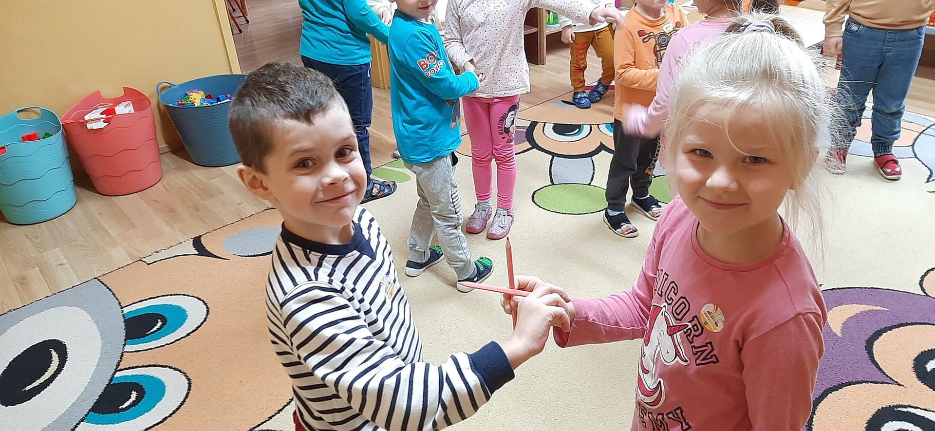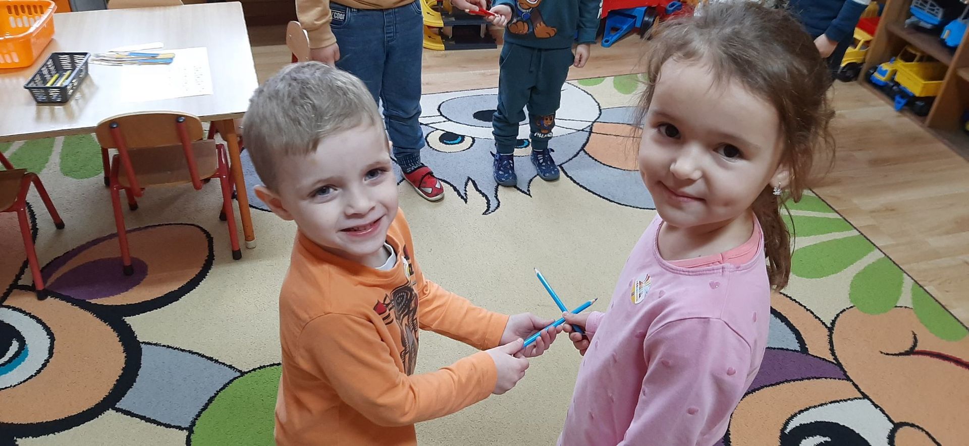 Nie zapomniały o tym przedszkolaki z Wrotkowa. Kredki to wspaniały przedmiot - bardzo popularny, dostępny dla każdego, pozwalający wyrazić swoje myśli i uczucia poprzez tworzenie fantazyjnych, barwnych obrazów.