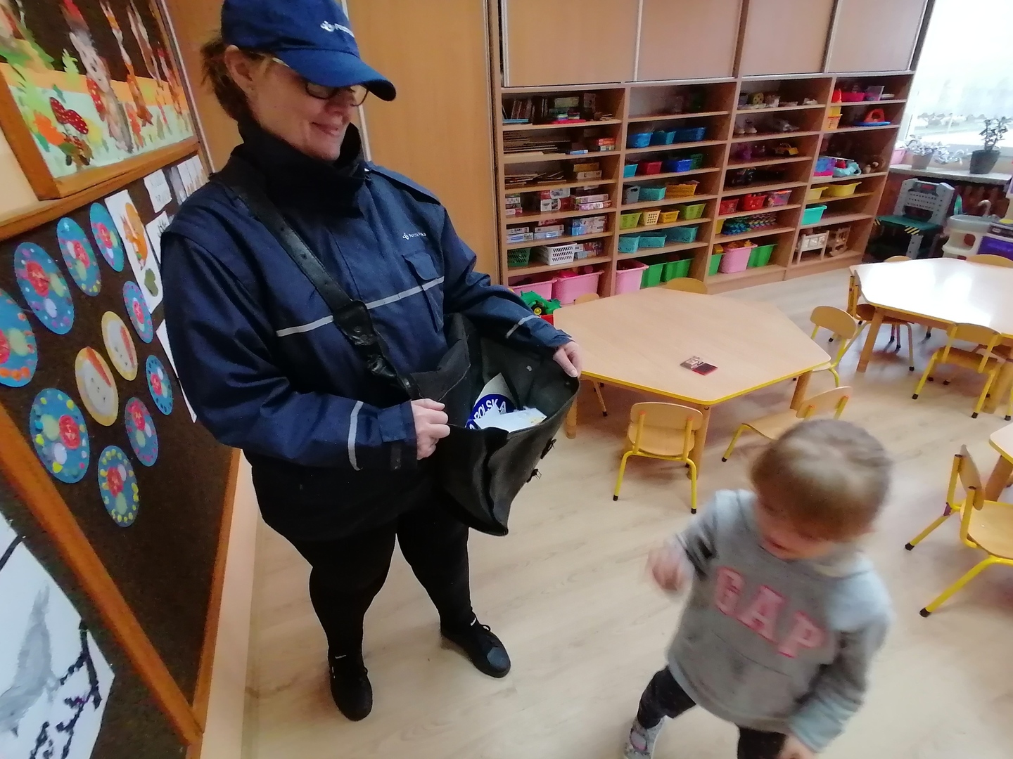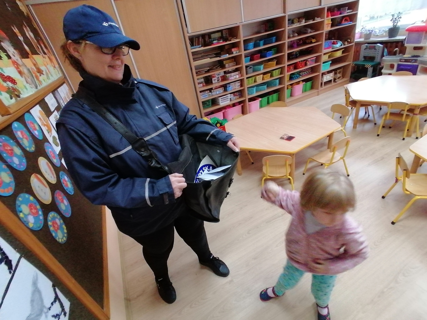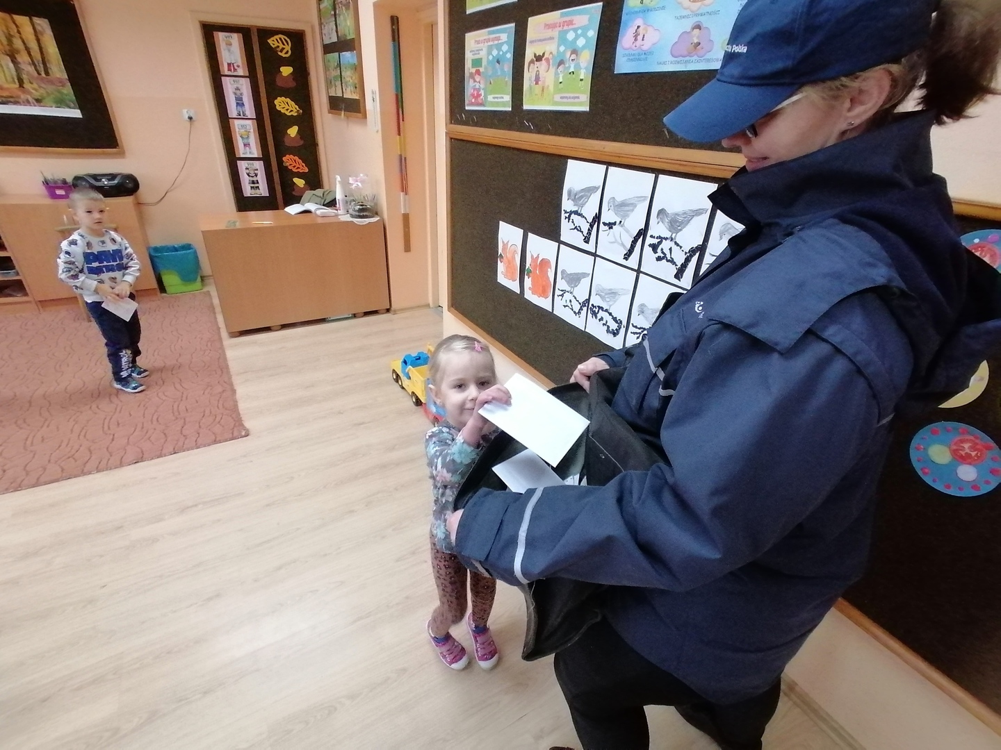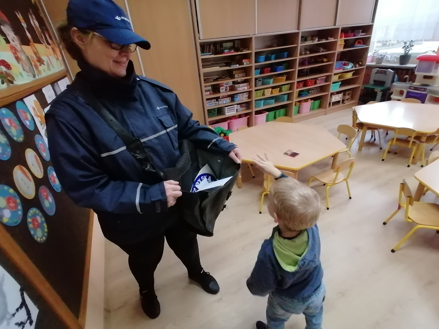 Przedszkolaki w ramach doradztwa zawodowego poznają pracę w urzędzie pocztowym oraz pracę listonosza.