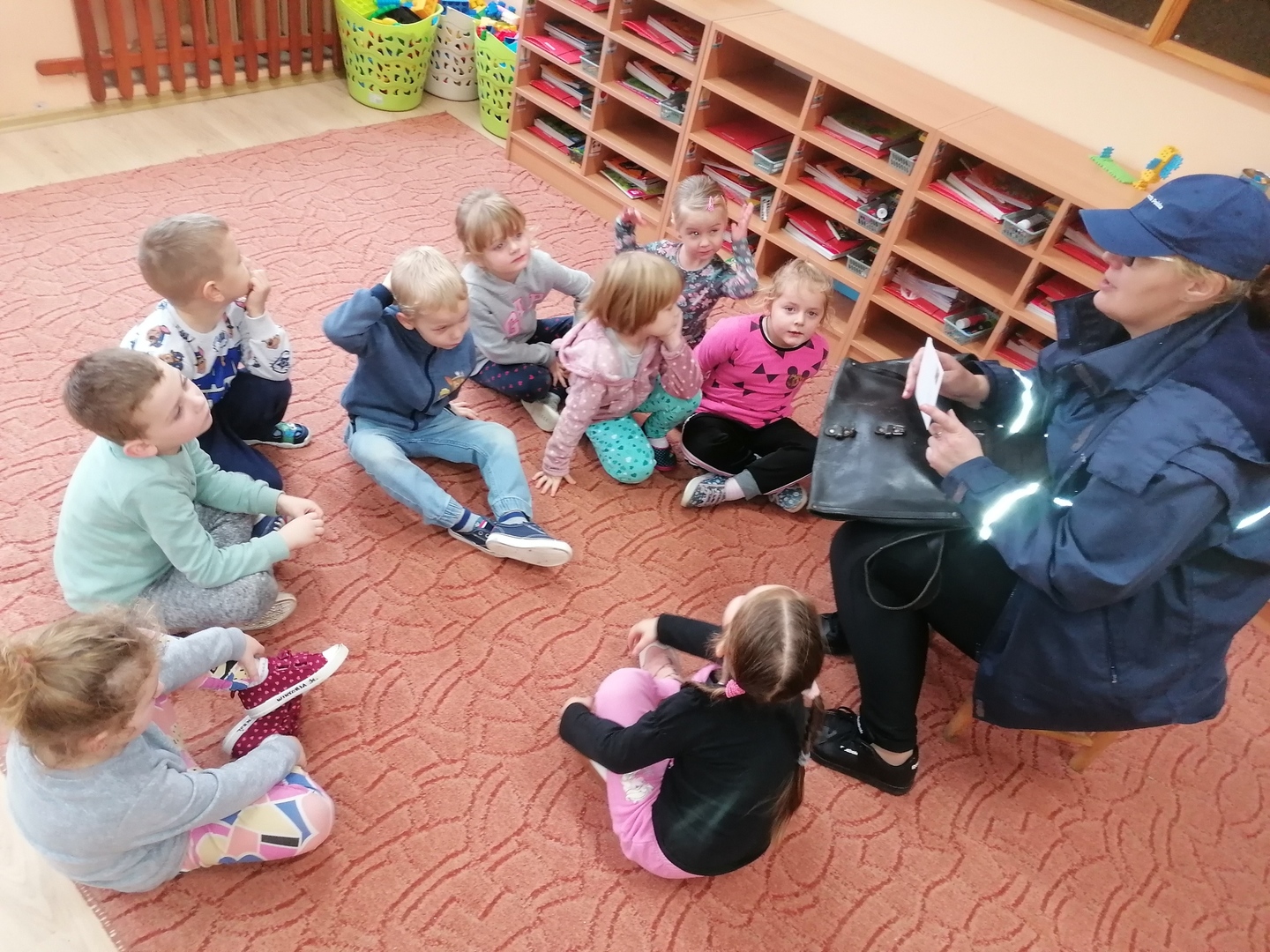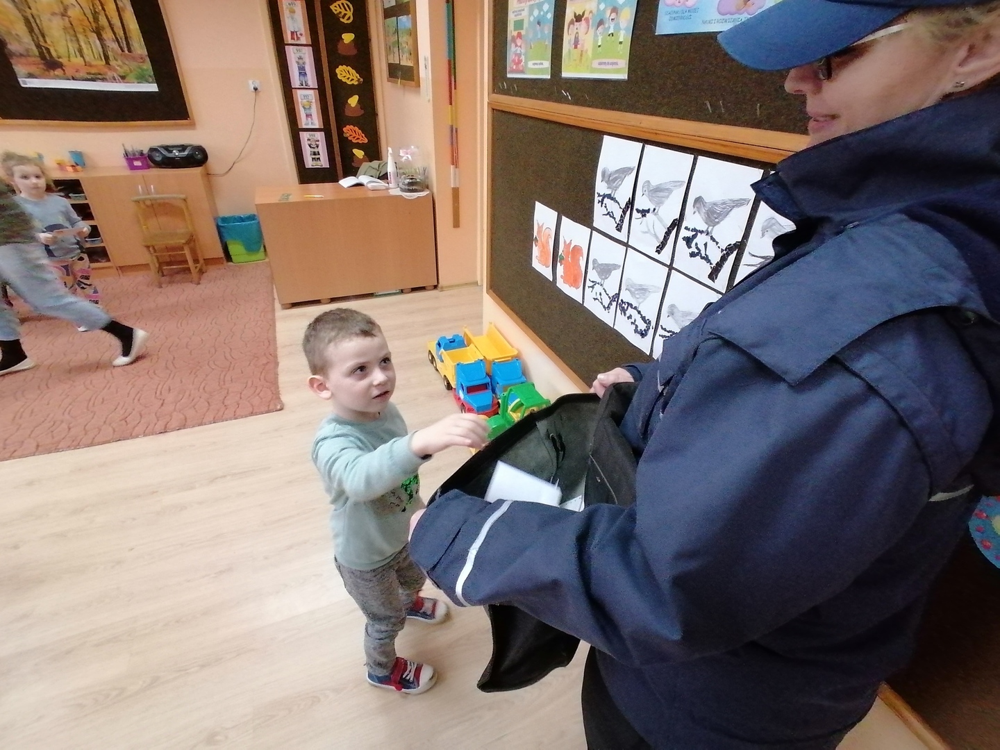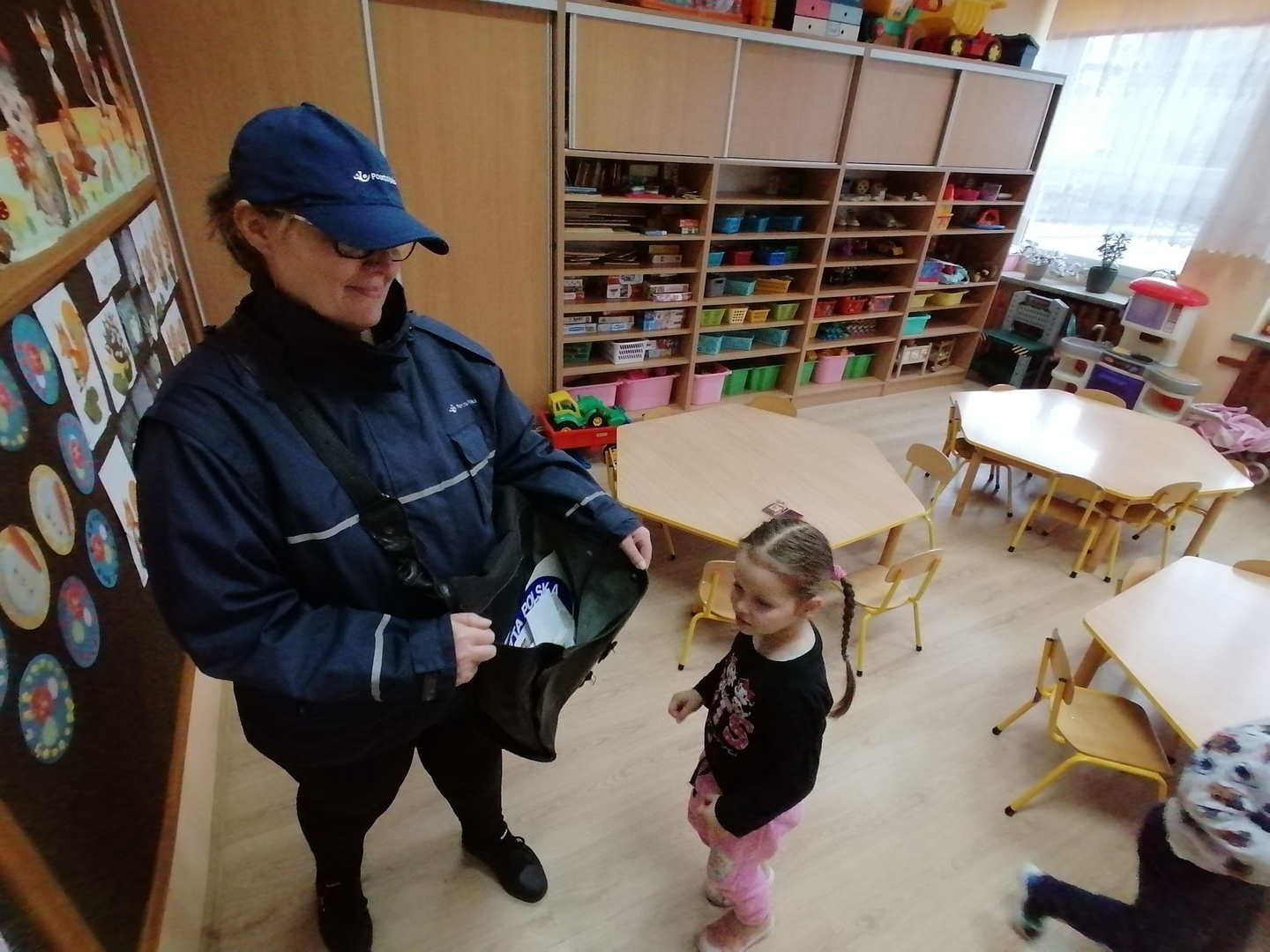 Przedszkolaki w ramach doradztwa zawodowego poznają pracę w urzędzie pocztowym oraz pracę listonosza.