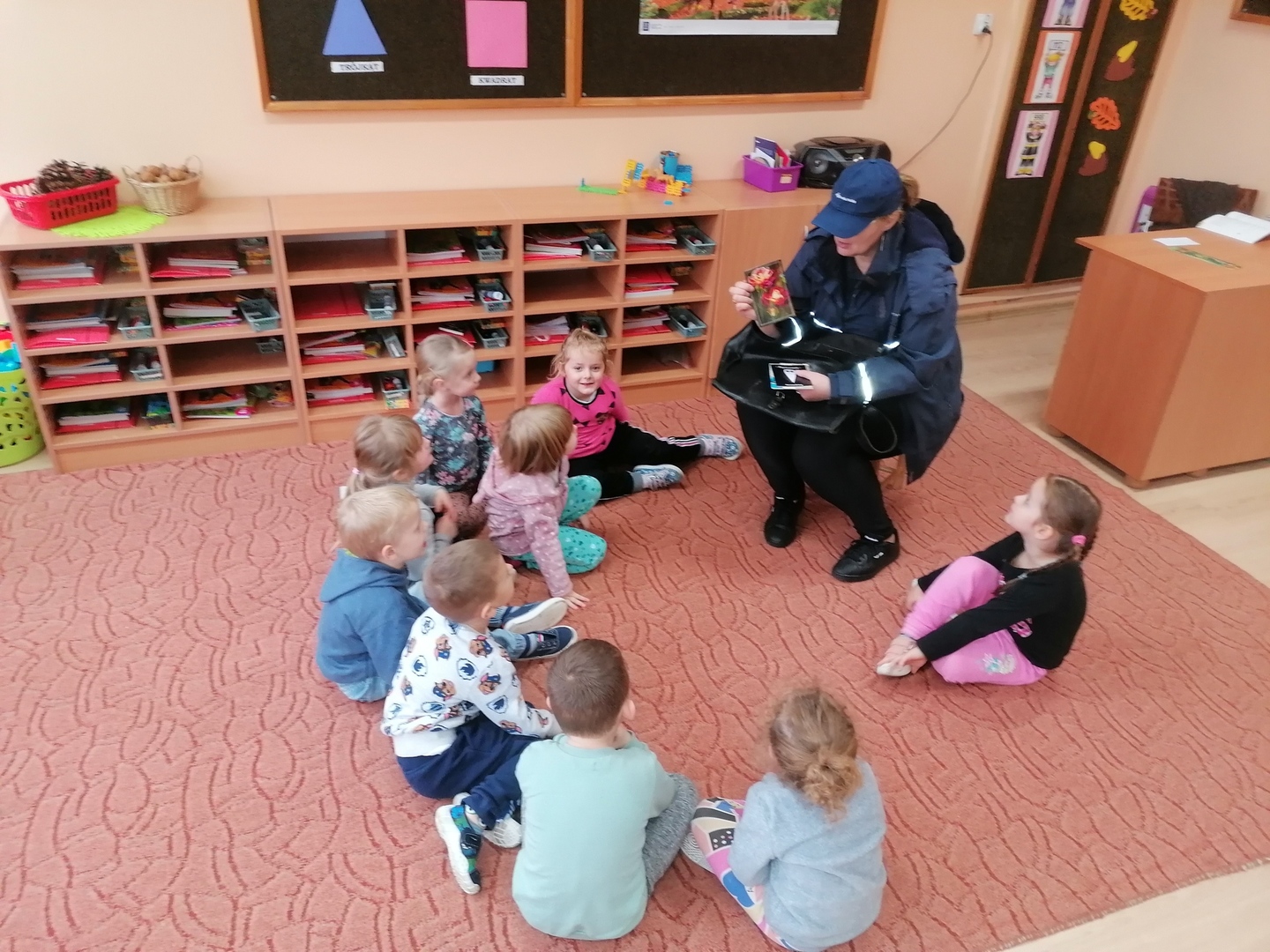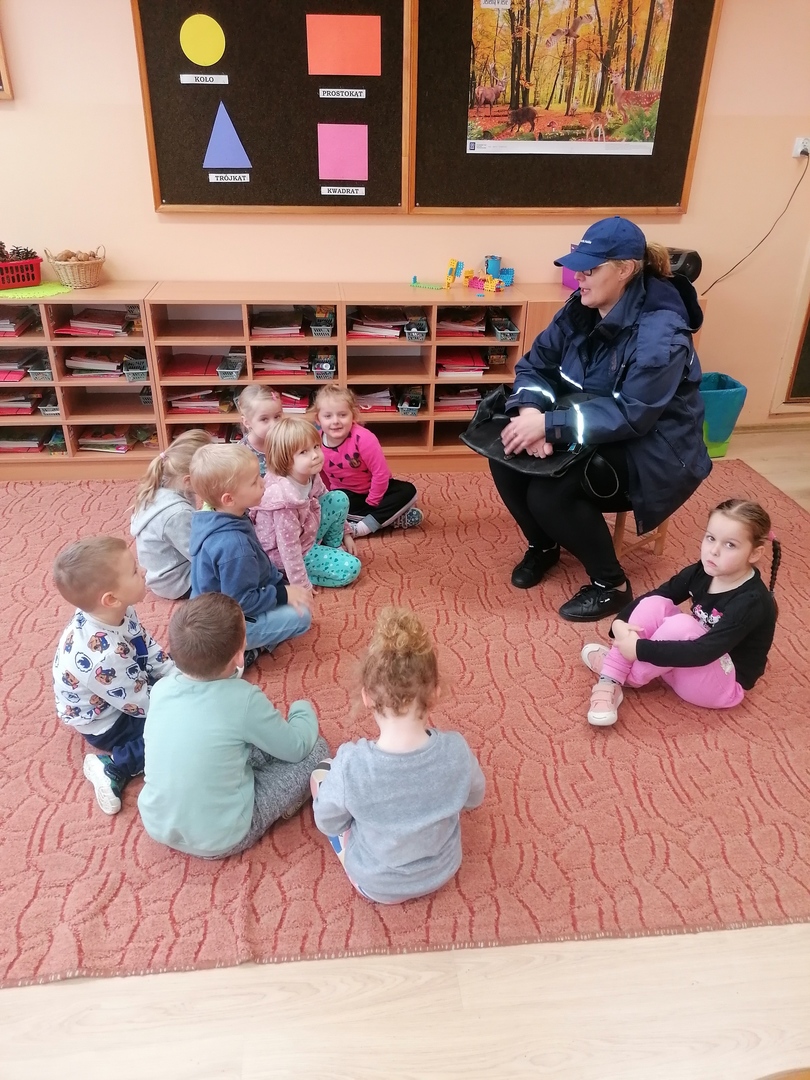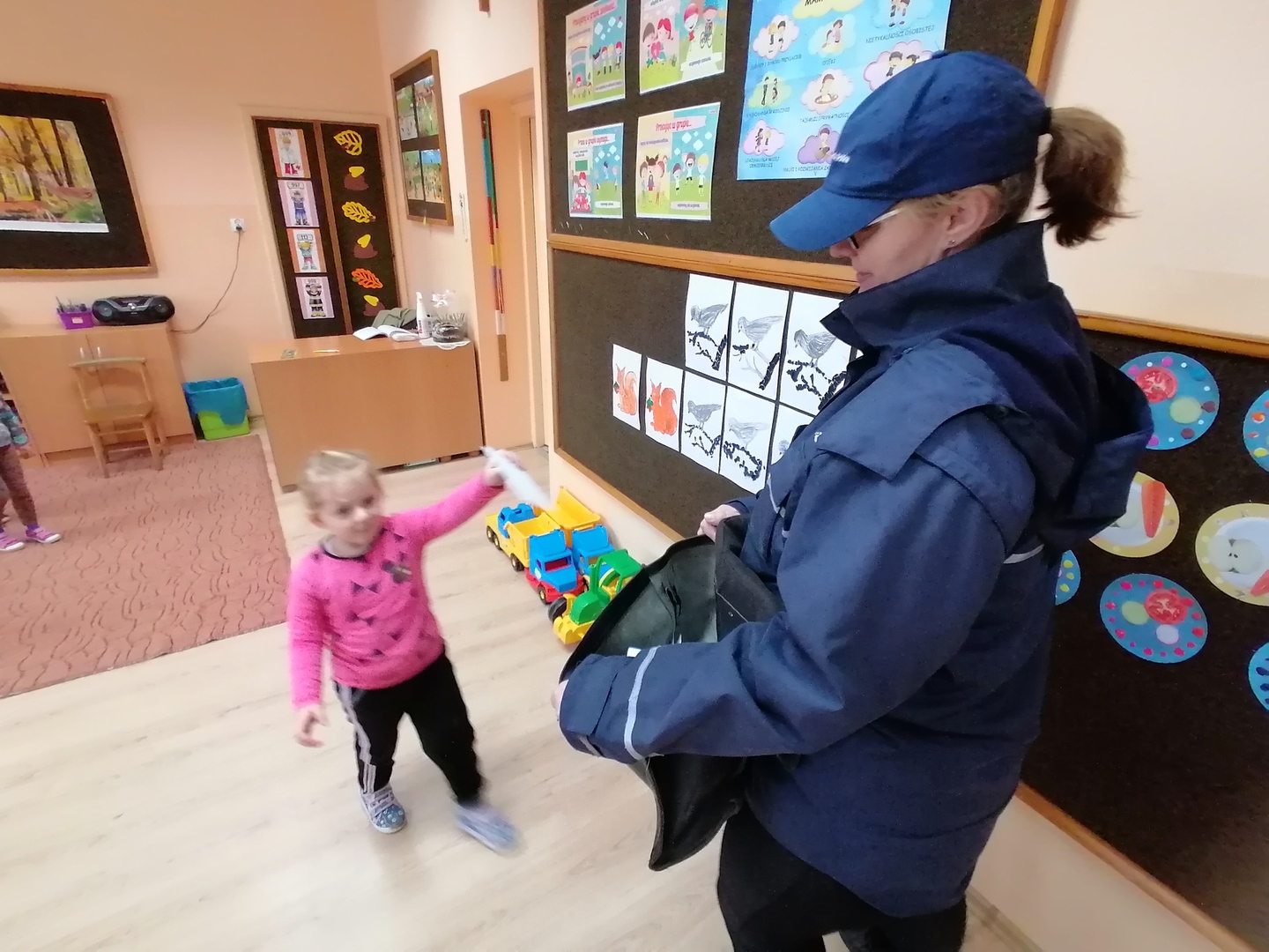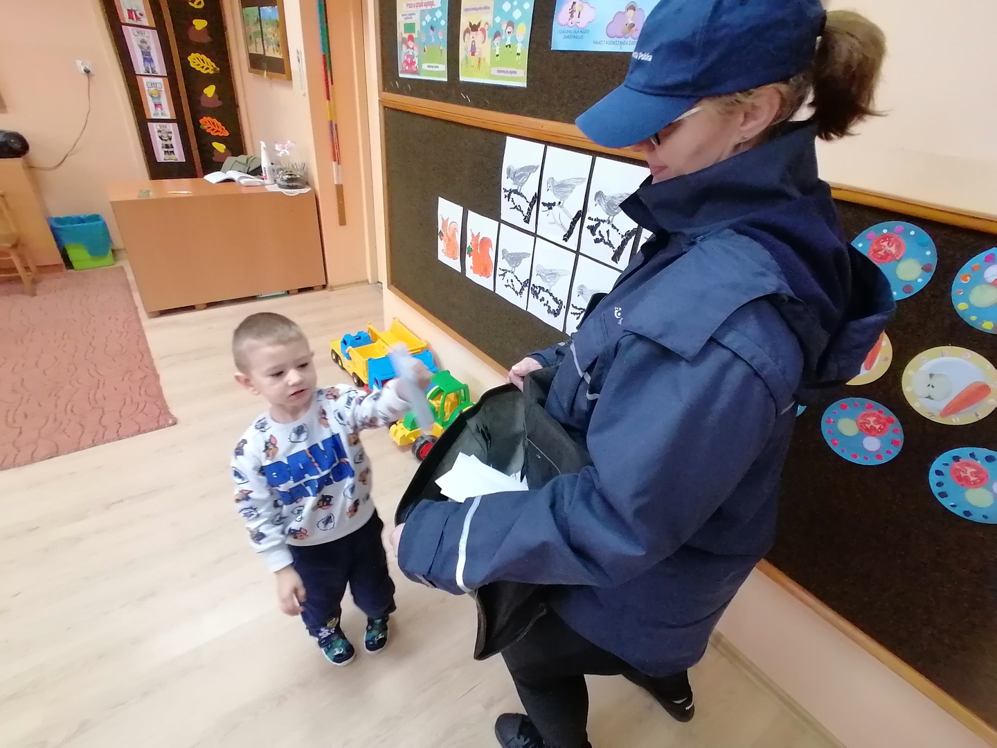 Przedszkolaki w ramach doradztwa zawodowego poznają pracę w urzędzie pocztowym oraz pracę listonosza.