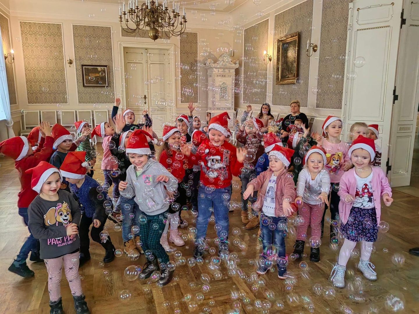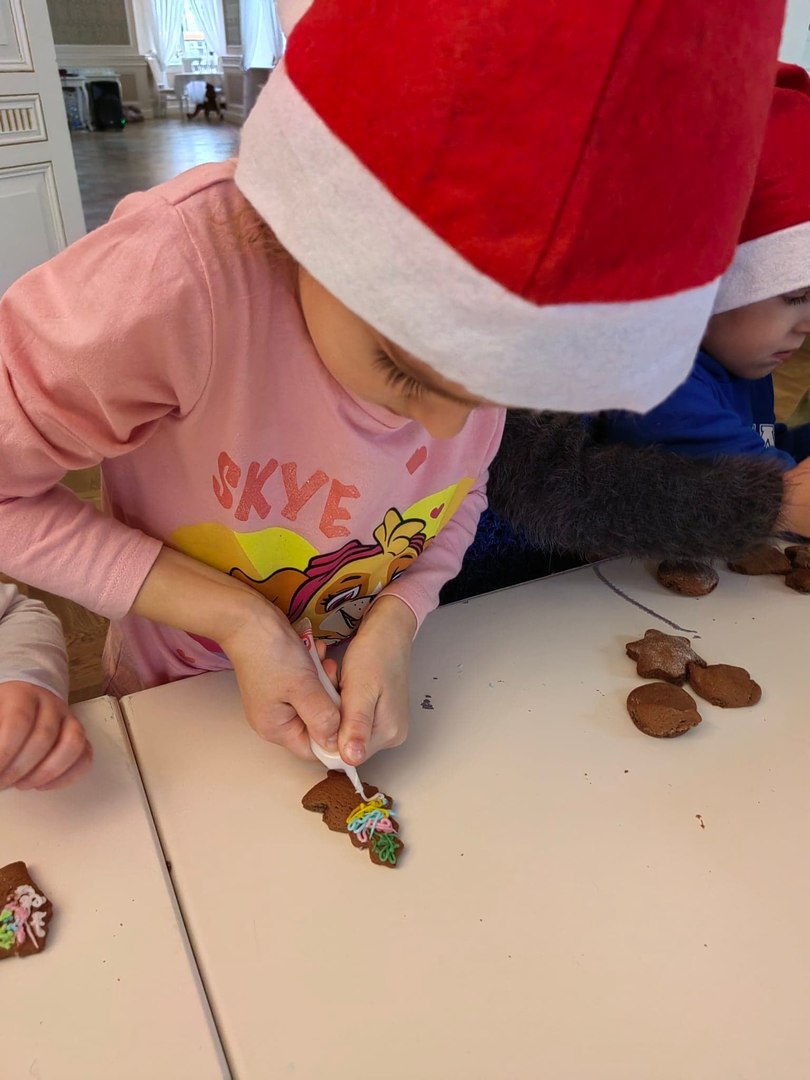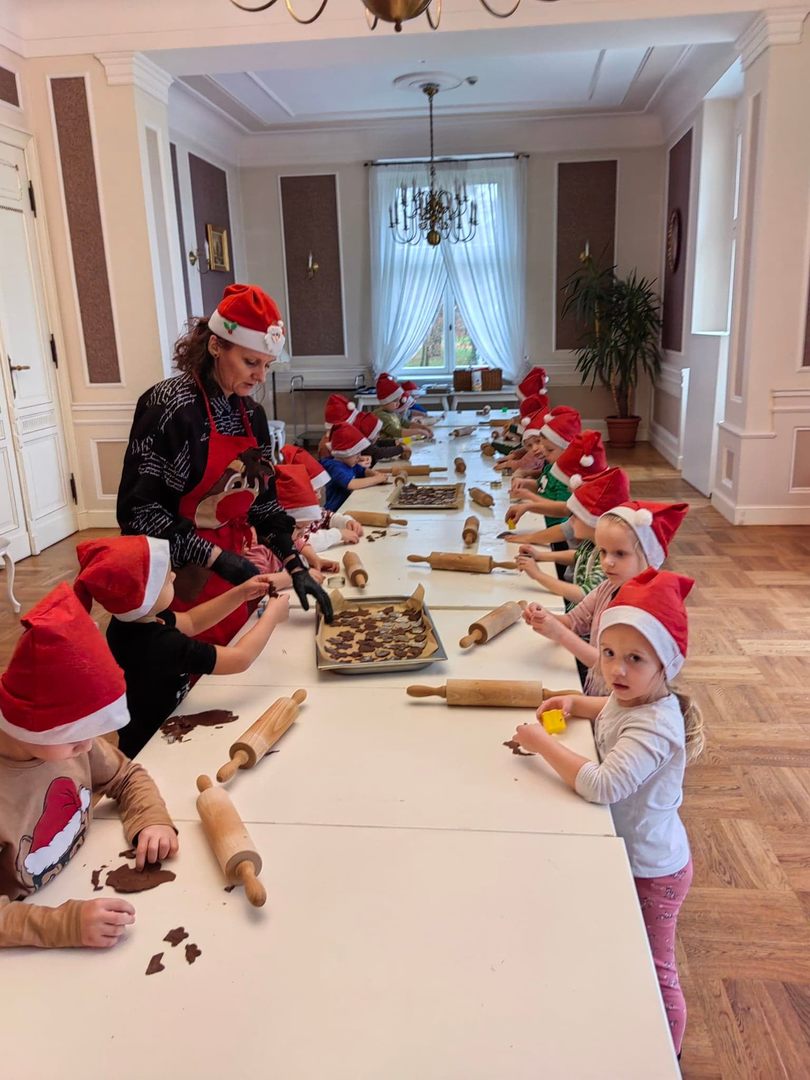Grupa 4-5 latki oraz przedszkolaki z Wrotkowa przygotowują się do świąt Bożego Narodzenia pełną para. Zaczął się miesiąc grudzień, a z nim gorący okres przedświąteczny. Integracyjny wyjazd dzieci do Pałacu w Orli był pełen atrakcji. Czekały na nas zabawy z animatorami, pisanie listu do św. Mikołaja, pieczenie i ozdabianie pierników, a na koniec film od św. Mikołaja. Zajęcia, w których uczestniczyliśmy były bardzo kreatywne i pełne niespodzianek. Dzieci były zachwycone oraz zadowolone- a to najważniejsze