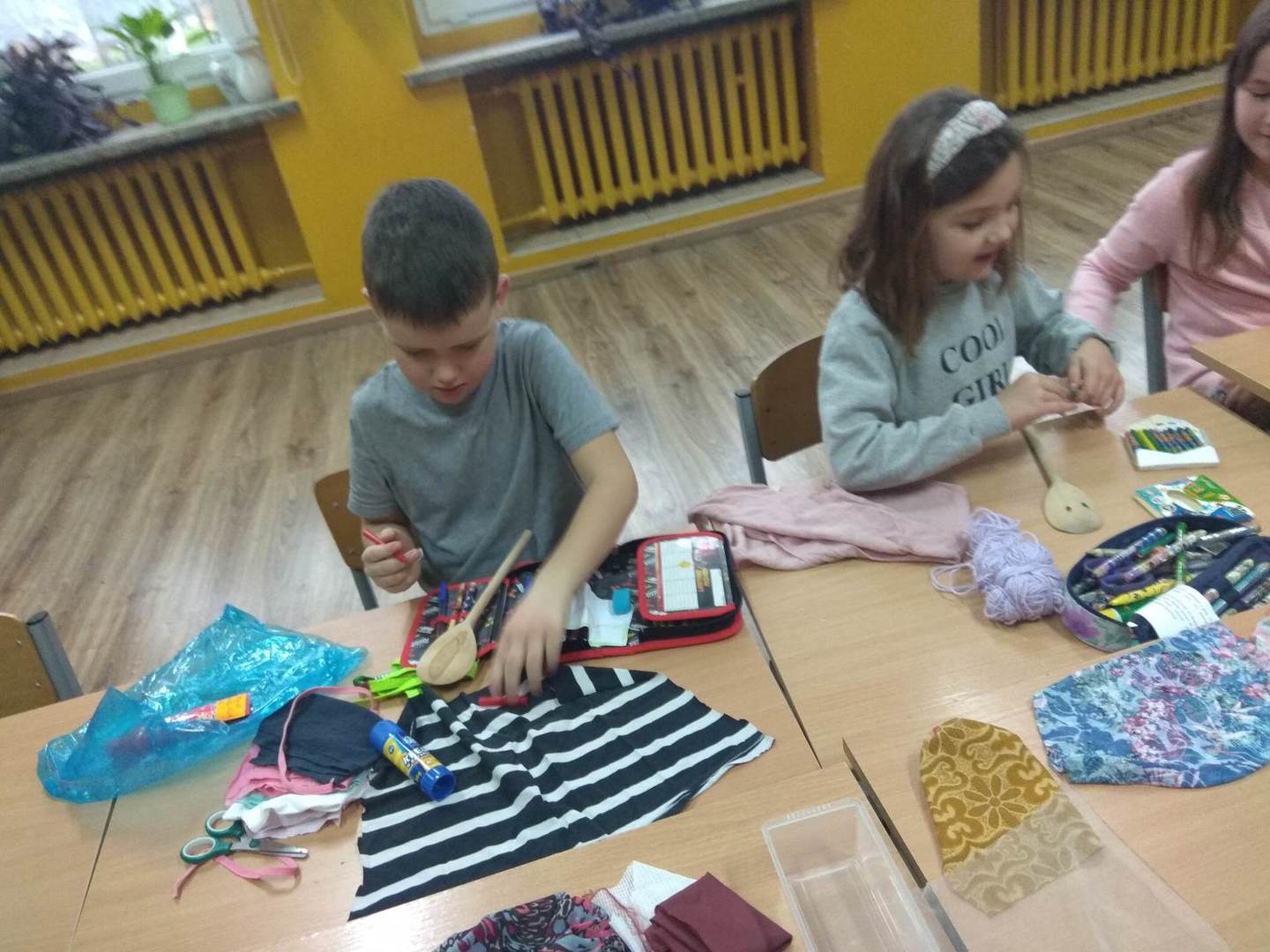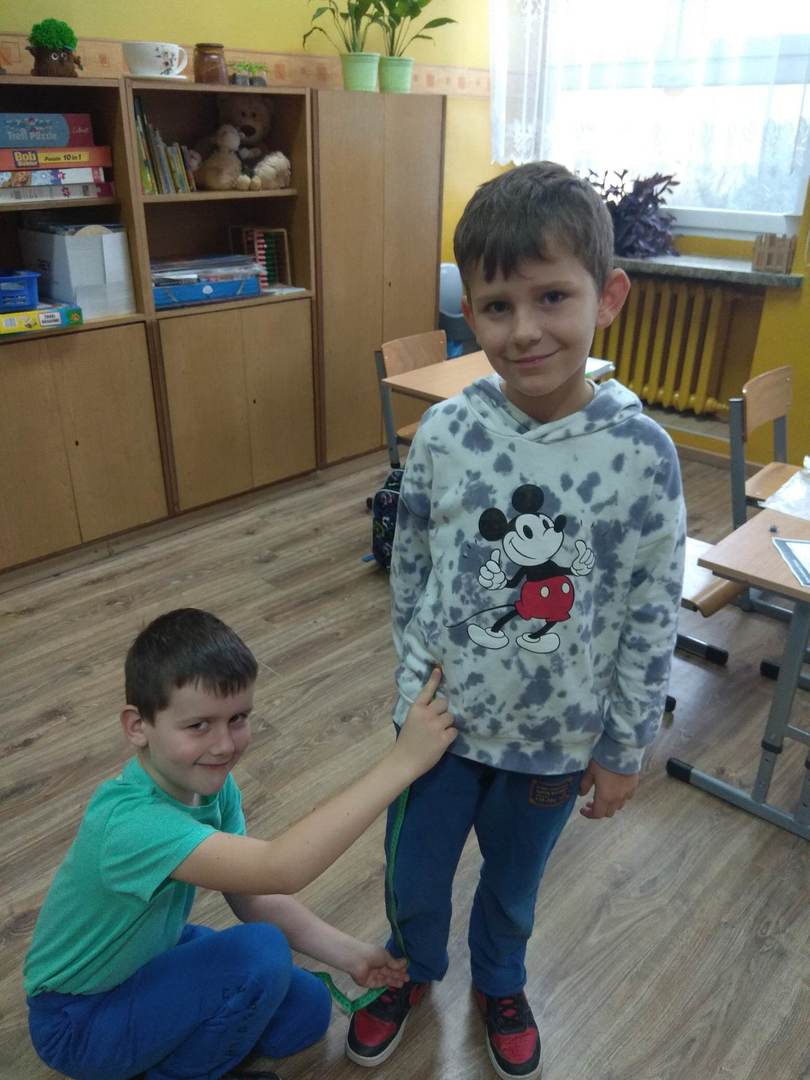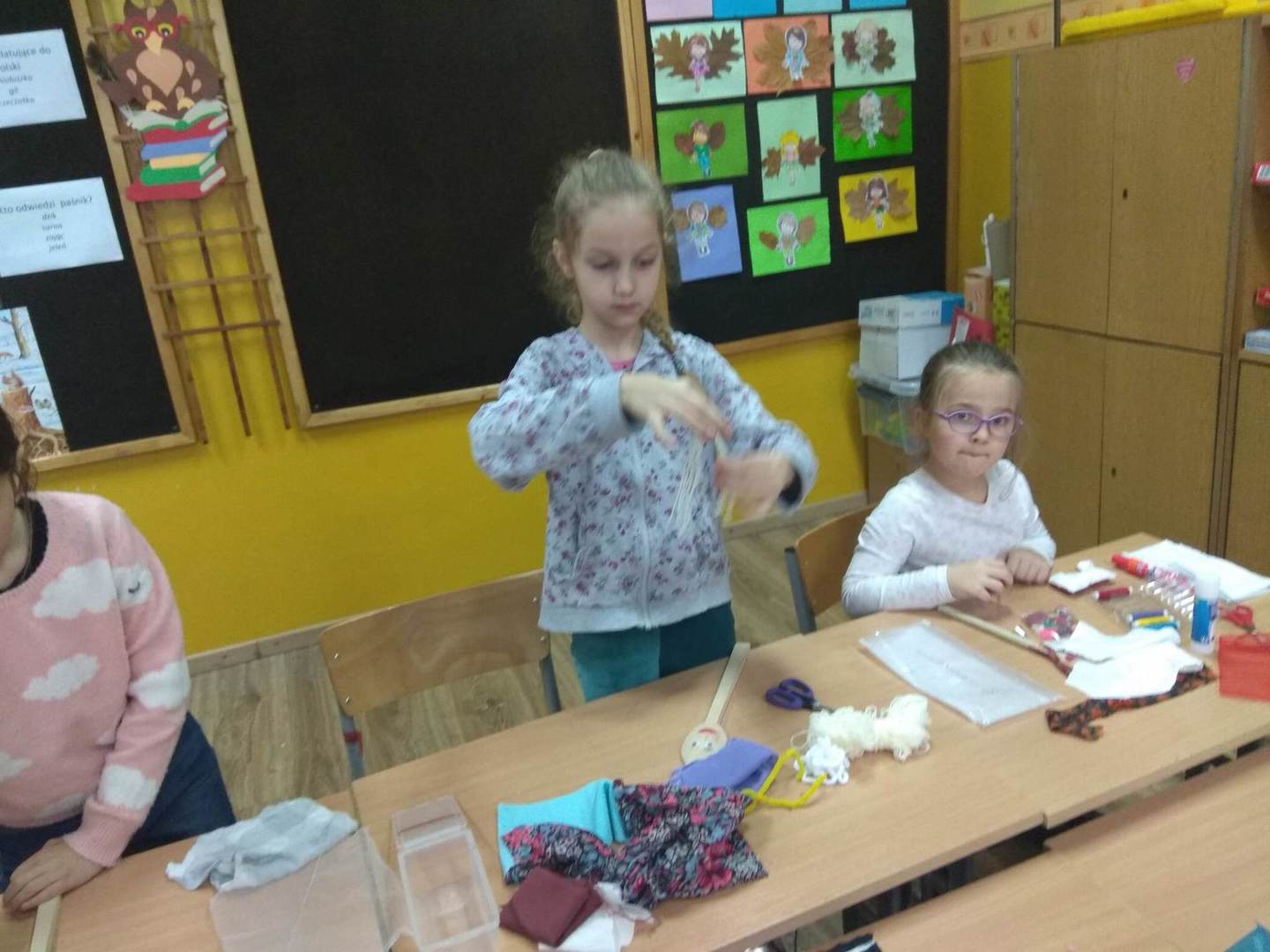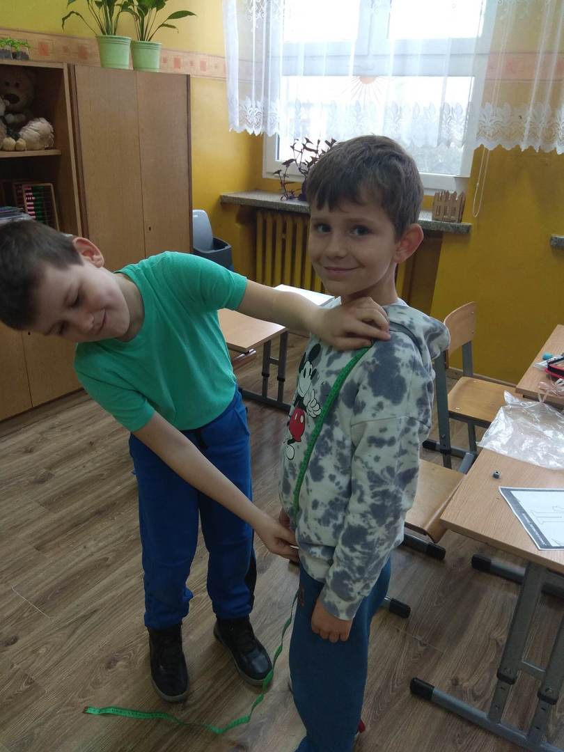 "Matematyka u krawca" to tytuł II modułu projektu "Natalka i Antek w Świecie Wielkiej Matematyki", który realizuje klasa 1. Tym razem zajęcia poza pokazaniem pracy krawca, dały każdemu możliwość dokonania pomiarów ciała kolegów, koleżanek i zaplanowania projektu krawieckiego, co jest nierozerwalnie związane z matematyką. W efekcie nabytych umiejętności powstały piękne i pomysłowe kukiełki, samodzielnie wykonane przez naszych zdolnych uczniów.