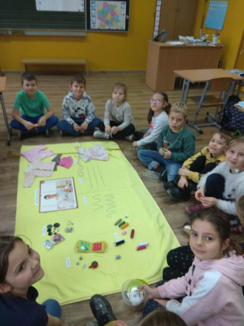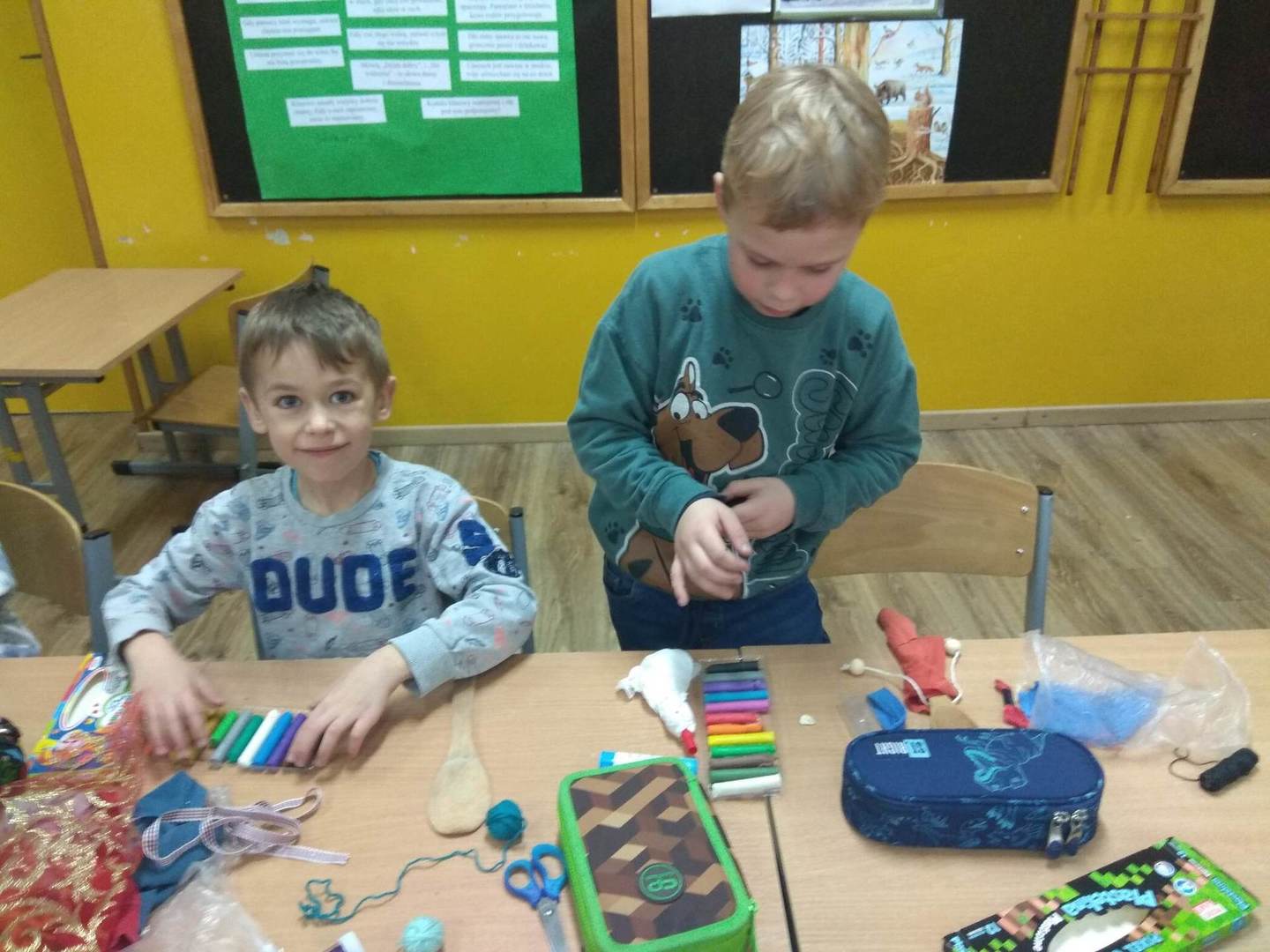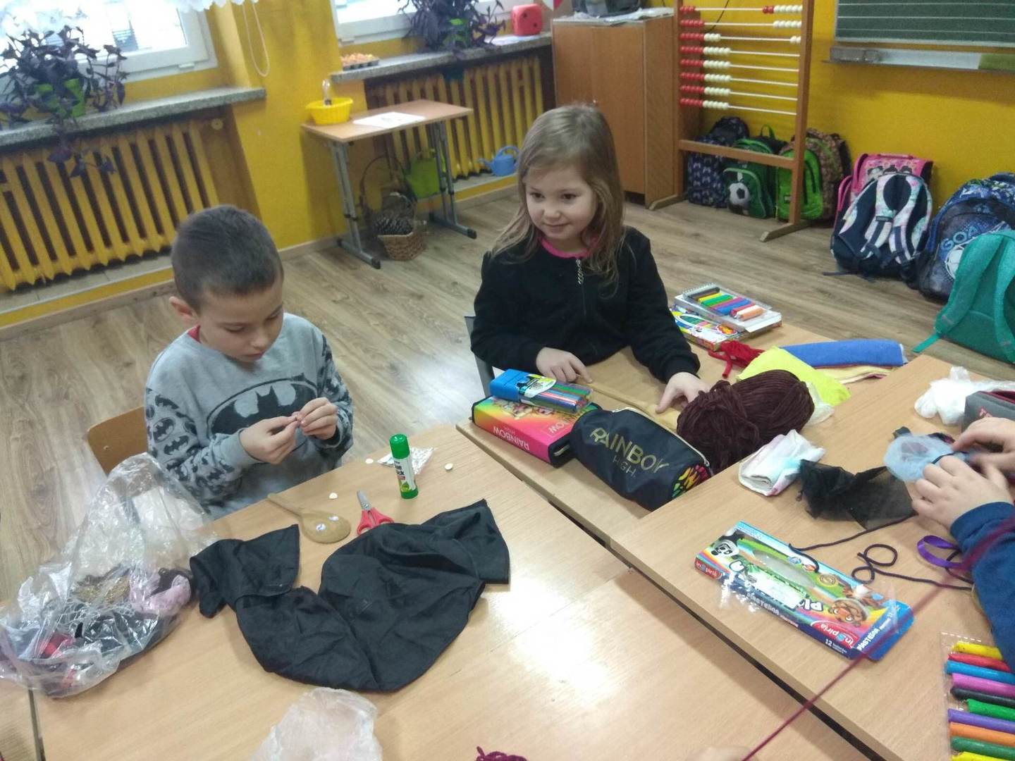 "Matematyka u krawca" to tytuł II modułu projektu "Natalka i Antek w Świecie Wielkiej Matematyki", który realizuje klasa 1. Tym razem zajęcia poza pokazaniem pracy krawca, dały każdemu możliwość dokonania pomiarów ciała kolegów, koleżanek i zaplanowania projektu krawieckiego, co jest nierozerwalnie związane z matematyką. W efekcie nabytych umiejętności powstały piękne i pomysłowe kukiełki, samodzielnie wykonane przez naszych zdolnych uczniów.