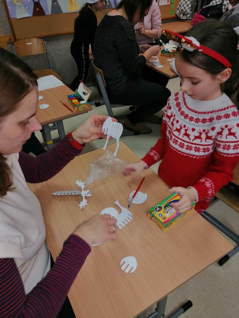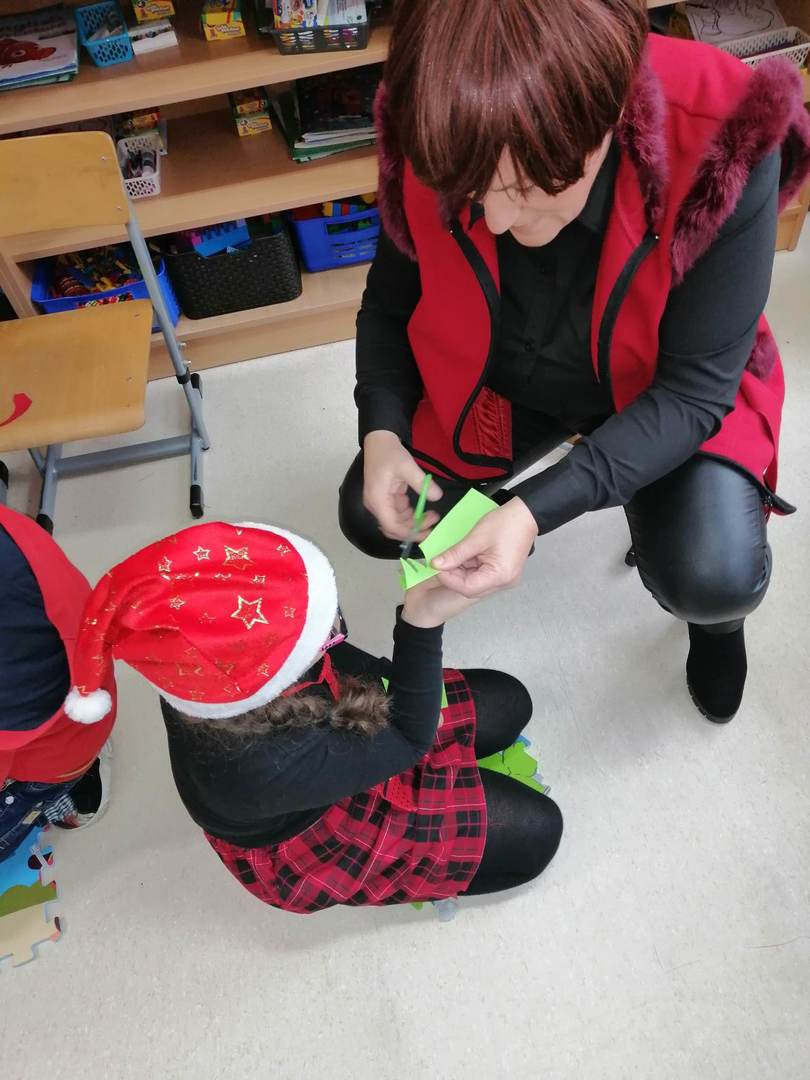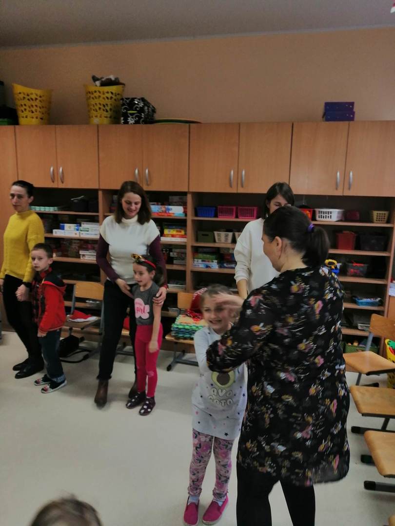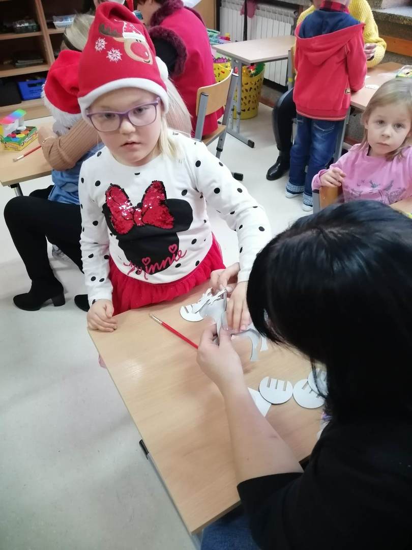 Od rana w przedszkolu zawitał Święty Mikołaj i obdarował dzieci słodkimi upominkami. Sześciolatki pięknie wystąpiły przed świątecznym gościem. Troszkę później w tym oddziale odbyło się spotkanie mikołajkowe, na które zostały zaproszone mamy. Podczas zajęć były tańce do znanych kolęd i pastorałek popularnych w naszym rejonie. Na zakończenie wspólnie wykonano przestrzennego renifera, który przygotowuje się na wigilijny wieczór