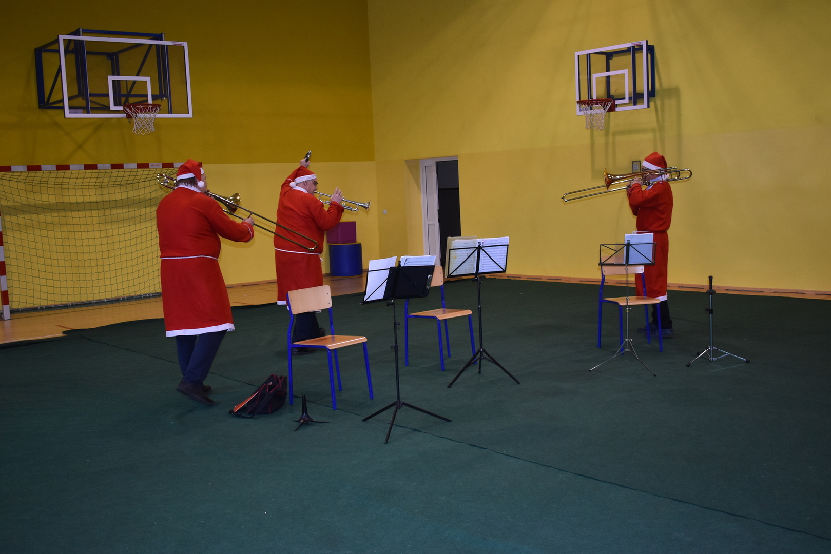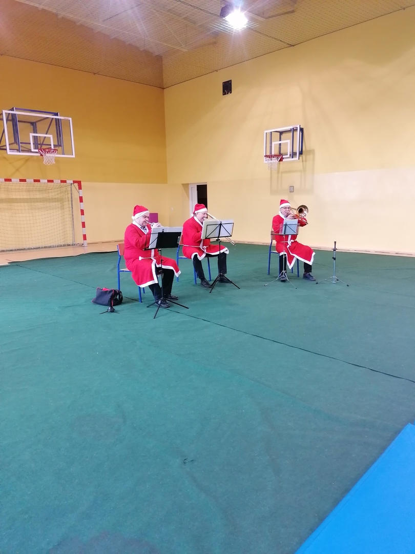 9 grudnia 2022 r. w naszej szkole odbył się mikołajkowo - świąteczny koncert orkiestry dętej. Trio muzyków przedstawiło nam świąteczne utwory muzyczne pochodzące z różnych krajów oraz ich krótką historię.