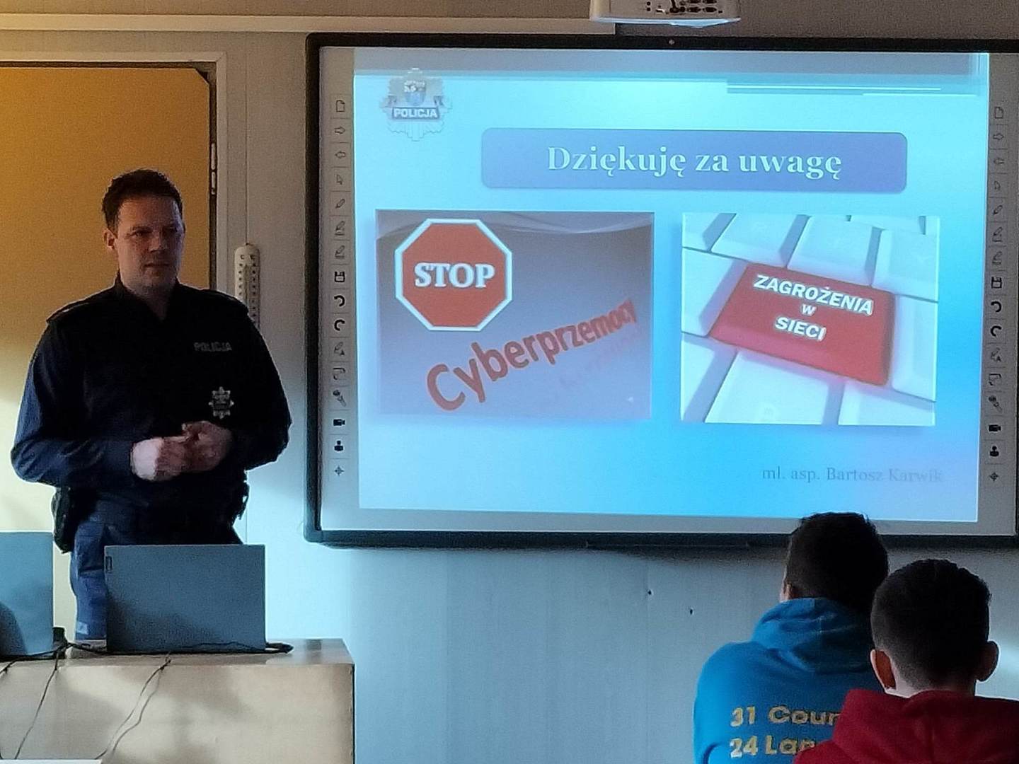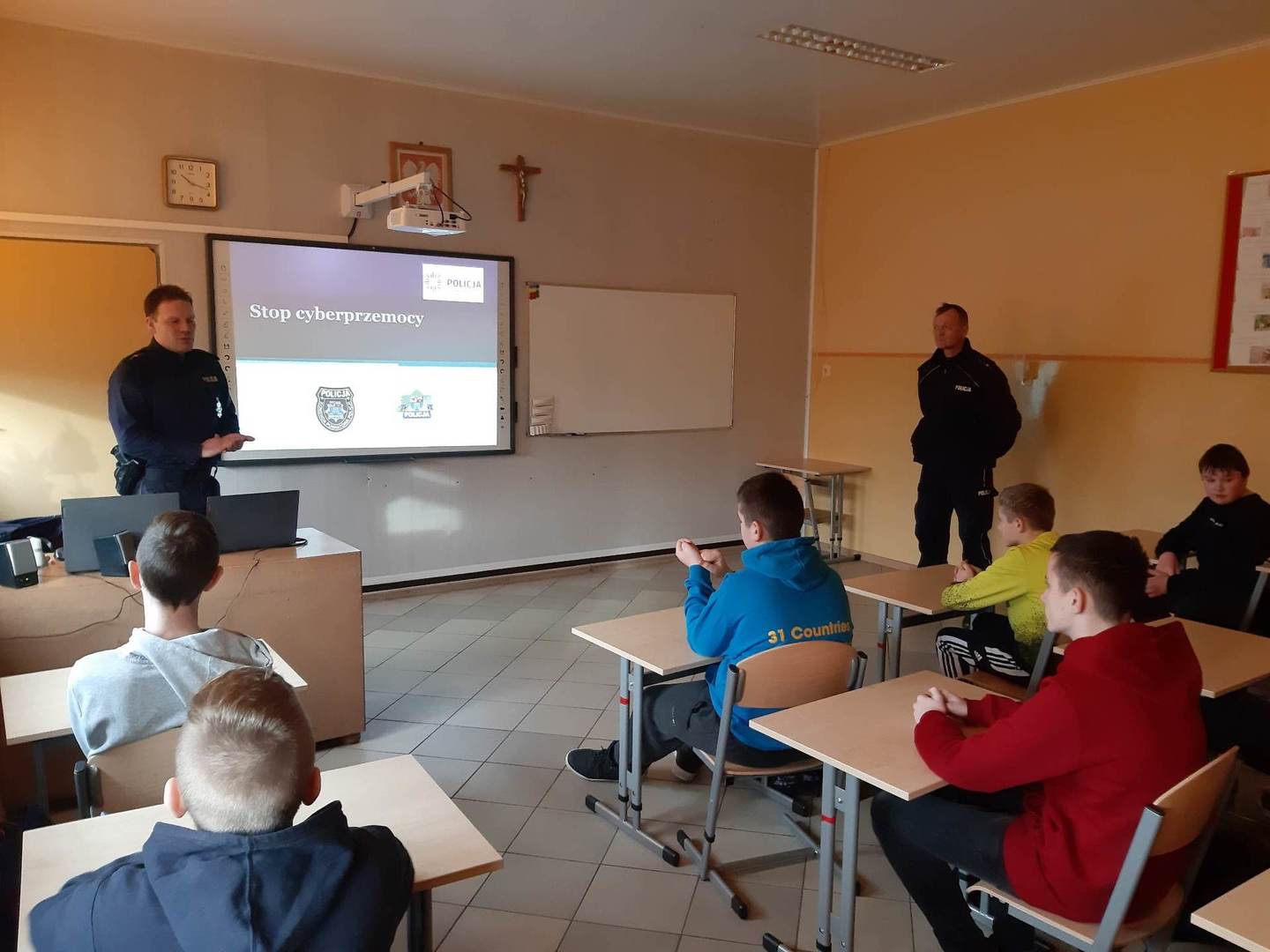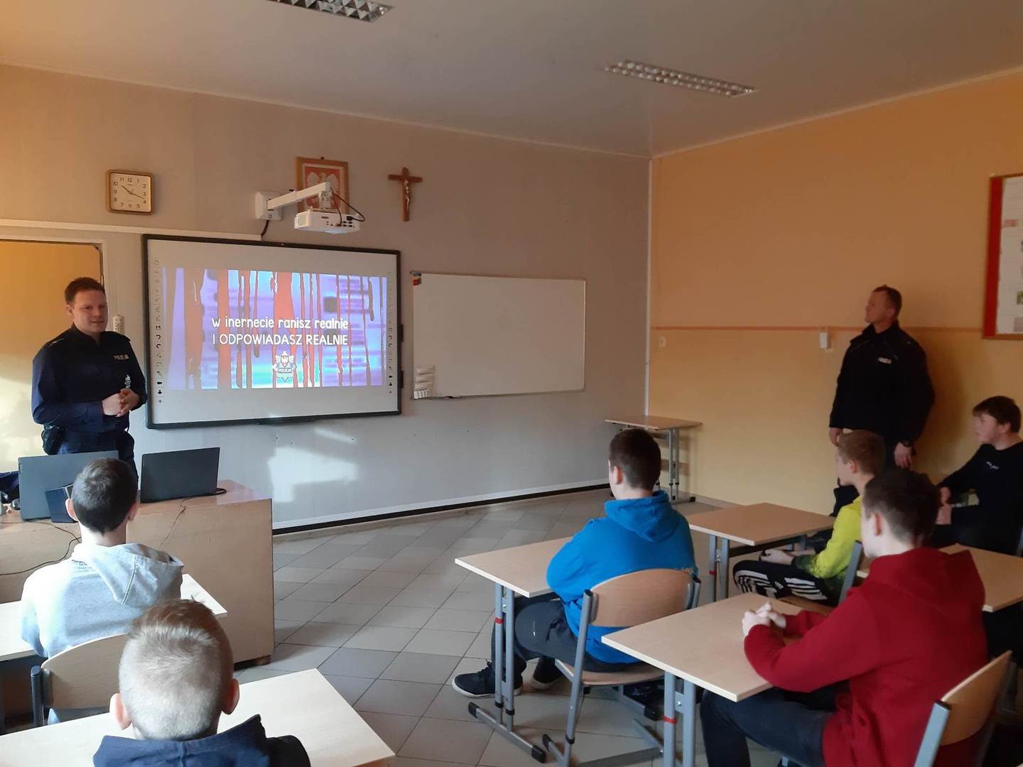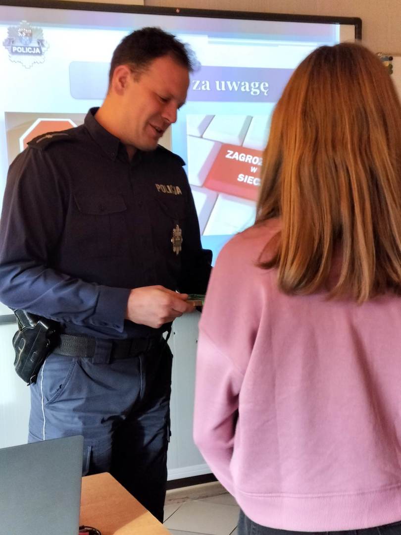 Dnia 04 stycznia w naszej szkole gościliśmy przedstawicieli Policji: Pana dzielnicowego mł.asp. Łukasza Stanisławskiego oraz Pana mł.asp.Bartosza Karwika. Tematem spotkania była przemoc, cyberprzemoc oraz odpowiedzialność prawna nieletnich. Podczas zajęć poruszono wiele ważnych tematów związanych z zagrożeniami, na które mogą być narażeni młodzi ludzie. Uczniowie wykazali duże zainteresowanie poruszonymi kwestiami, ponieważ świadomość odpowiedzialności za niewłaściwe postępowanie może ich ustrzec przed przykrymi konsekwencjami.