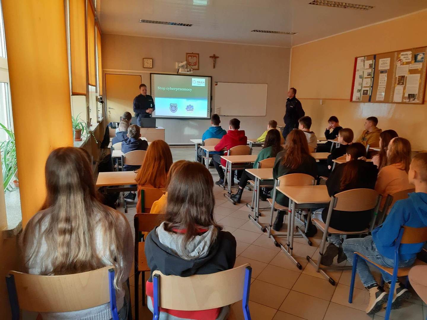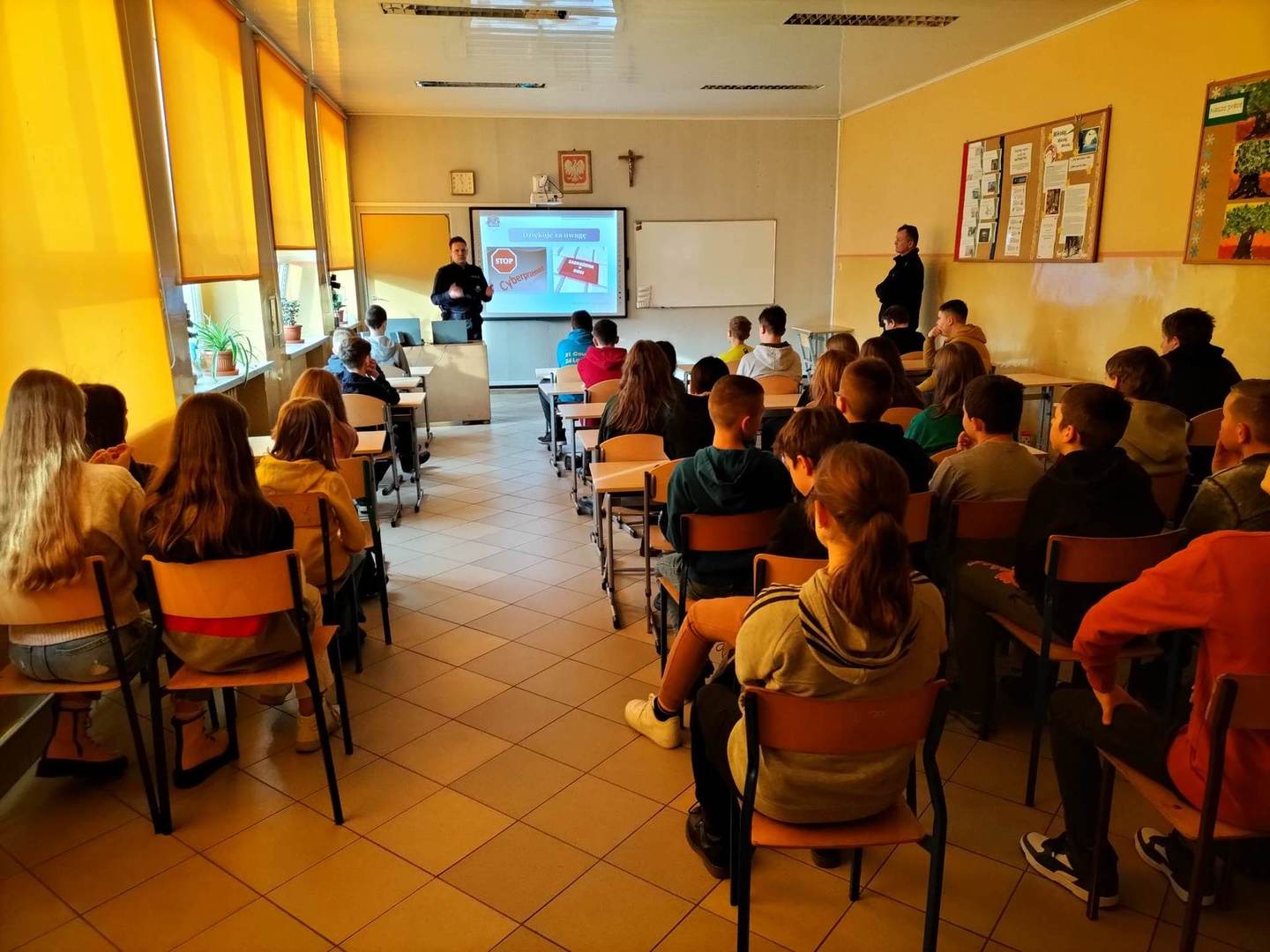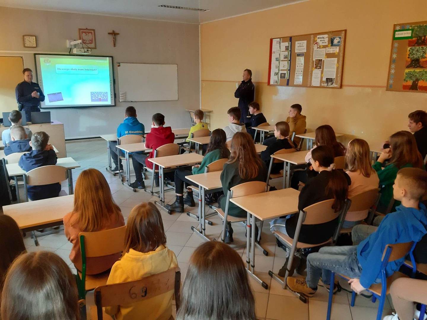 Dnia 04 stycznia w naszej szkole gościliśmy przedstawicieli Policji: Pana dzielnicowego mł.asp. Łukasza Stanisławskiego oraz Pana mł.asp.Bartosza Karwika. Tematem spotkania była przemoc, cyberprzemoc oraz odpowiedzialność prawna nieletnich. Podczas zajęć poruszono wiele ważnych tematów związanych z zagrożeniami, na które mogą być narażeni młodzi ludzie. Uczniowie wykazali duże zainteresowanie poruszonymi kwestiami, ponieważ świadomość odpowiedzialności za niewłaściwe postępowanie może ich ustrzec przed przykrymi konsekwencjami.