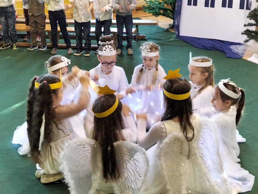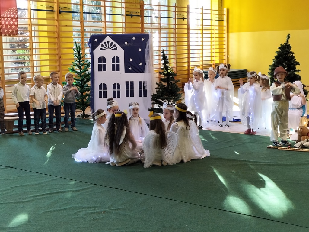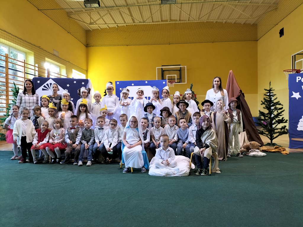 5 stycznia br., w okresie jeszcze tak magicznym i świątecznym przedszkolaki z Mokronosa wystąpiły w przedstawieniu jasełkowym. Przepięknie przebrani, w zimowej i bożonarodzeniowej aranżacji, przedstawili wspaniałą inscenizację Narodzenia Pana Jezusa w Betlejem. Cała historia oprawiona była kolędami, wierszami oraz tańcami. Dzieci z dużym zaangażowaniem odgrywały swoje role, aby jak najlepiej wypaść przed publicznością - rodzicami i dyrekcją. Przypomniały, że Święta Bożego Narodzenia są najbardziej rodzinnymi i ciepłymi świętami, pozwalającymi poczuć serdeczność i miłość wszystkich wokół. W tym magicznym czasie pamiętamy, także o tych których nie ma już przy świątecznym stole. Występ wywołał zachwyt publiczności, mnóstwo wzruszeń i radości. Na zakończenie panie wychowawczynie oraz pani dyrektor złożyły rodzicom najlepsze życzenia na Nowy Rok 2023.