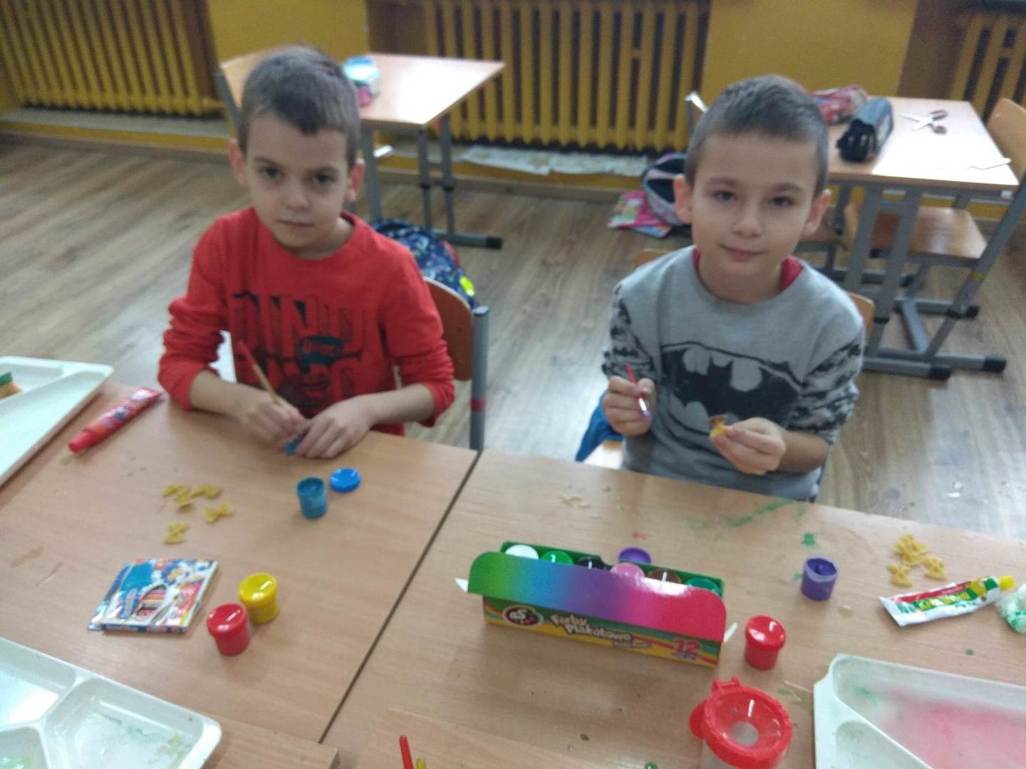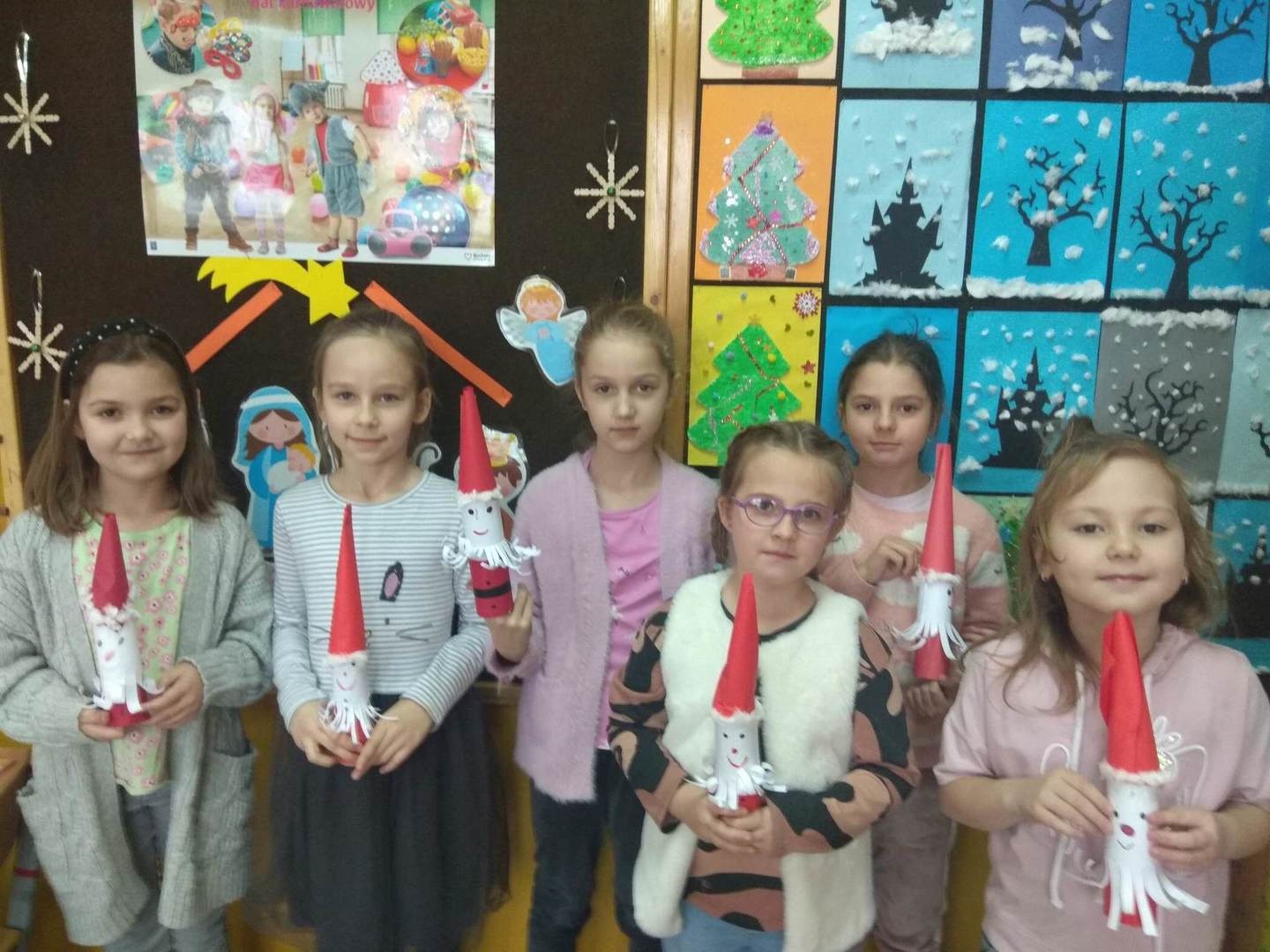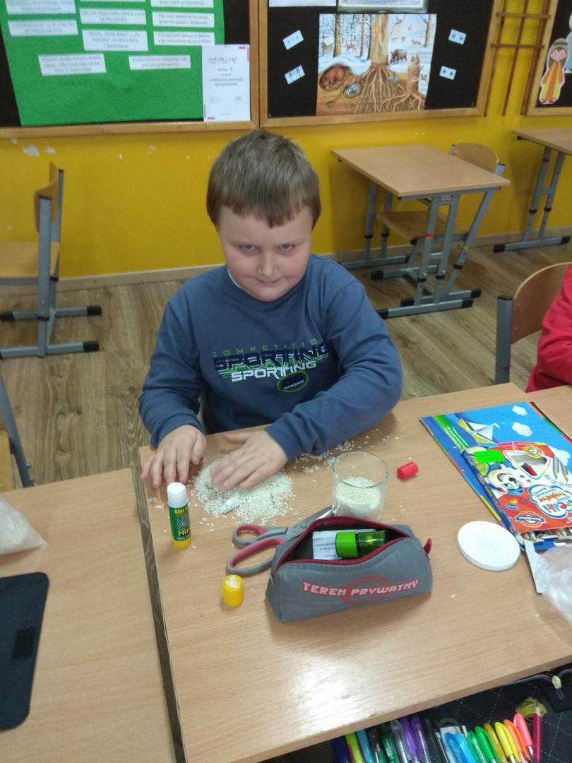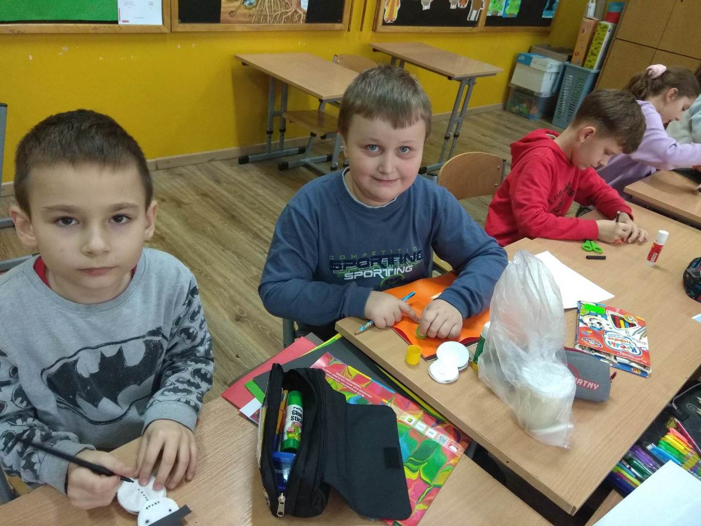W grudniu klasa I SP Mokronos kontynuowała przygodę z projektem GRAMY ZMYSŁAMI. Podczas sensorycznej plastyki uczniowie wykonali mnóstwo ozdób bożonarodzeniowych. Powstały piękne gwiazdy wyklejone ryżem, mikołaje z rolek, renifery z płyty CD, choinki z kartonu ozdobione makronem, choinki tapowane farbą i zdobione brokatem oraz puszyste bałwanki. Niecierpliwie czekamy na kolejne wyzwanie :)