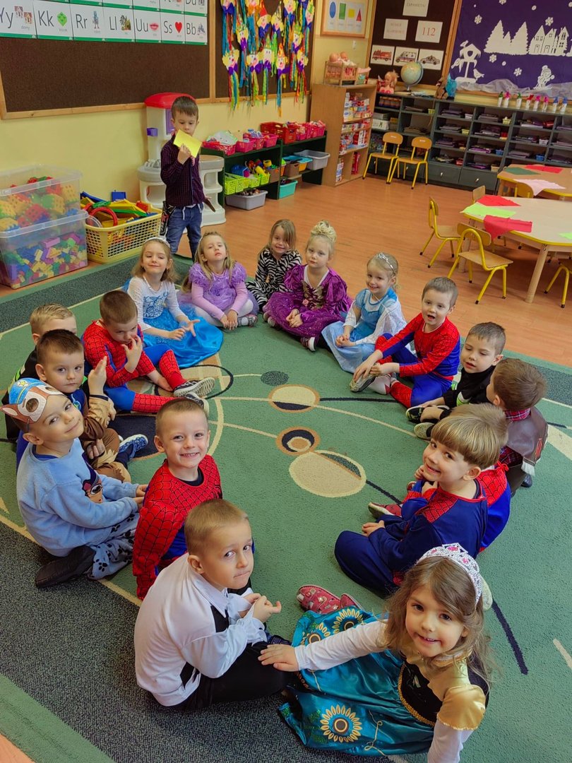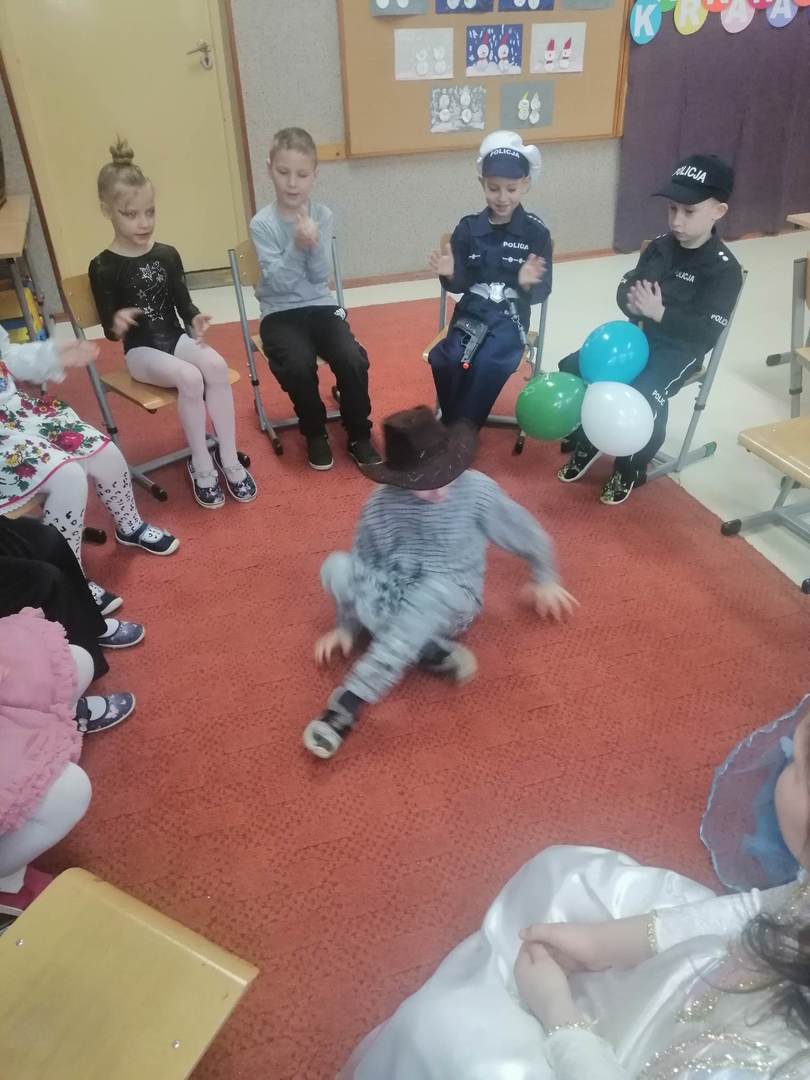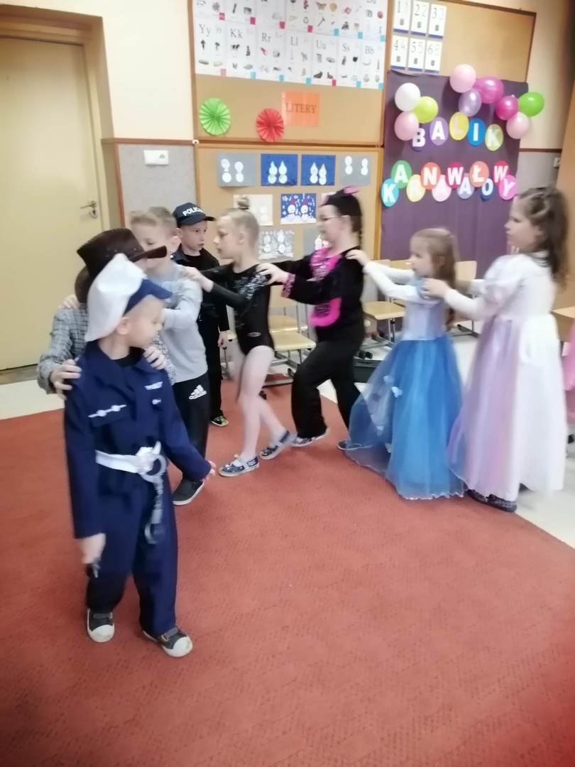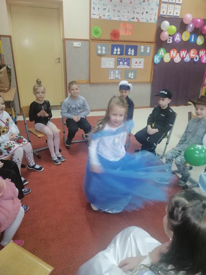 Kolorowe stroje, bajeczny wystrój i skoczna muzyka– w takiej atmosferze spędziły przedszkolaki ostatnie dni przed zimowymi feriami. Dzieci przebrane były za bohaterów znanych bajek. W salach przedszkolnych można było spotkać wróżki, księżniczki, piratów, kowboja, strażaków, policjantów, Spider-Mana, nie sposób zliczyć i wymienić tych wszystkich postaci. Nieobyło się bez tańców, śpiewów, konkursów oraz świetnej zabawy, która przyniosła wiele radości naszym wychowankom, a to było głównym celem tego balu.