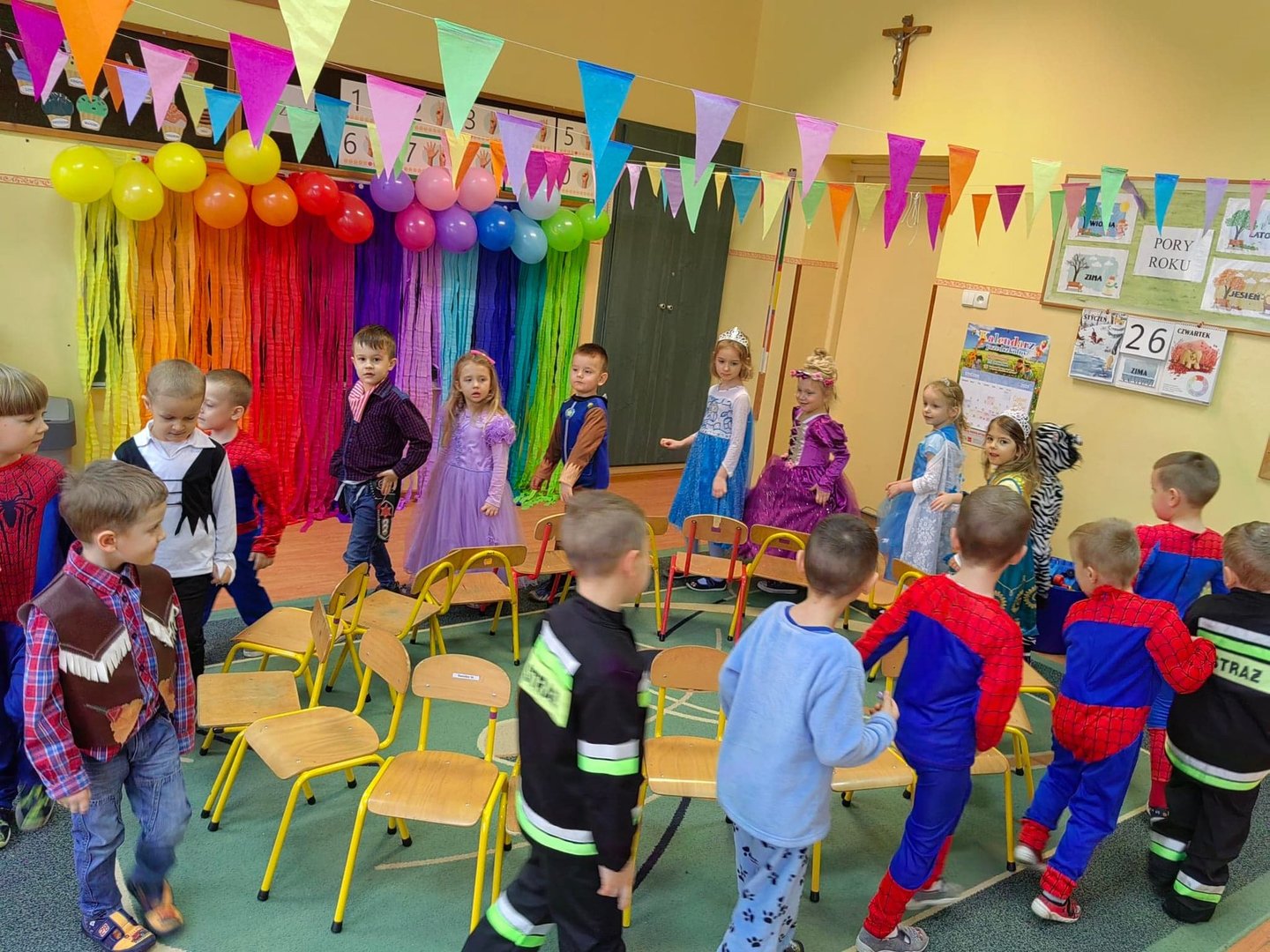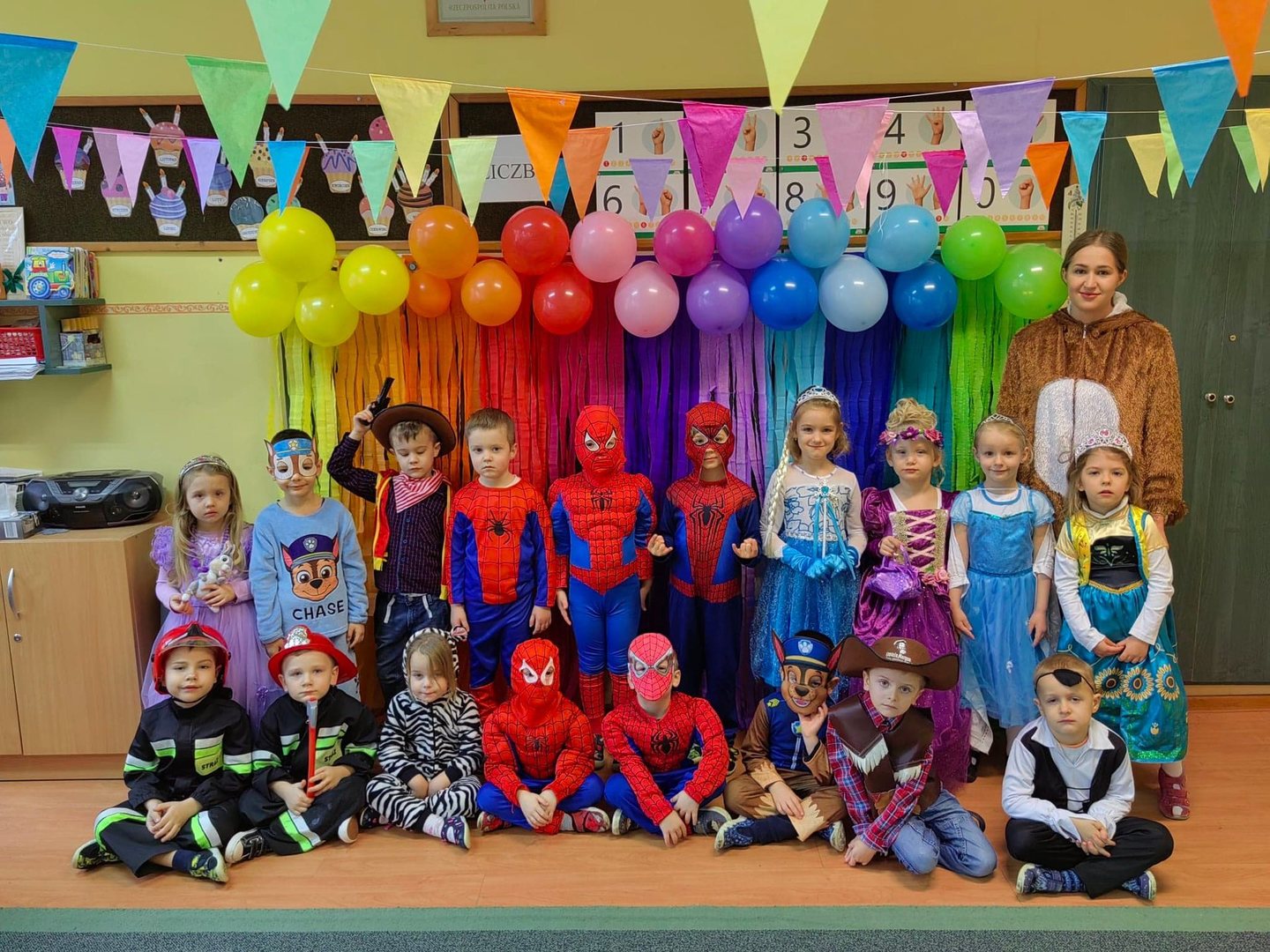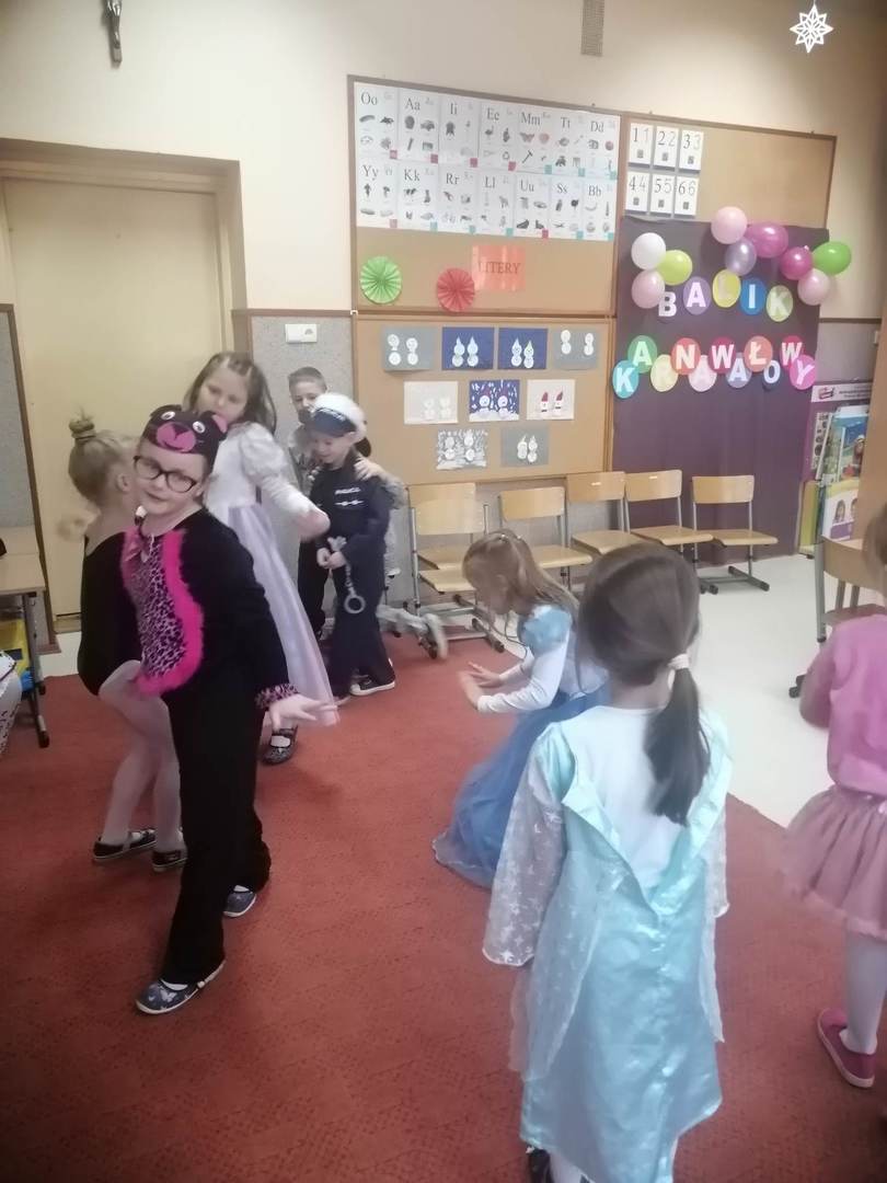 Kolorowe stroje, bajeczny wystrój i skoczna muzyka– w takiej atmosferze spędziły przedszkolaki ostatnie dni przed zimowymi feriami. Dzieci przebrane były za bohaterów znanych bajek. W salach przedszkolnych można było spotkać wróżki, księżniczki, piratów, kowboja, strażaków, policjantów, Spider-Mana, nie sposób zliczyć i wymienić tych wszystkich postaci. Nieobyło się bez tańców, śpiewów, konkursów oraz świetnej zabawy, która przyniosła wiele radości naszym wychowankom, a to było głównym celem tego balu.