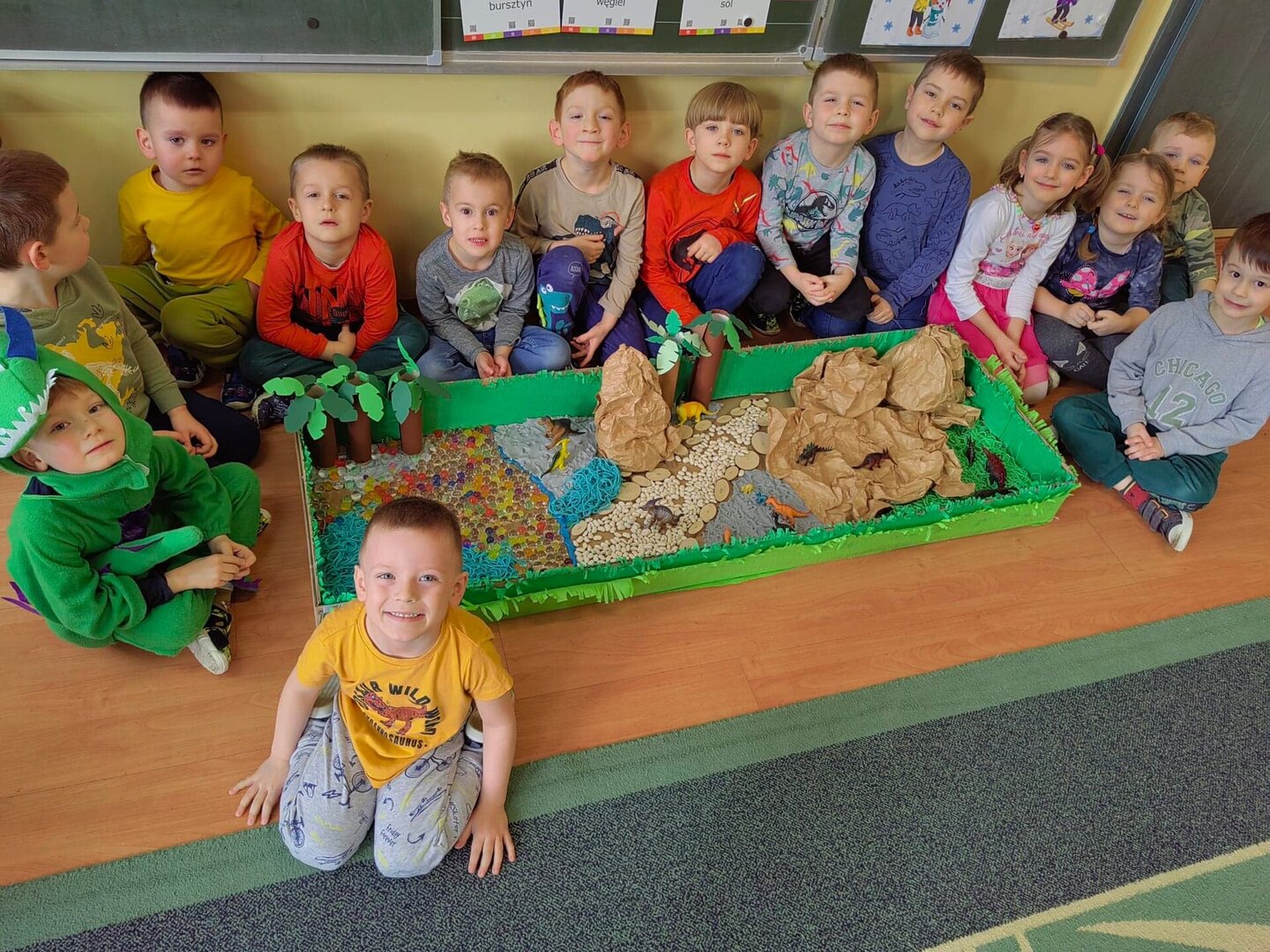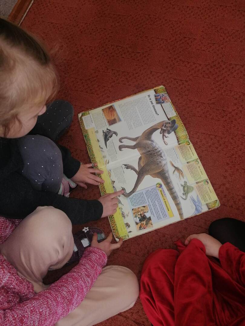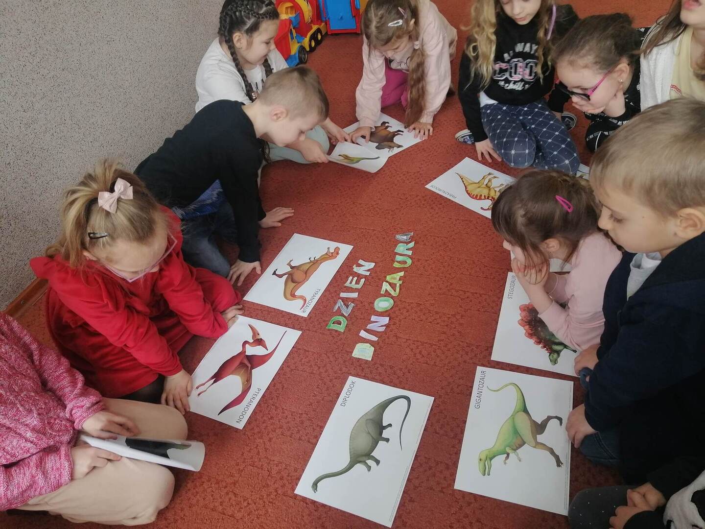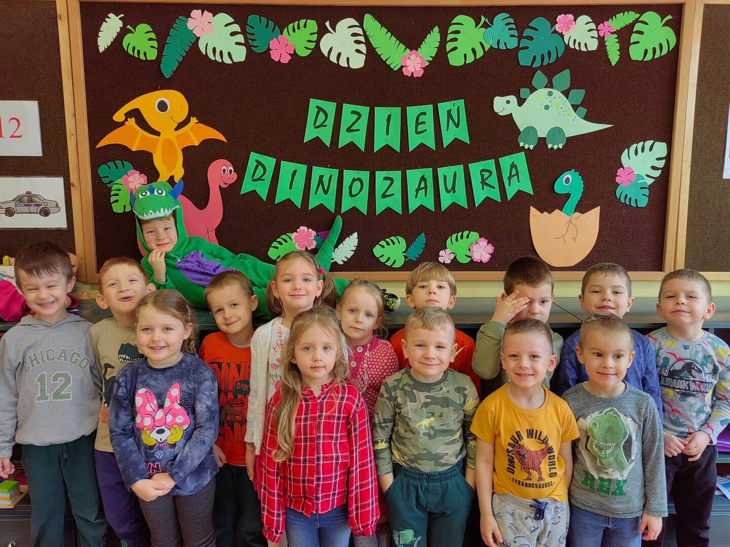 Poniedziałkowy dzień upłynął dzieciom w bardzo ciekawy i interesujący sposób. W tym dniu obchodzono dzień dinozaura który przypada 26.02 . Dinozaury wyginęły miliony lat temu, ale wciąż fascynują kolejne pokolenia. Był to intensywny czas podczas którego odkrywano wiele ciekawostek na temat prehistorycznych czasów. Dzieci dzieliły się swoją wiedzą i chętnie podejmowały dyskusje na temat kiedy ziemia była zieloną puszczą zamiszkałą przez ciekawe okazy.