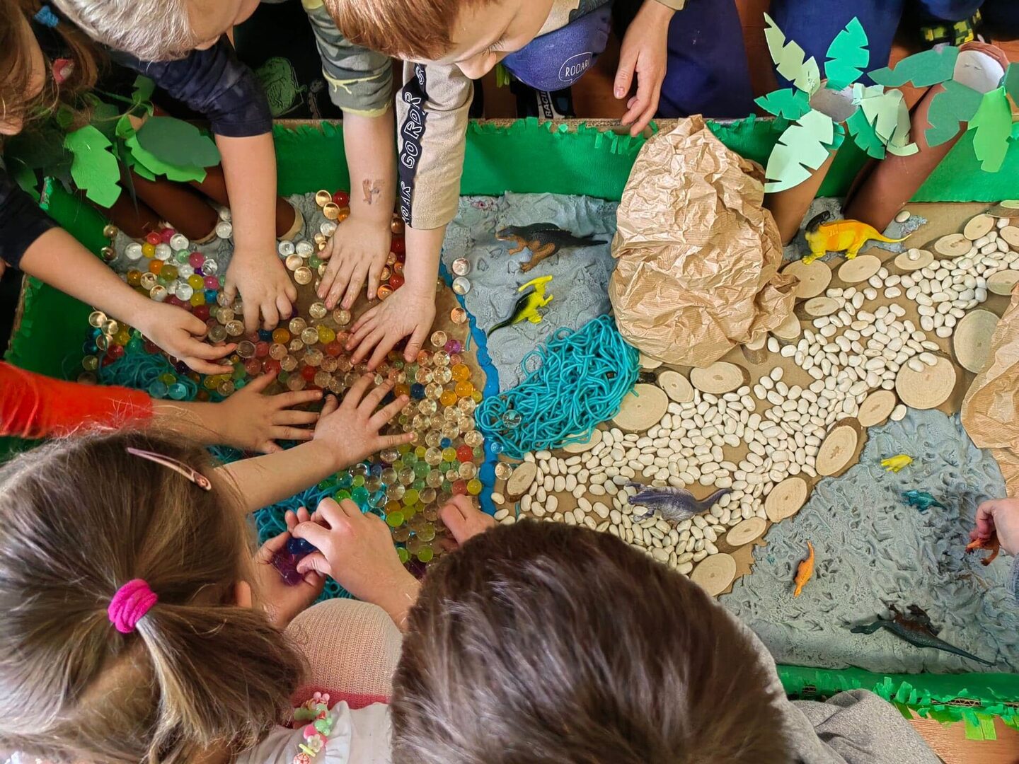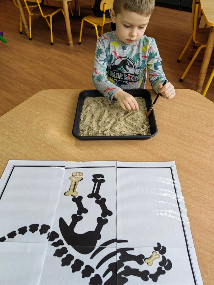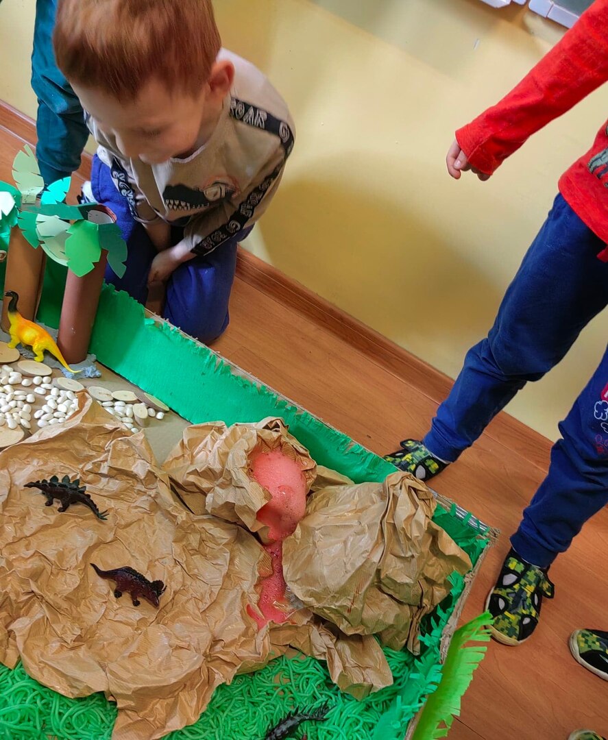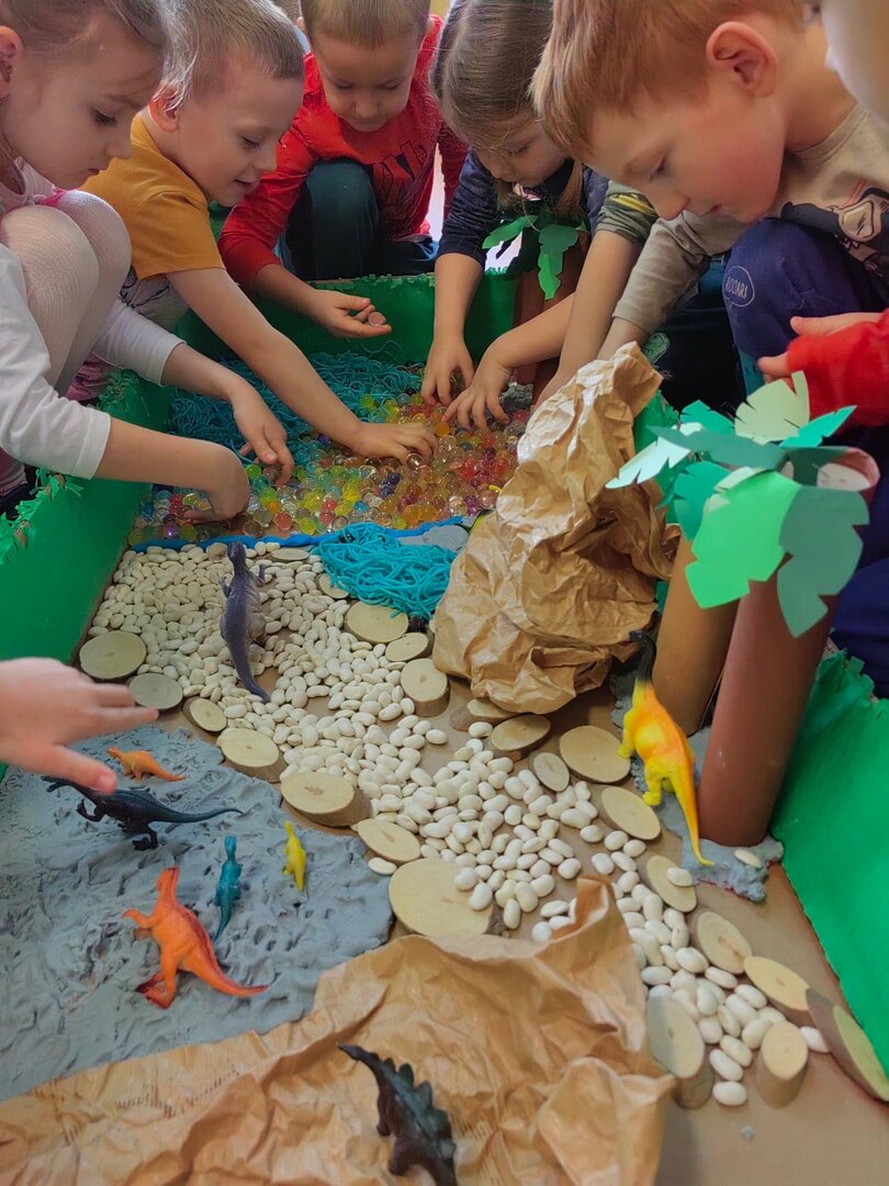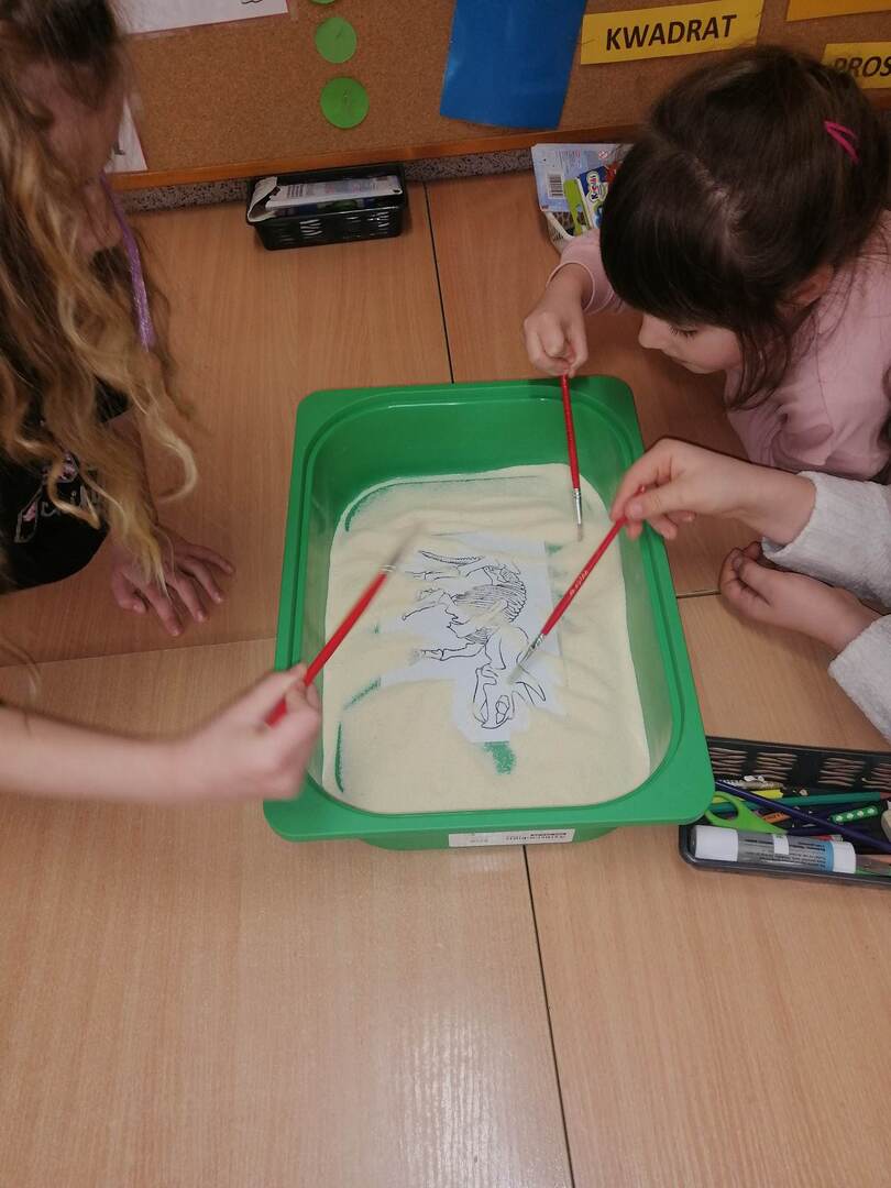 Poniedziałkowy dzień upłynął dzieciom w bardzo ciekawy i interesujący sposób. W tym dniu obchodzono dzień dinozaura który przypada 26.02 . Dinozaury wyginęły miliony lat temu, ale wciąż fascynują kolejne pokolenia. Był to intensywny czas podczas którego odkrywano wiele ciekawostek na temat prehistorycznych czasów. Dzieci dzieliły się swoją wiedzą i chętnie podejmowały dyskusje na temat kiedy ziemia była zieloną puszczą zamiszkałą przez ciekawe okazy.