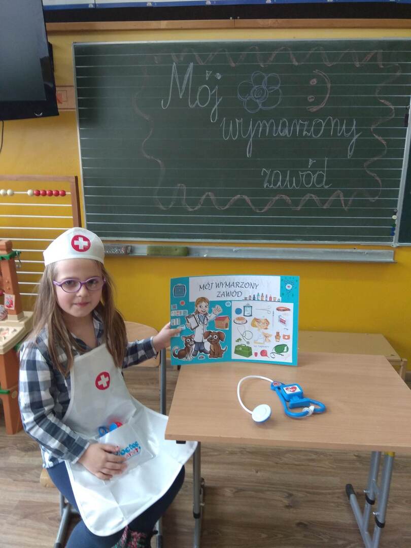 W piątkowe przedpołudnie w ramach zajęć z doradztwa zawodowego uczniowie klasy I zaprezentowali swoje wymarzone zawody. Z wielkim zaangażowaniem opowiadali swoim rówieśnikom kim pragną zostać w przyszłości. Przyniesione rekwizyty, odpowiednie stroje sprawiły, że lekcja była bardzo ciekawa i interesująca.