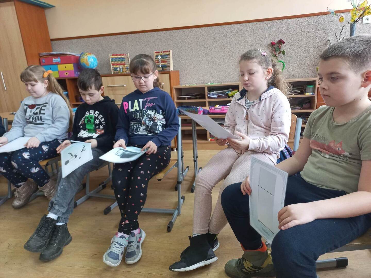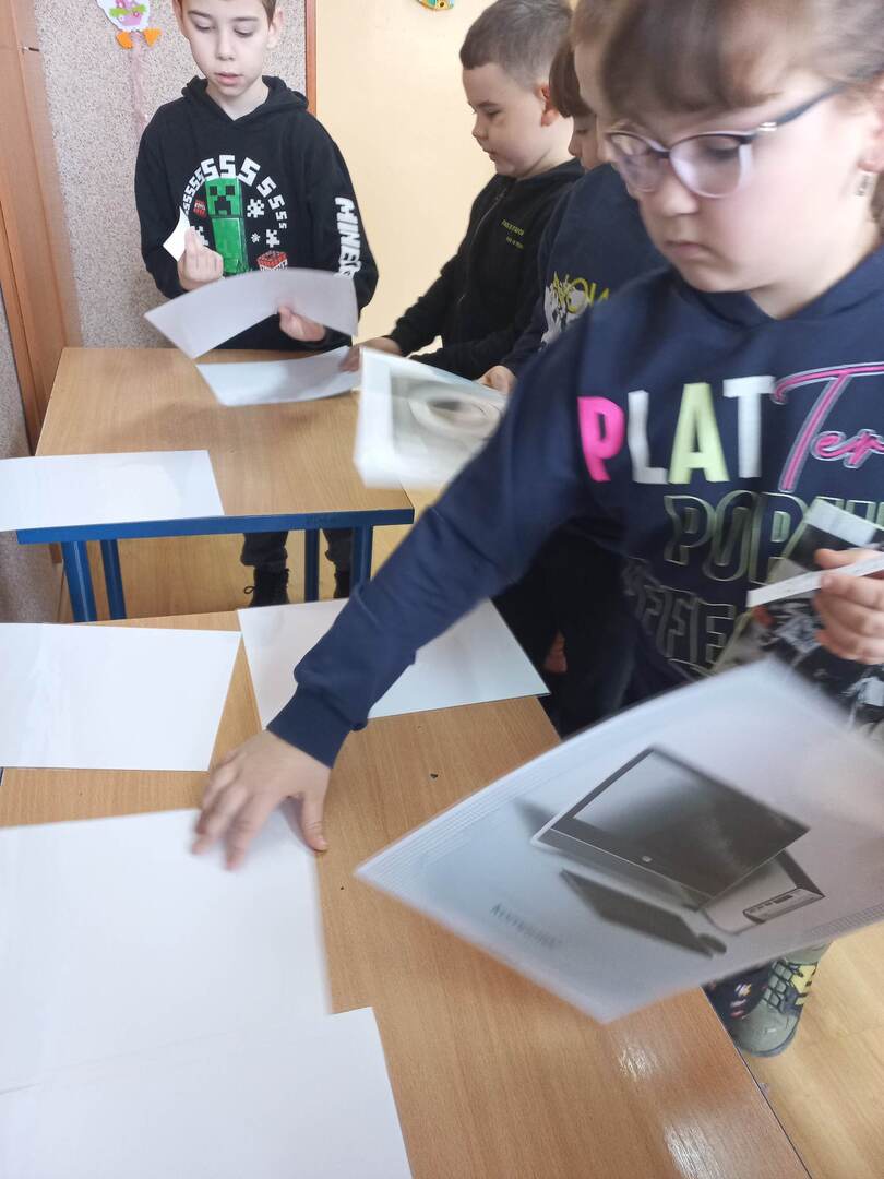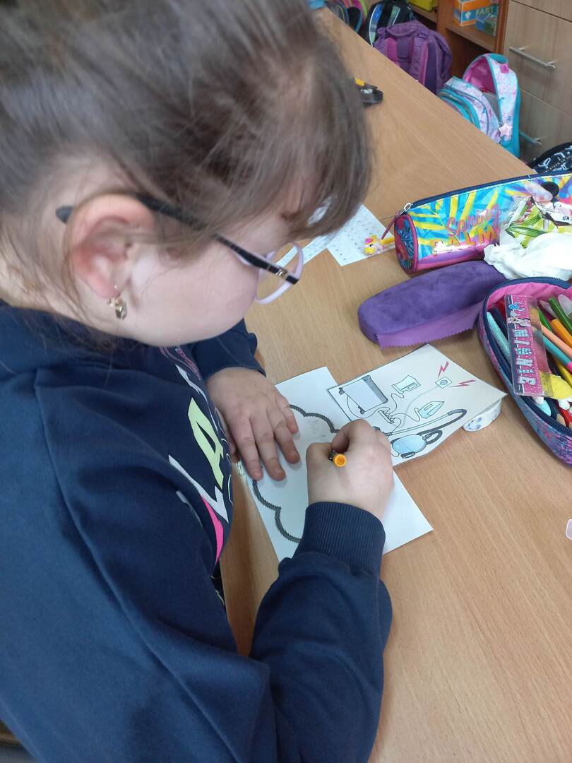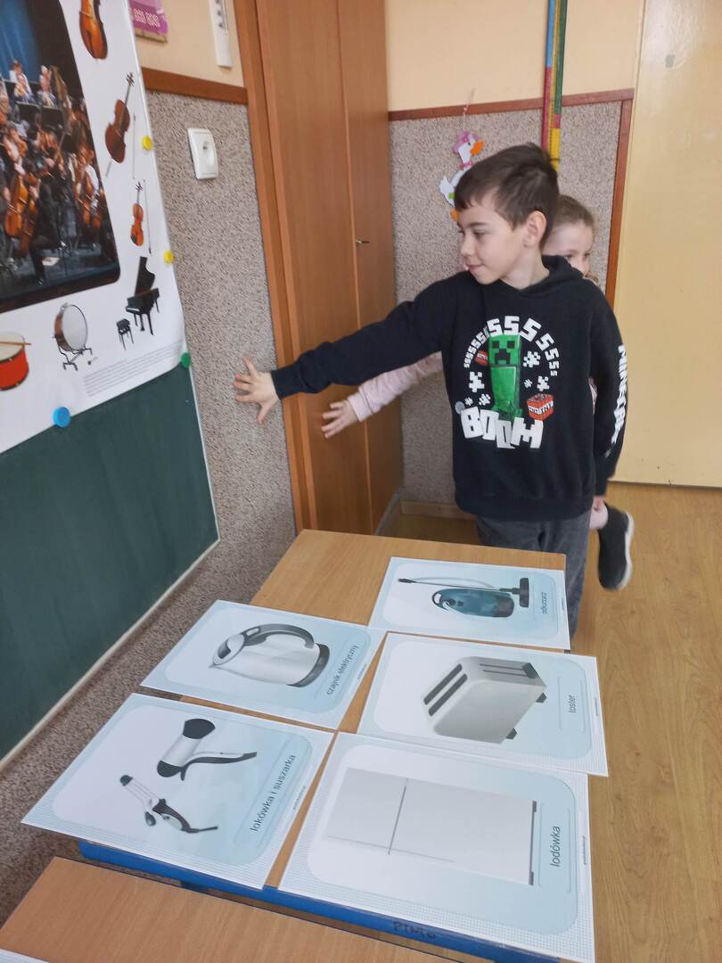Rozpoczęliśmy od filmu edukacyjnego „Włącz ostrożność” przygotowanego przez TAURONA. Zawarte w nim scenki z udziałem dzieci oraz sugestywne komentarze miały zachęcić uczniów do bezpiecznego korzystania z urządzeń zasilanych prądem oraz właściwego obchodzenia się z infrastrukturą energetyczną. Następnie uczniowie przeszli do zadań praktycznych. W parach odkodowywali nazwy domowych urządzeń elektrycznych i opowiadali o ich przeznaczeniu. Zabawa ruchowa „Uwaga, prąd!” zmuszała uczniów do szukania bezpiecznych elementów wyposażenia będących izolatorami prądu. Kolejne wyzwanie to metoda aktywnego słuchania i wyzwanie: co zrobić w konkretnej sytuacji? Zwieńczeniem zagadnienia był wykonany grupowo plakat promujący odpowiedzialne zachowania: „Jak bezpiecznie korzystać z prądu?”; tutaj każdy uczestnik projektu układał i zapisywał hasło do wylosowanej scenki.