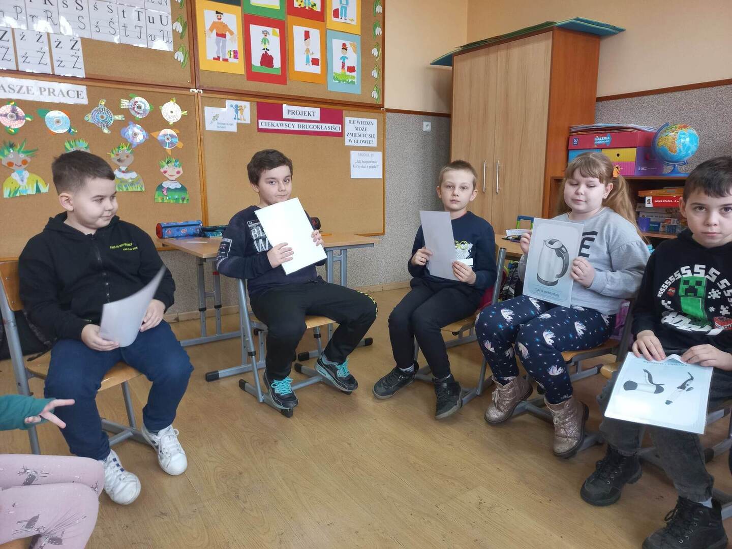 Klasa II kontynuuje realizację projektu edukacyjnego „Ciekawscy drugoklasiści”. W tym tygodniu w kręgu naszych rozważań znalazł się bardzo ważny z punktu widzenia bezpieczeństwa temat: „Jak bezpiecznie korzystać z prądu?”