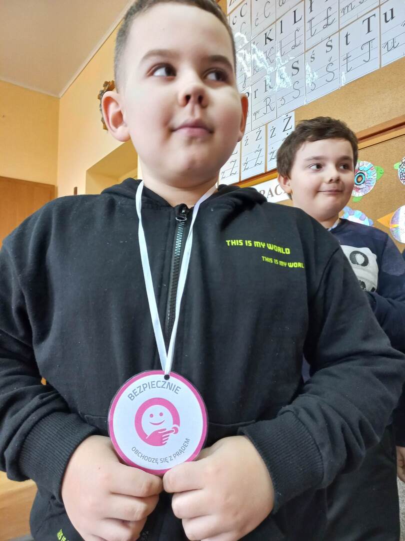 Na zakończenie zajęć uczniowie – jak zawsze – wyciągnęli ważny dla wszystkich wniosek: Prąd elektryczny to najwspanialszy wynalazek człowieka. Będzie nam dobrze służył pod warunkiem, że my będziemy bezpiecznie z niego korzystali. Wypełnili też kolejną rubrykę swojego indeksu oraz otrzymali pamiątkowe medale: „Bezpiecznie obchodzę się z prądem”.