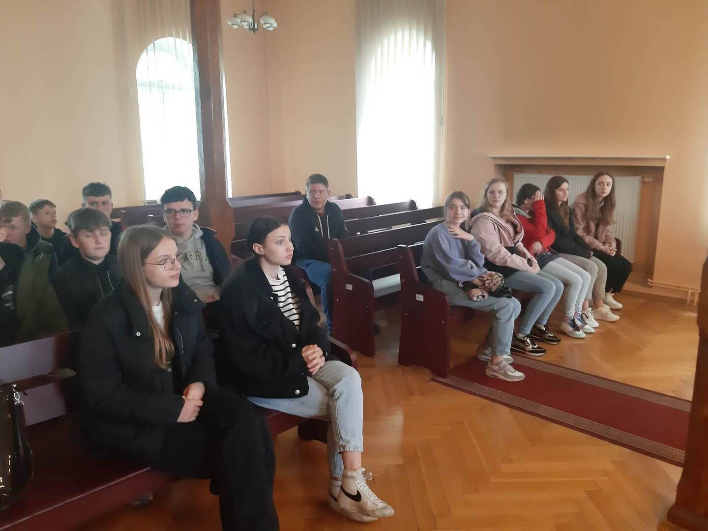 W dniu 20 kwietnia br. uczniowie klas VII i VIII wraz z opiekunami: panią Dyrektor Aliną Rączką oraz pedagogiem szkolnym Beatą Kuzia miała możliwość zwiedzenia Sądu Rejonowego w Krotoszynie. Podczas odwiedzin Pani Prezes Sądu Zuzanna Lenarczyk zapoznała młodzież z funkcjonowaniem poszczególnych wydziałów. Uczniowie zwiedzili min. Wydział Ksiąg Wieczystych, Wydział Rodzinny i Nieletnich, mieli okazję zobaczyć również „Niebieski Pokój” oraz sale sądowe. Pani Sędzia wygłosiła prelekcję na temat struktury sądownictwa w Polsce. Młodzież zapoznała się z podstawowymi aktami prawnymi i przepisami obowiązującymi w naszym kraju dotyczących nieletnich. Następnie Pani Sędzia przedstawiła zakres działań Wydziału Rodzinnego i Nieletnich, a także przytoczyła różne sytuacje z sali sądowej dotyczące konkretnych przypadków łamania prawa przez nieletnich, przestrzegając przed konsekwencjami z jakimi należy się liczyć. Uczniowie zadawali pytania, a także podejmowali dyskusję dotyczącą naruszania prawa cywilnego i karnego. Młodzież miała możliwość odczucia powagi sprawy, zasiadając na ławie oskarżonych czy odpowiadania przy pulpicie świadków. Pani Sędzia użyczyła również własnej togi i łańcucha z wizerunkiem orła tym, którzy chcieli zasiąść przy stole sędziowskim i poczuć się w roli sędziego. Wizyta w takiej instytucji dała uczniom sposobność na zapoznanie się z realiami pracy w sądzie, ale była tez swoistą formą profilaktyki. Bardzo dziękujemy Pani Prezes Sądu Rejonowego w Krotoszynie za możliwość zwiedzenia tego miejsca.
