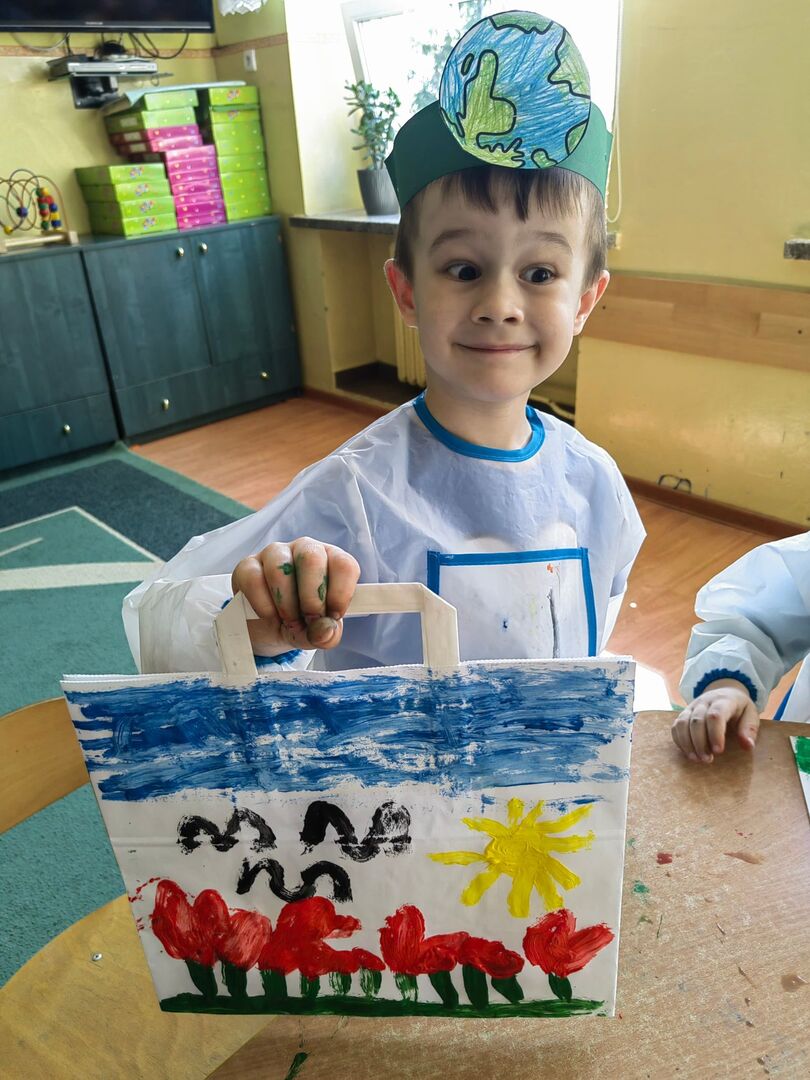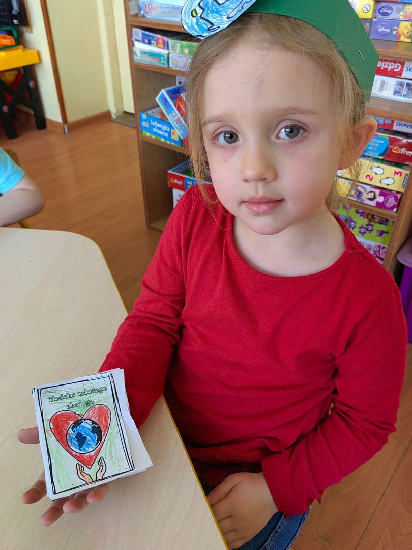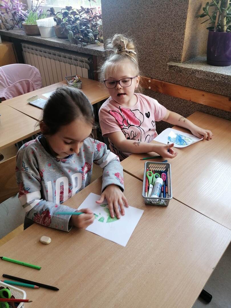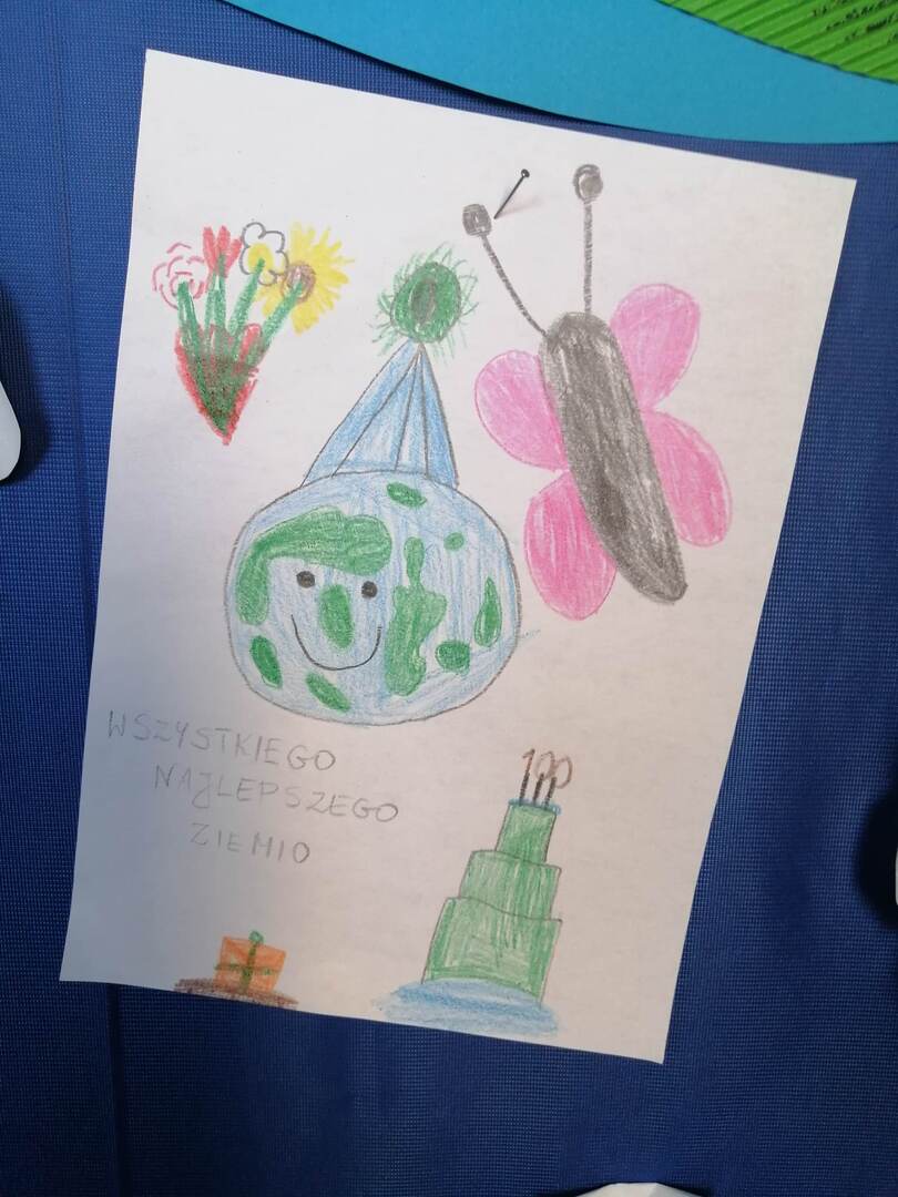 Dzisiejszy dzień został poświęcony tematyce związanej z Naszą Planetą. Dzieci dowiedziały się jak segregować śmieci, dbać o przyrodę i zwierzęta, oszczędzać prąd czy wodę. Opracowały "Kodeks młodego ekologa", w którym znalazło się wiele cennych zasad, które przypominają jak dbać o nasze otoczenie. Stworzyły torby ekologiczne, papierowe, które będą wykorzystywać podczas zakupów w zamian plastikowych. Był to dzień pełen nowych ciekawostek. Dzieci już wiedzą, że dla dobra naszej planety należy robić wszystko aby była ona czysta i zdrowa.