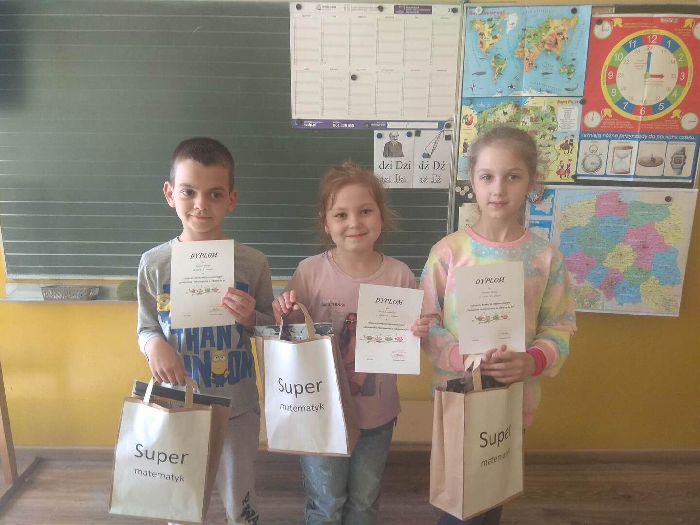 W klasie I dotarliśmy do finału konkursu matematycznego: "Dodawanie i odejmowanie w zakresie do 20". Na podium stanęli uczniowie zdobywając tytuł "Super matematyka".