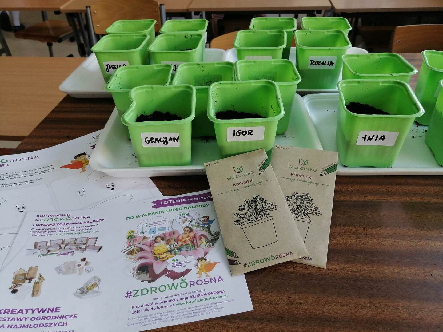 ZDROWOROSNA Dzieci z oddziału "0" przy współpracy z firmą W. Legutko miały przyjemność zasiać koperek. By rozwinąć u dzieci zamiłowanie do hodowli roślin i wspierać dbanie o swoje zdrowie oraz kształtować poczucie odpowiedzialności codziennie doglądali swoich upraw. Obserwacje doniczkowych plonów cieszyły się dużym i kilkukrotnym w ciągu dnia zainteresowaniem.