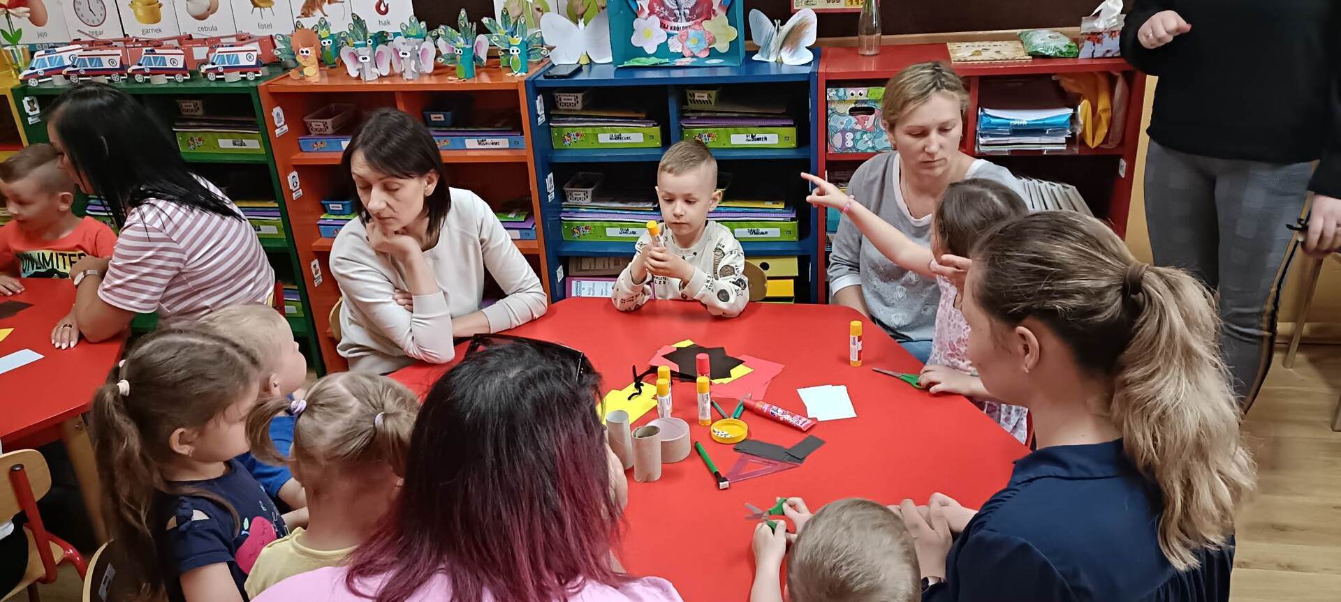 W ubiegłym tygodniu przedszkolaki z Wrotkowa zaprosiły na zajęcia swoich rodziców chcąc im pokazać jak oni spędzają czas w przedszkolu i czego się uczą. Były wspólne zabawy muzyczno-ruchowe, zabawy taneczne oraz prace plastyczno-techniczne. Dzieci wraz z rodzicami wykonały biedronki z rolek po papierze toaletowym oraz papierowe pszczółki. Znalazł się również czas dla rodziców na wypicie kawy i spróbowanie ciasteczek upieczonych przez ich pociechy. Dzieci zakończył ten dzień pełne nowych wrażeń i doświadczeń. W końcu nie codzień mogą pobawić się w przedszkolu ze swoją mamą czy tatą.