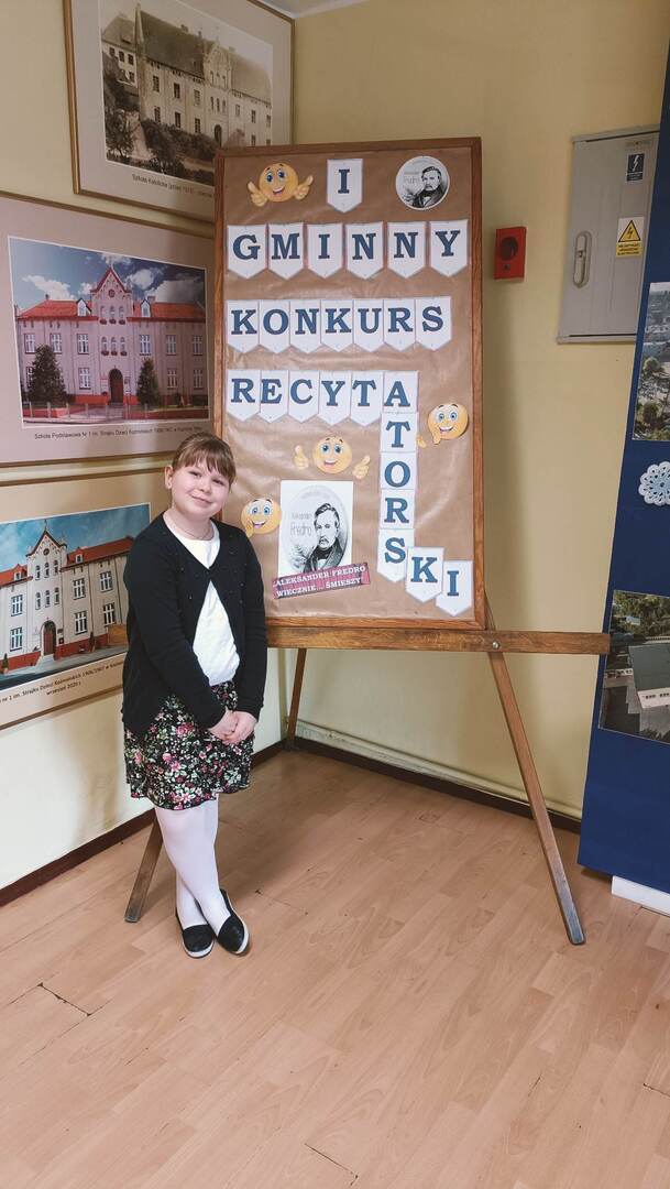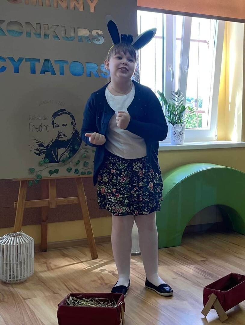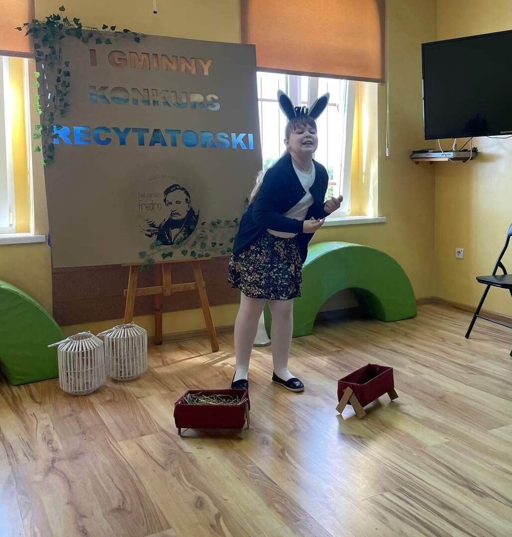 Dnia 31 maja br. w Szkole Podstawowej nr1 im. Strajku Dzieci Koźmińskich 1906/07 odbył się I Gminny Konkurs Recytatorski pod hasłem: „Aleksander Fredro wiecznie… śmieszy”. Szkołę Podstawową w Mokronosie reprezentowali: M. Parzysz z kl. I, A. Pietrzak z kl. II i I. Klawiński z kl. V. Uczennica klasy II - Agata Pietrzak - zdobyła I miejsce w kategorii klas I-IV recytując „Bajeczkę o osiołku”. Bardzo cieszymy się z sukcesu Agatki i życzymy jej wielu wspaniałych osiągnięć recytatorskich.