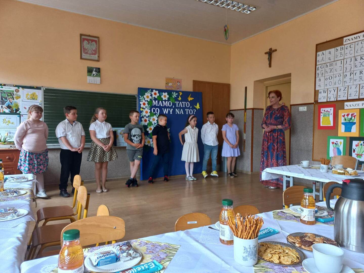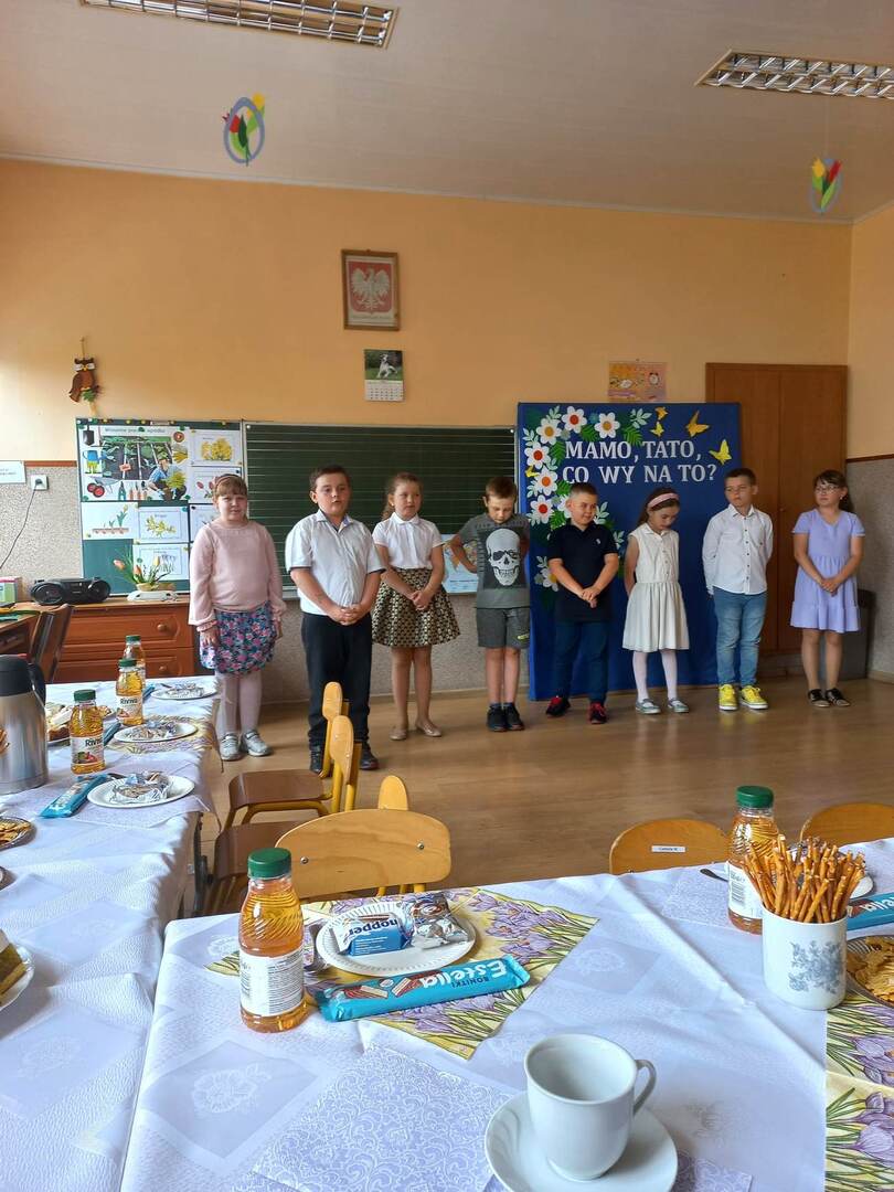 Z okazji przypadającego w krótkim odstępie czasu Dnia Dziecka, Dnia Matki i Dnia Ojca, klasa druga zaprosiła do szkoły swoich rodziców na wspólne świętowanie. Uczniowie przygotowali okolicznościowy program artystyczny, w którym przeplatały się wiersze, piosenki i tańce; nie zabrakło też dawki humoru i własnoręcznie wykonanych kwiatów. Życzenia rodzicom złożyła obecna na spotkaniu Pani Dyrektor A. Rączka. Po części oficjalnej rodzice zostali zaproszeni na poczęstunek przygotowany przez uczniów. To były wspaniałe, wspólnie spędzone chwile.