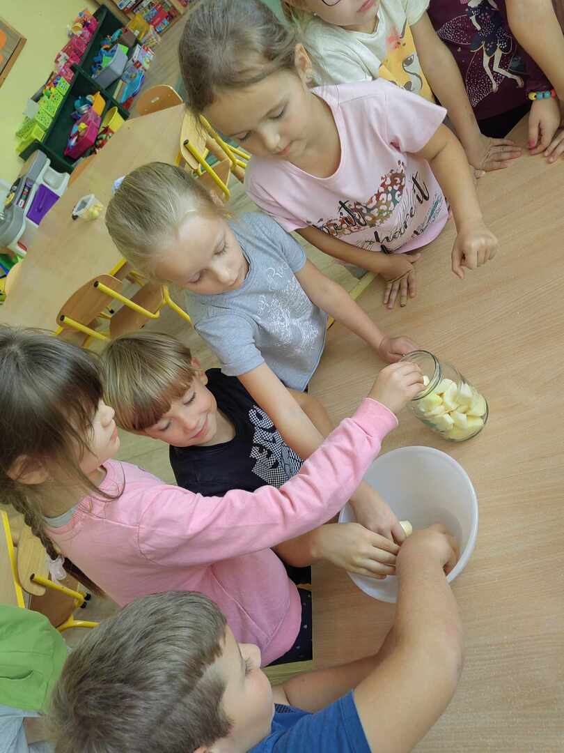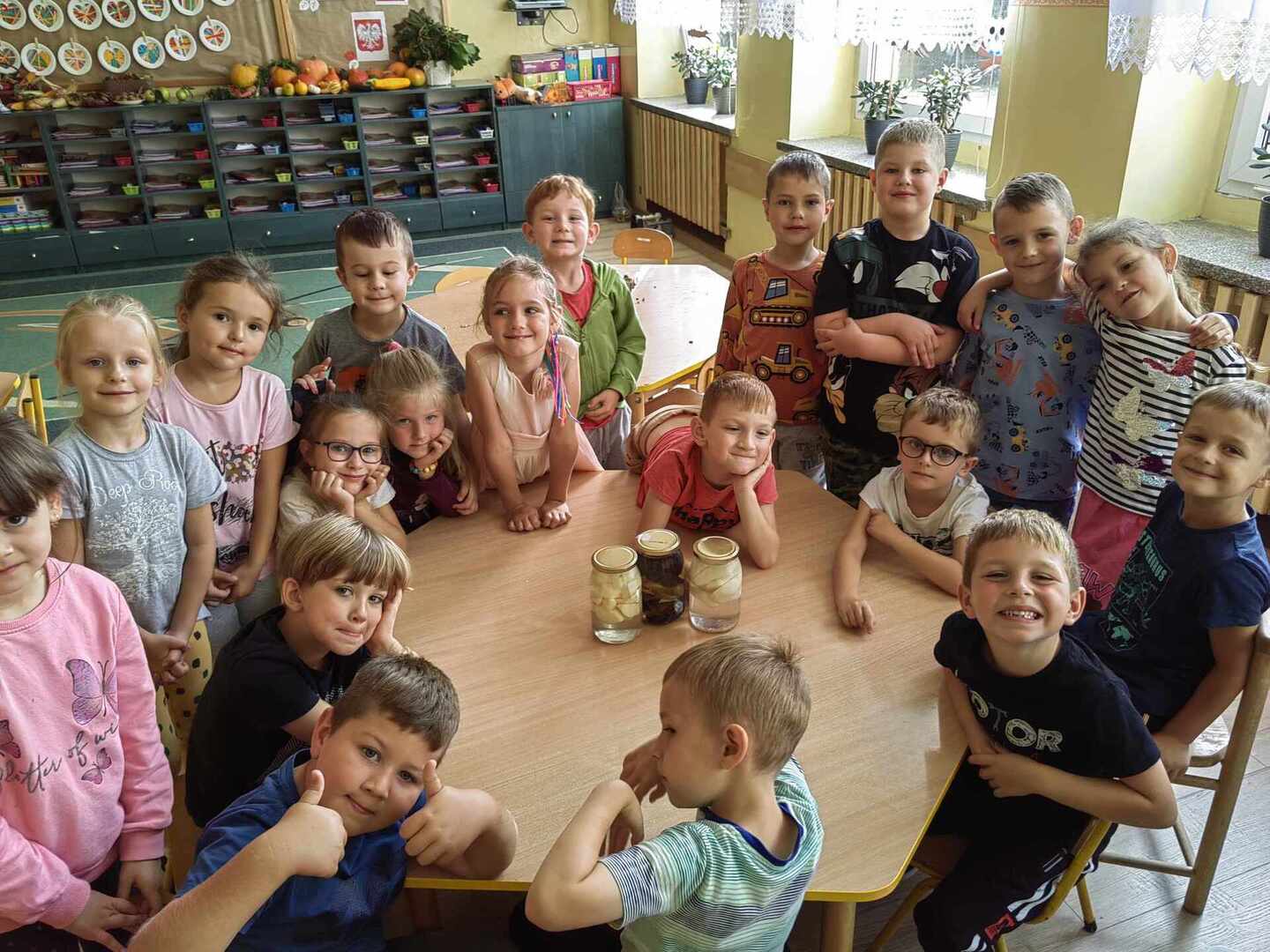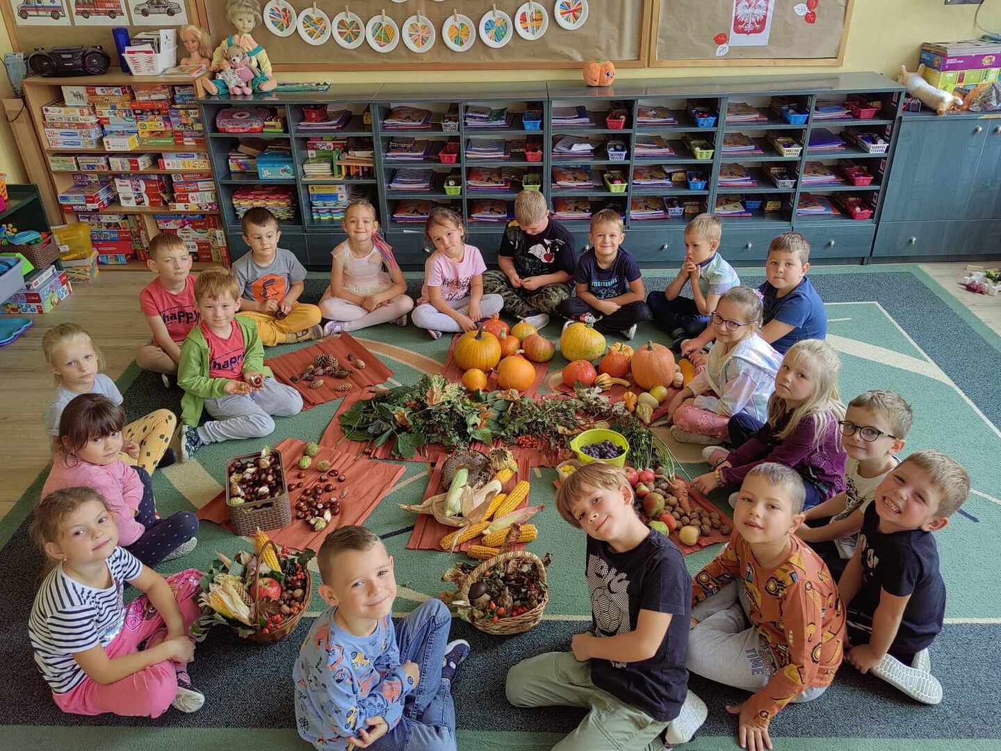 Dzieci z oddzia艂u "0" powita艂y pi臋kn膮, s艂oneczn膮 jesie艅. Pozna艂y oznaki jakie s膮 charakterystyczne dla tej pory roku. Z zaanga偶owaniem rodziców wykona艂y przepi臋kne dekoracje jesienne. Uda艂o si臋 nawet zamkn膮膰 pyszne owoce w s艂oikach. Z smakiem skosztowa艂y owoce i warzywa spotykane w naszych ogrodach i sadach. Podczas spaceru zaobserwowa艂y i zauwa偶y艂y ju偶 pierwsze oznaki jesieni w naszej okolicy.