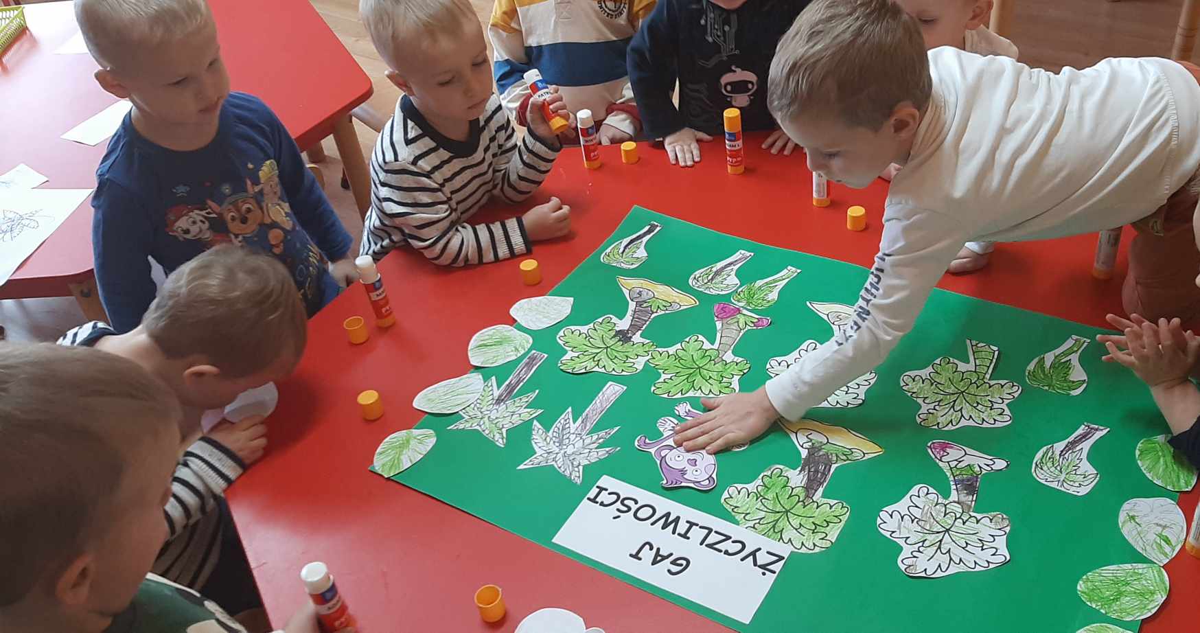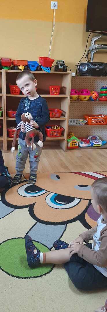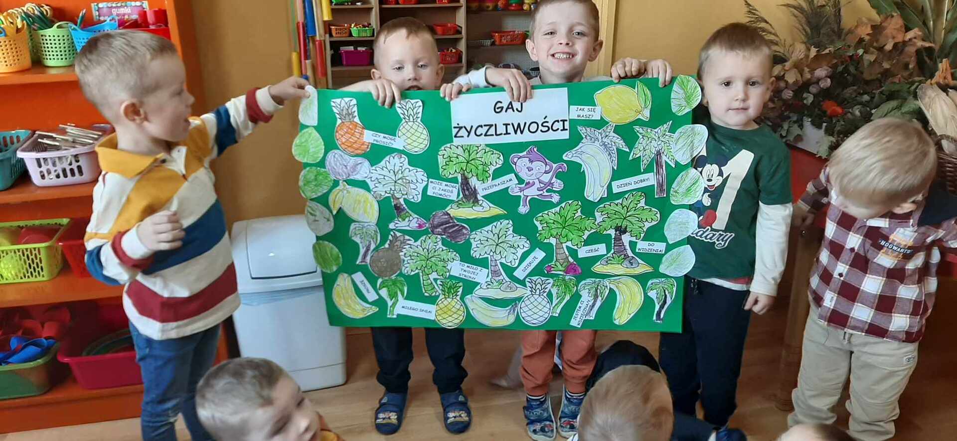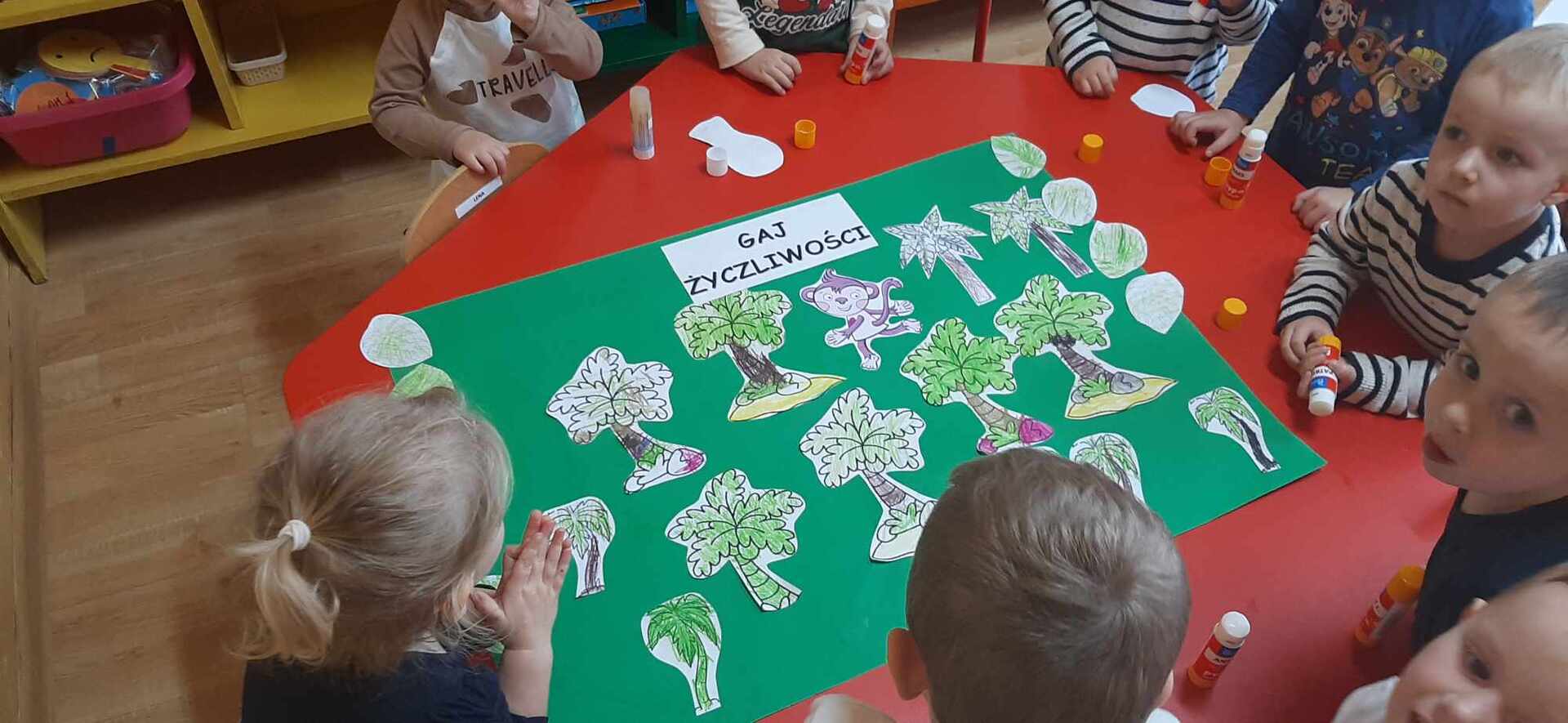 Przedszkolaki z Wrotkowa rozpoczęły dziś przygodę z projektem edukacyjnym "SZLACHETNIE I ZDROWO Z MAŁPKĄ IWONĄ". 🐒 Dzieci miały okazję poznać małpkę Iwonę, która zaprezentowała im zasady których chciałaby ich nauczyć podczas całego projektu, czyli zasady grzeczności, zdrowego żywienia oraz życzliwości. Zadaniem dzieci było stworzenie dla małpki Iwony gaju w którym ona mogłaby mieszkać, ale że nasza bohaterka mieszka w Gaju Życzliwości to przedszkolaki przy okazji przypomniały sobie jakimi zwrotami warto się posługiwać by być życzliwym dla innych. Z łatwością przychodziło im wymyślanie tych zwrotów, a przy tworzeniu gaju było mnóstwo radości. ☺