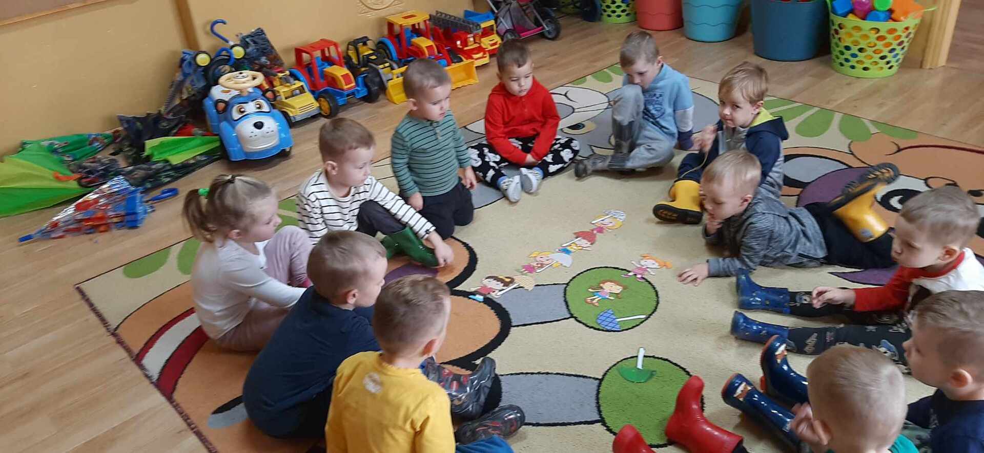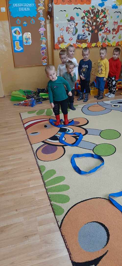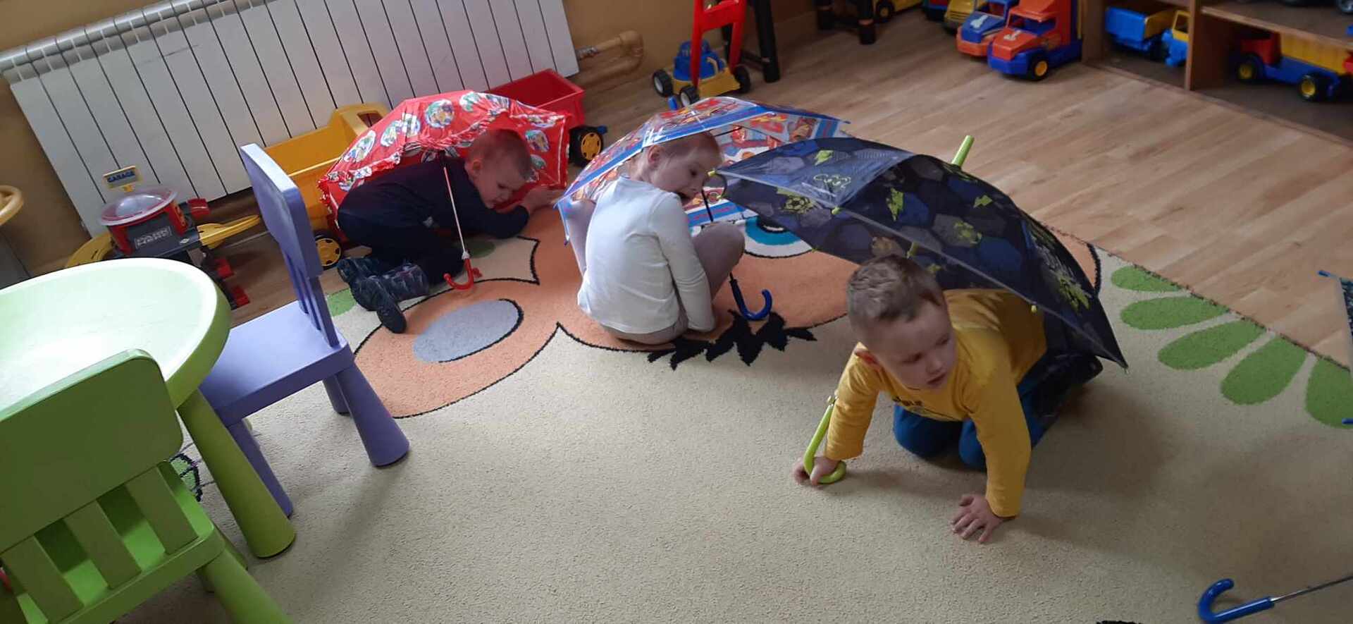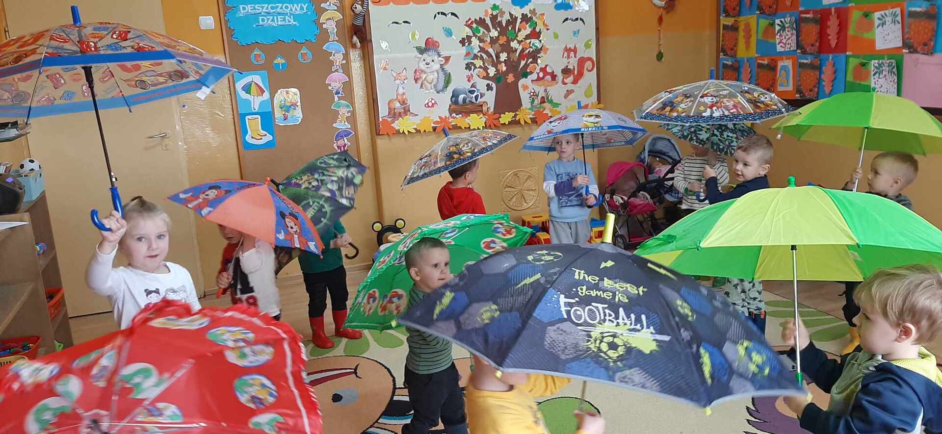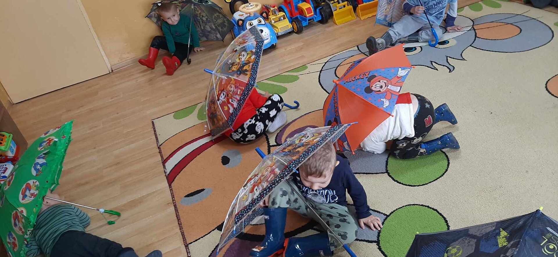 Nie nudzą się na pewno przedszkolaki z Wrotkowa, które znają świetne sposoby na spędzanie wolnego czasu kiedy za oknami brzydka, jesienna pogoda. Z parasolami można potańczyć i pobawić się w sali, można też poskakać w wymyślonych kałużach. A kiedy wie się jaki strój jest odpowiedni na deszczową pogodę to żadna plucha nam nie straszna. I można nawet zaliczyć super kolorowy, jesienny spacer.