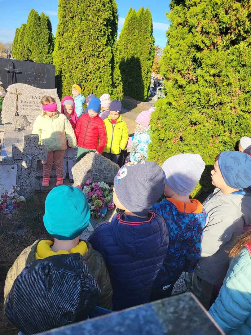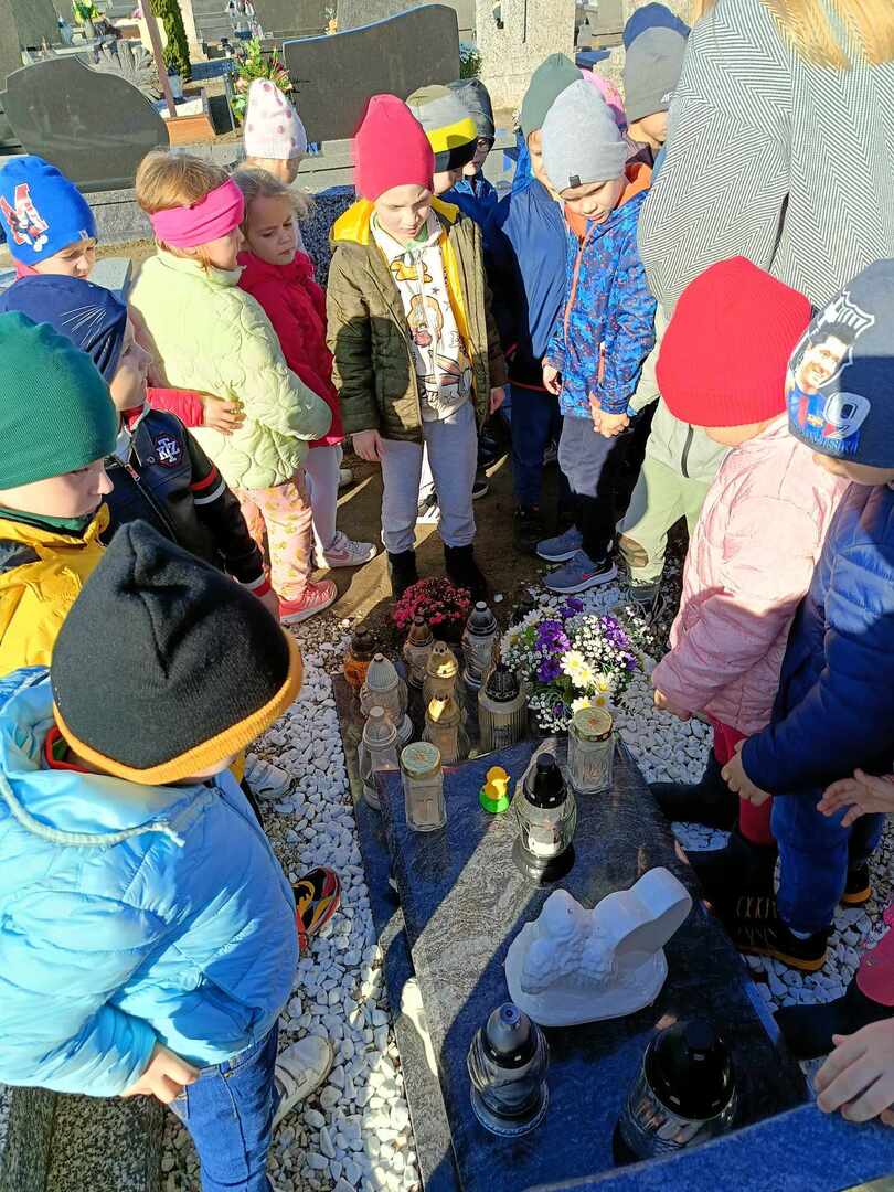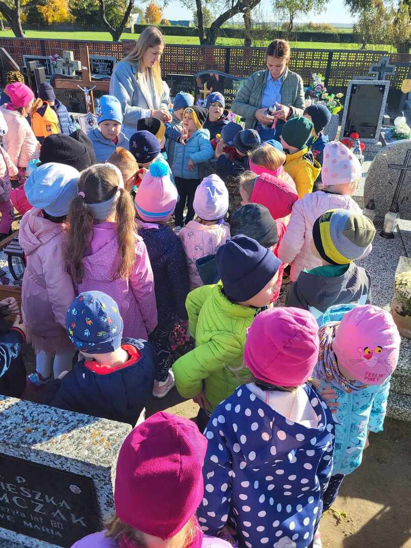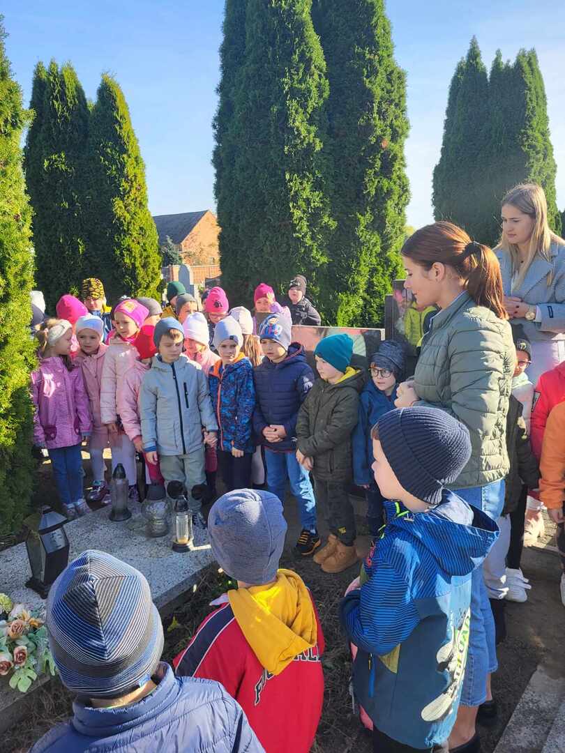 Dzieci z oddziałów przedszkolnych oraz uczniowie naszej szkoły, jak co roku, w ostatnich dniach października odwiedzili groby, uczcili pamięć najbliższych, pracowników szkoły oraz bohaterów lokalnych.