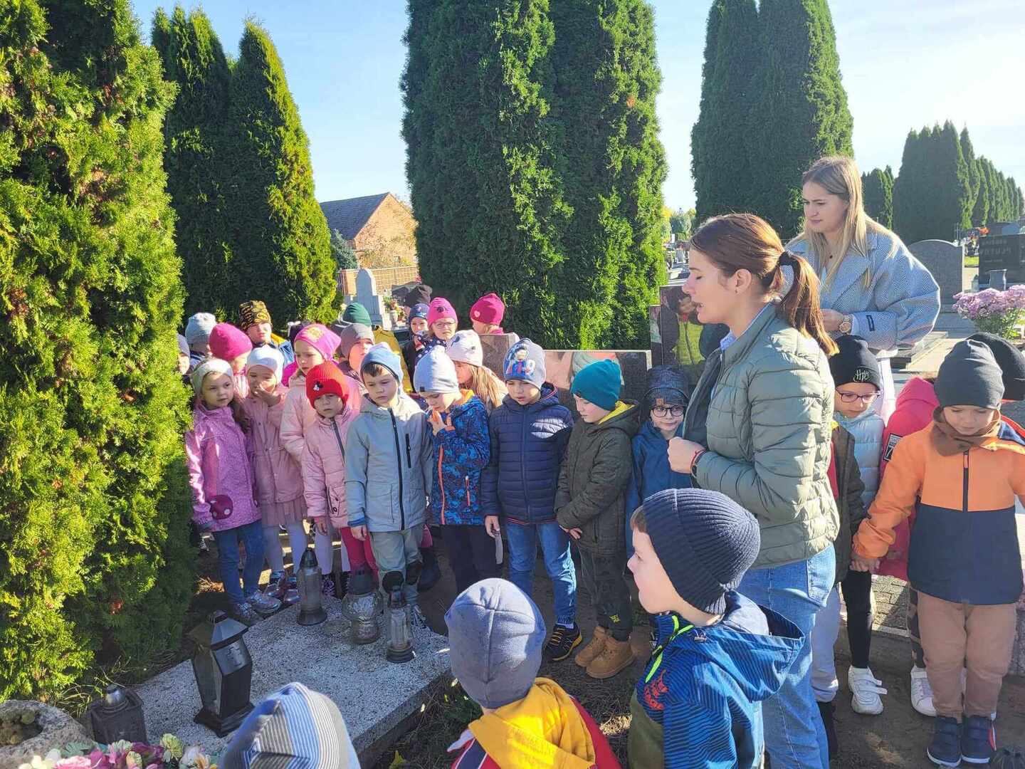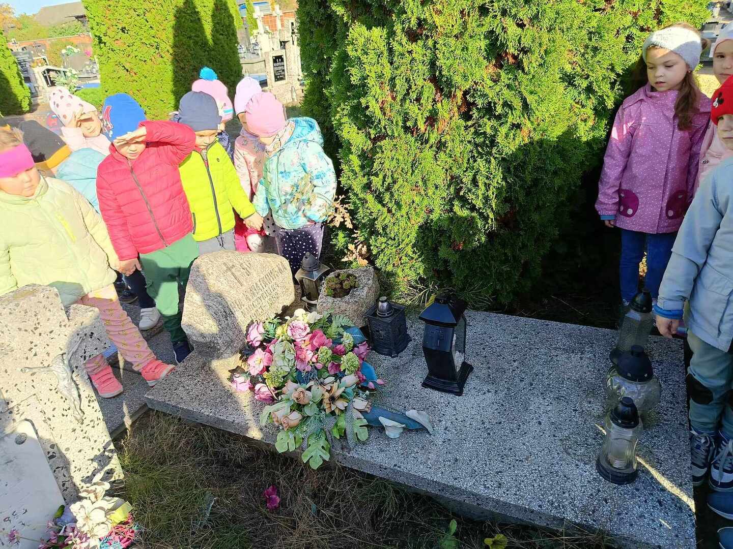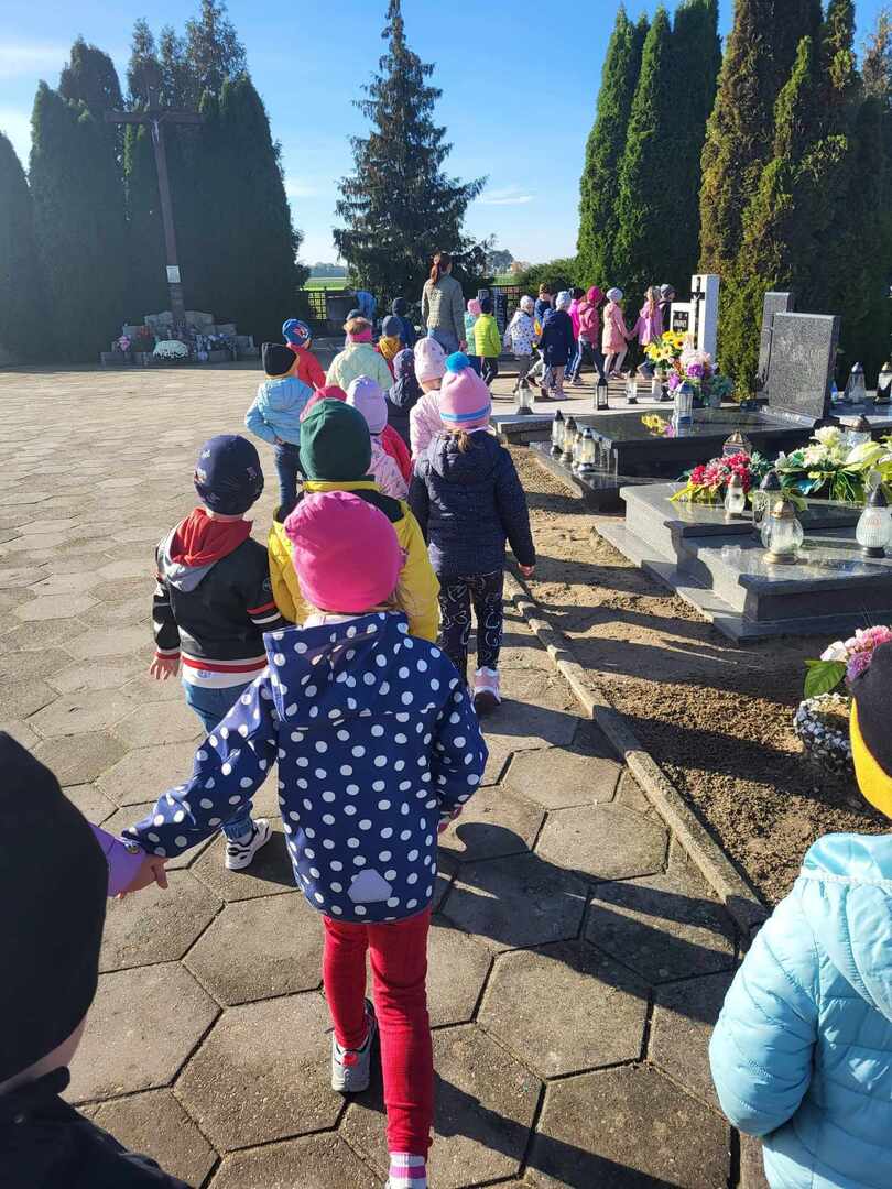 Dzieci z oddziałów przedszkolnych oraz uczniowie naszej szkoły, jak co roku, w ostatnich dniach października odwiedzili groby, uczcili pamięć najbliższych, pracowników szkoły oraz bohaterów lokalnych.